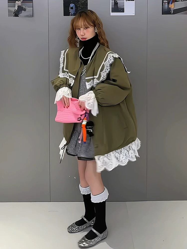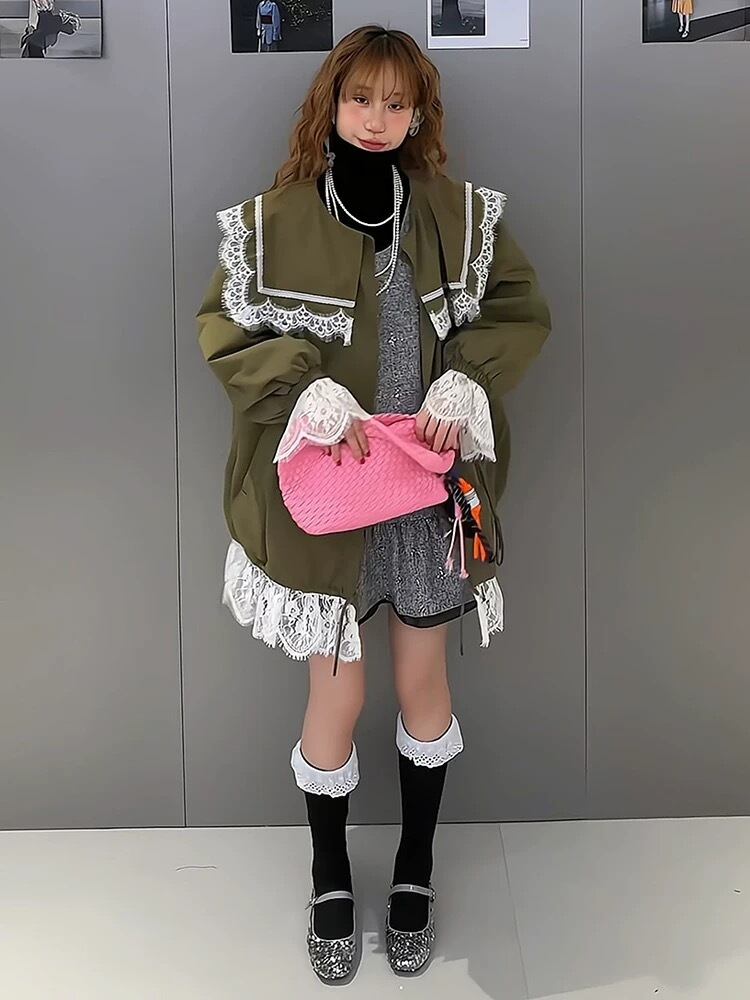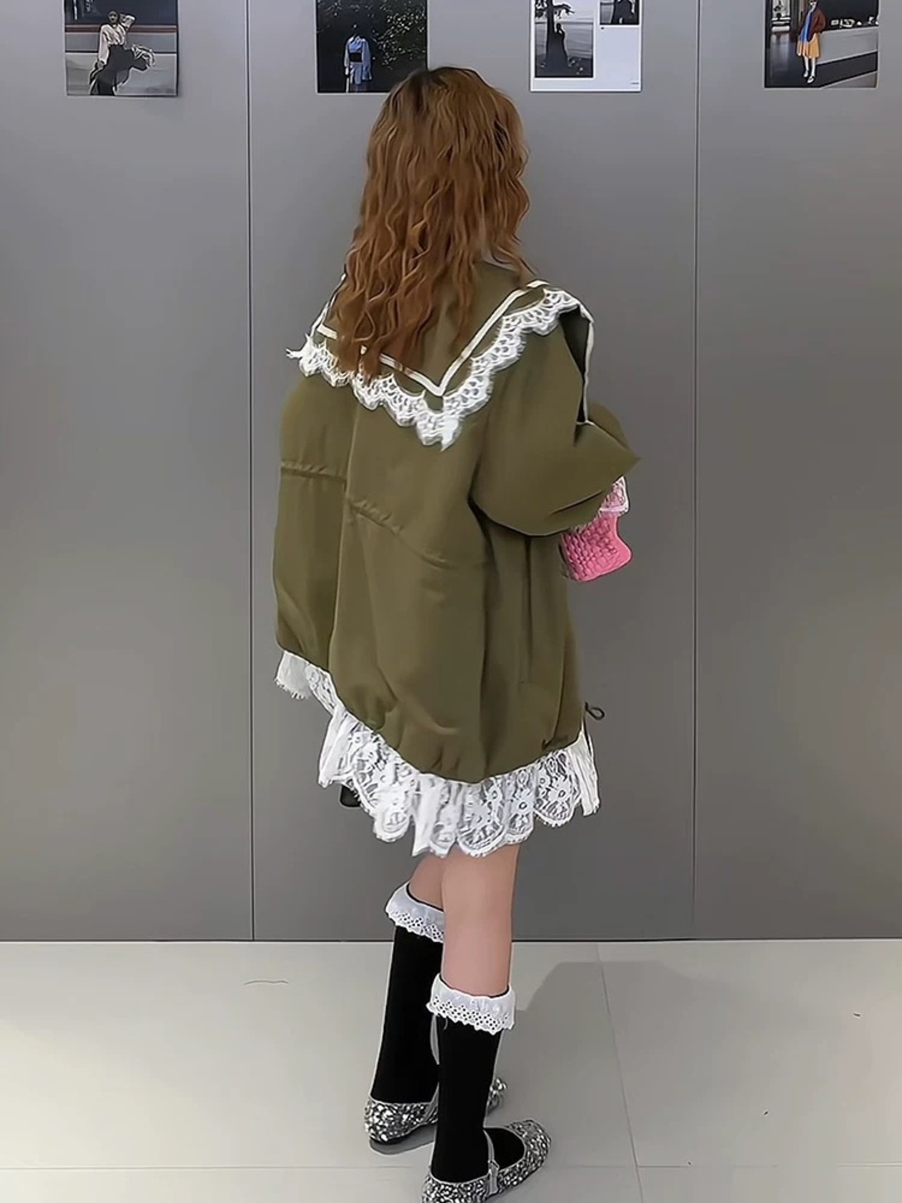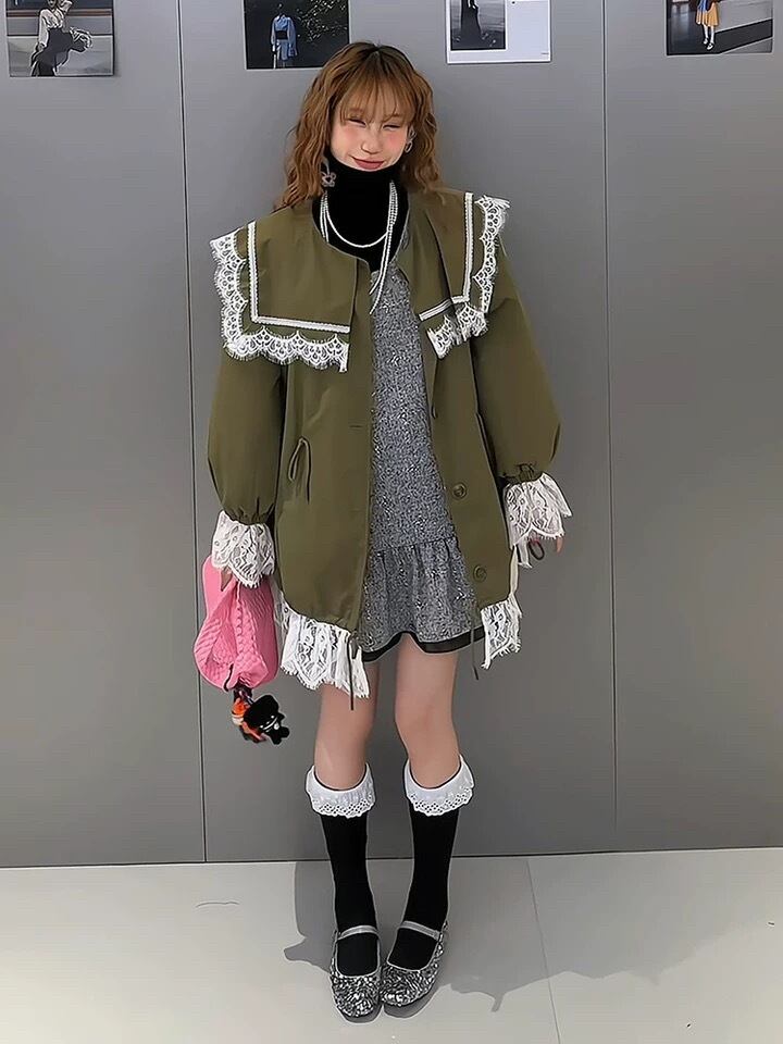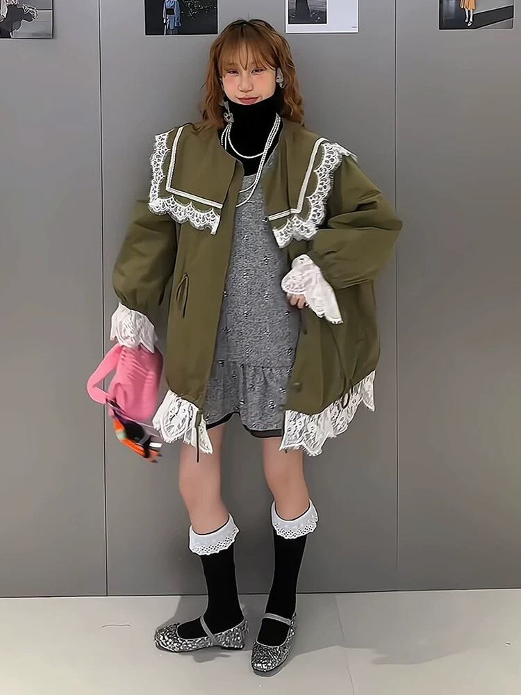 カーキ 緑 ワンピース 襟 セーラー ジャンパー