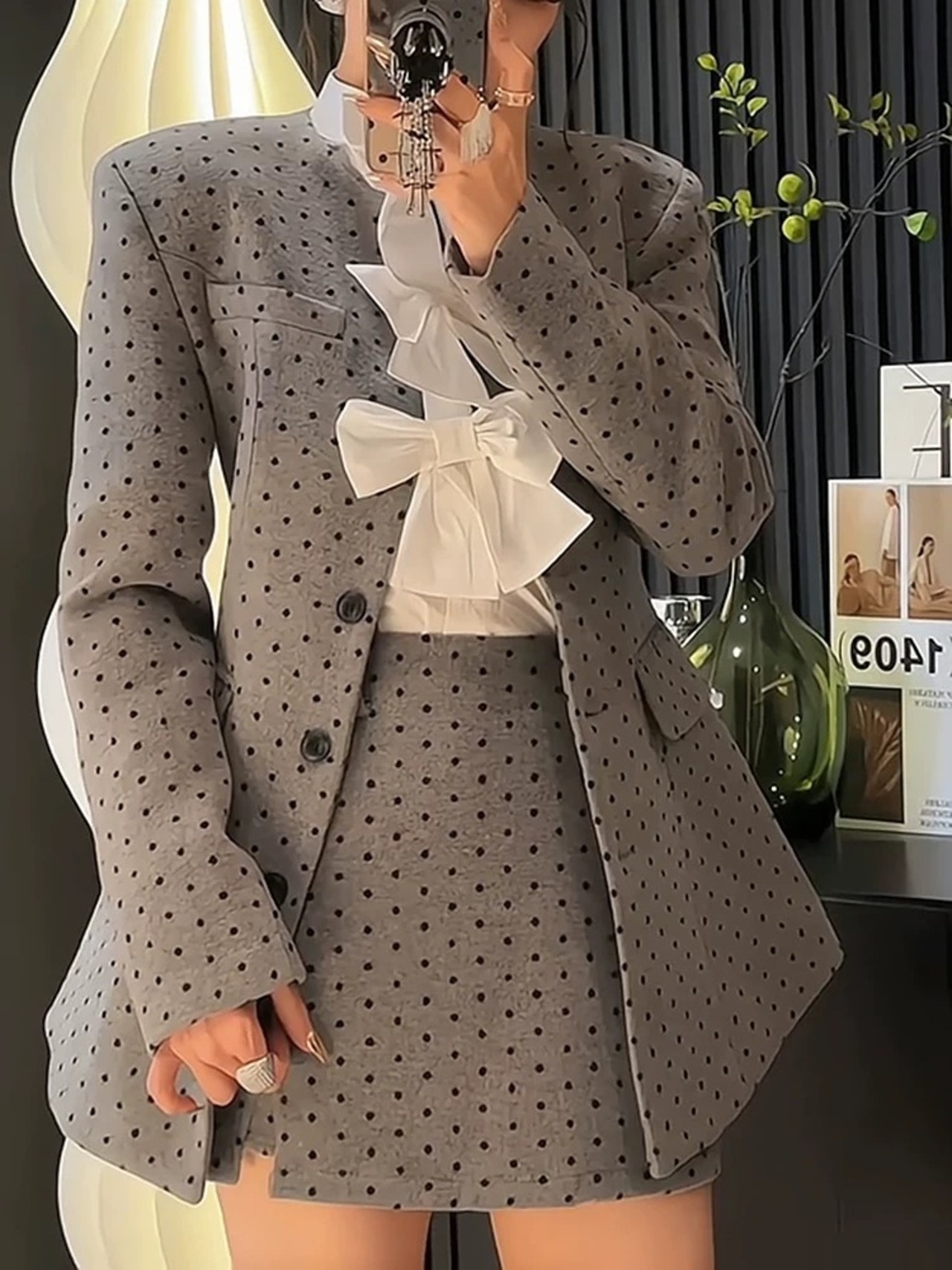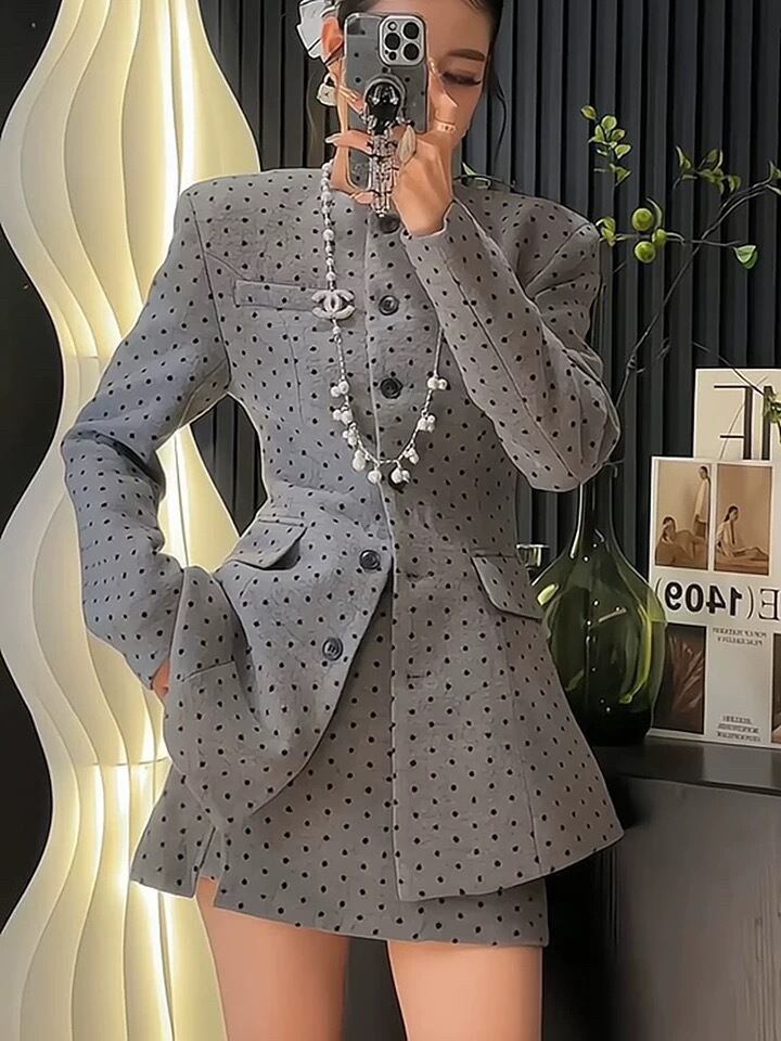 【セットアップ】黒 グレー ミニスカート ジャケット アウター スーツ