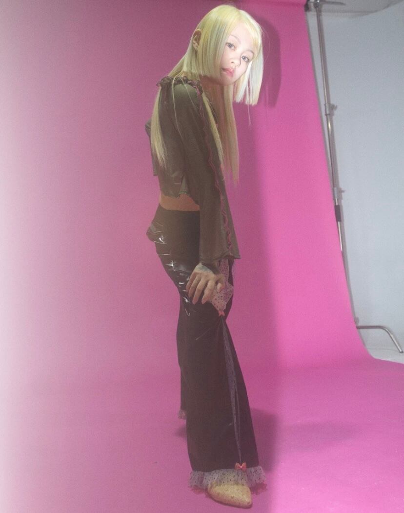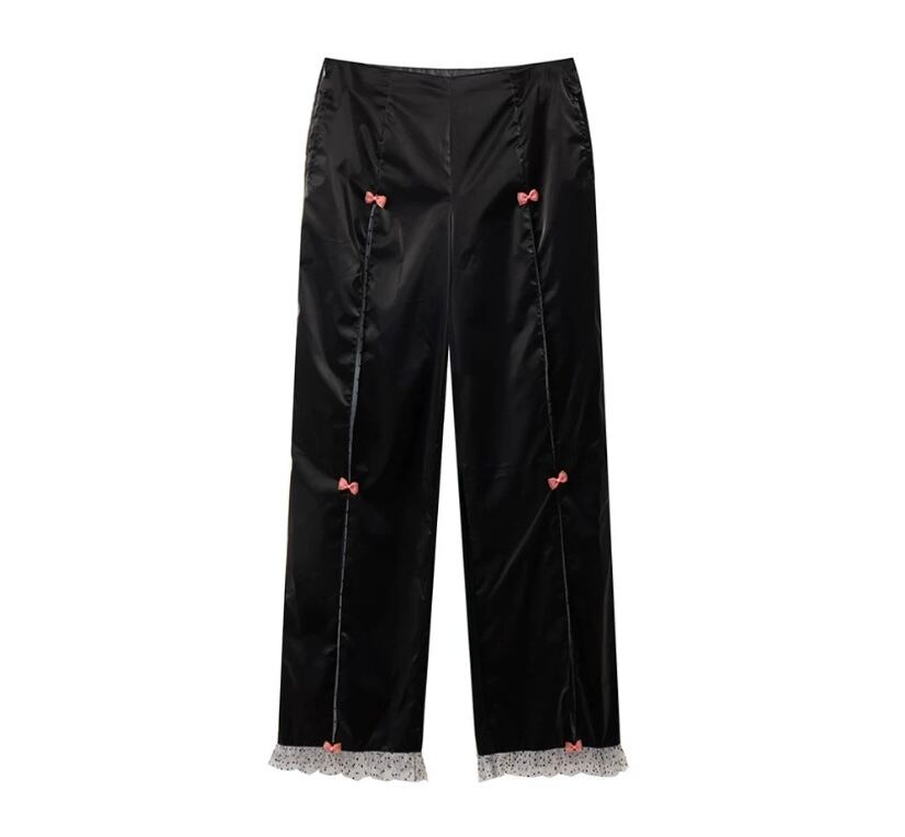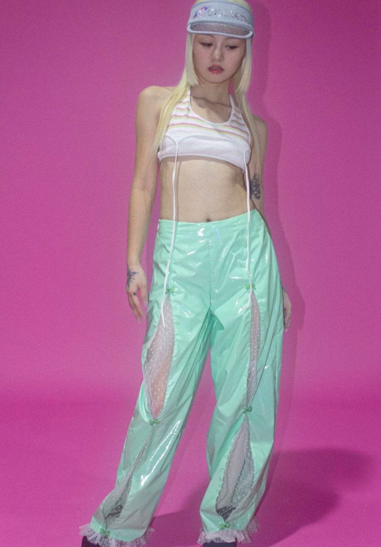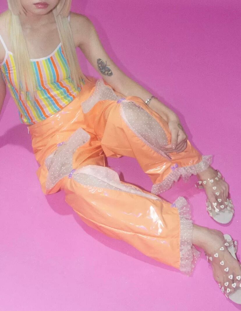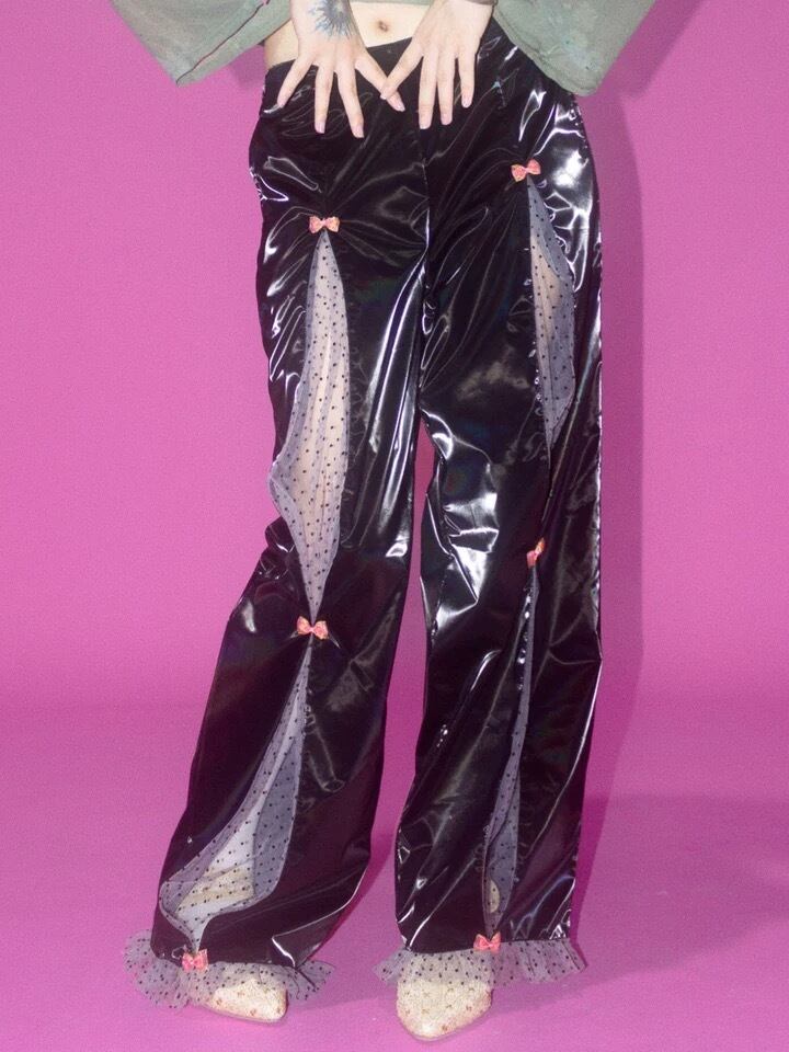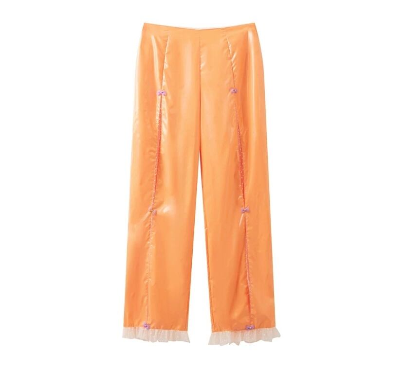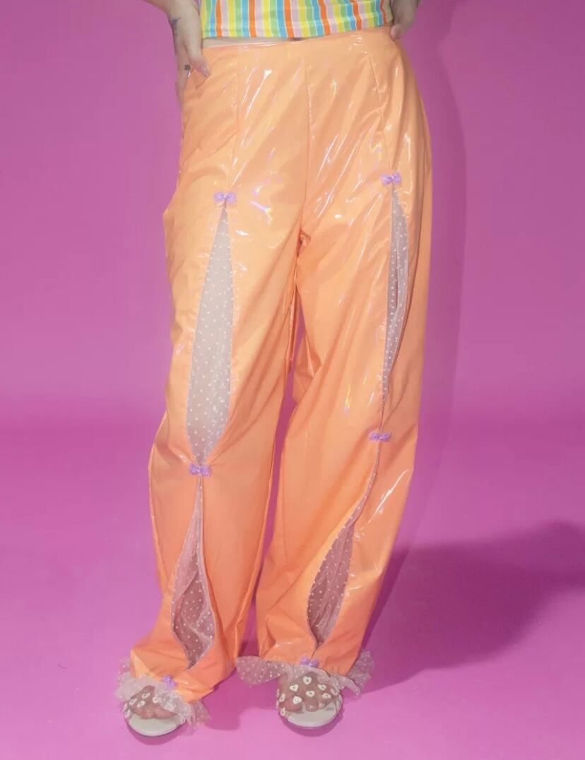 黒 緑 オレンジ ボトムス シースルー パンツ