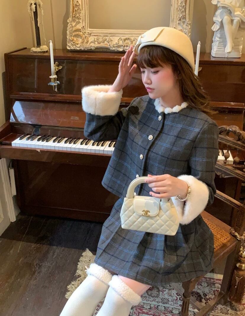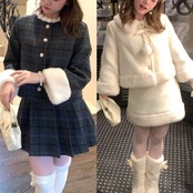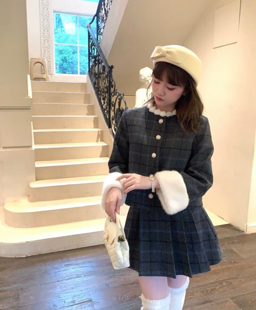 【セットアップ】スーツ 白 ジャケット 緑 チェック