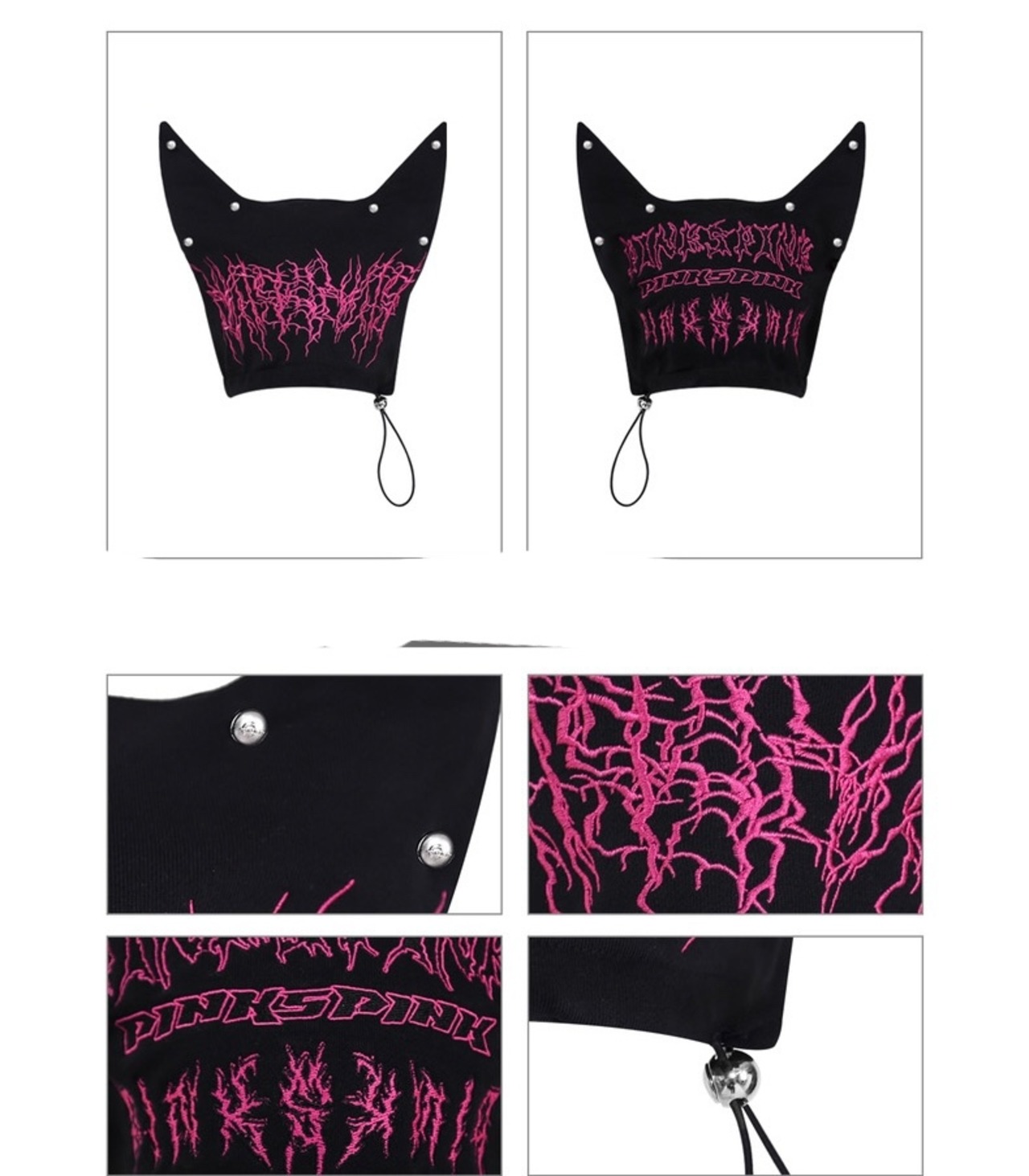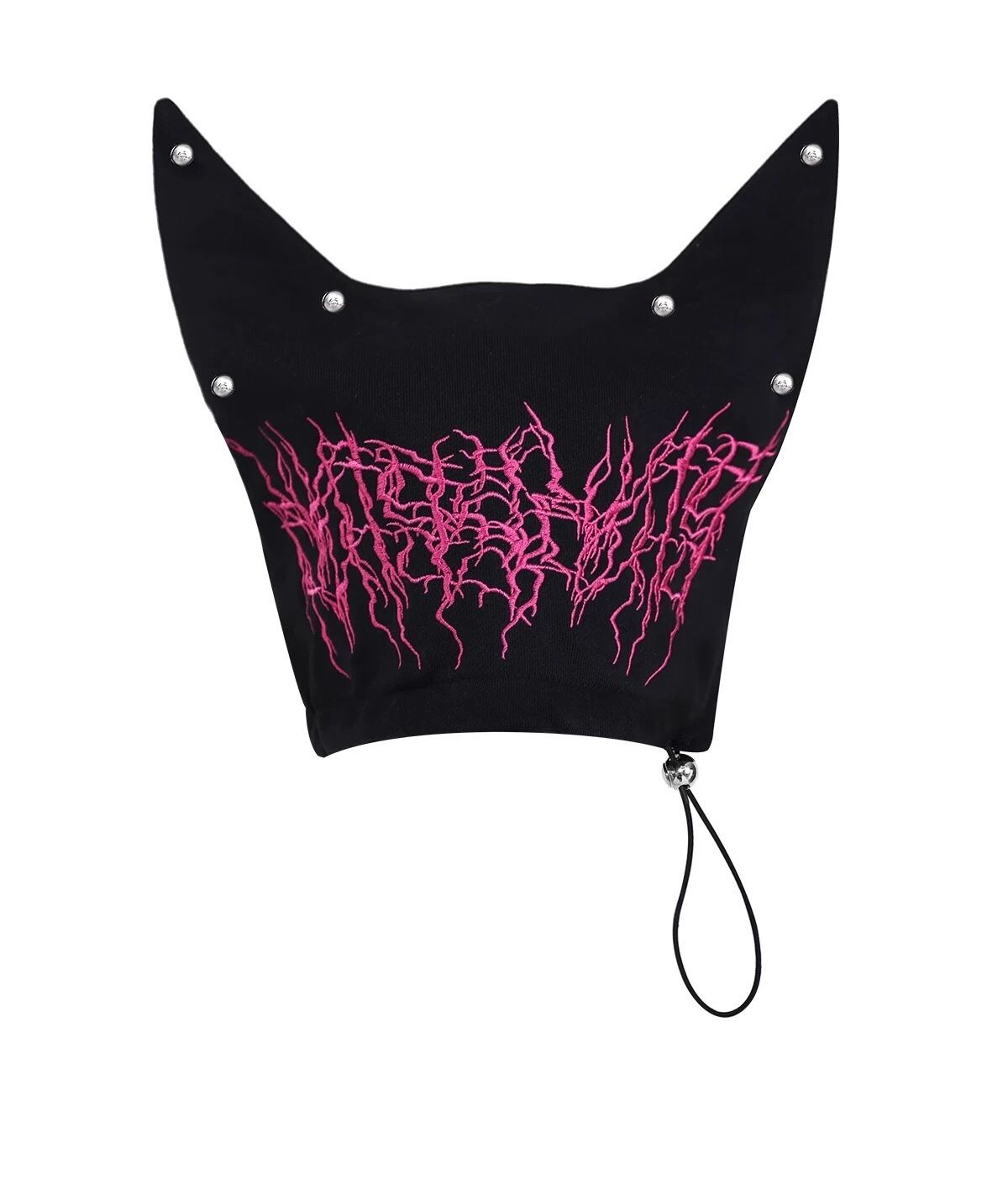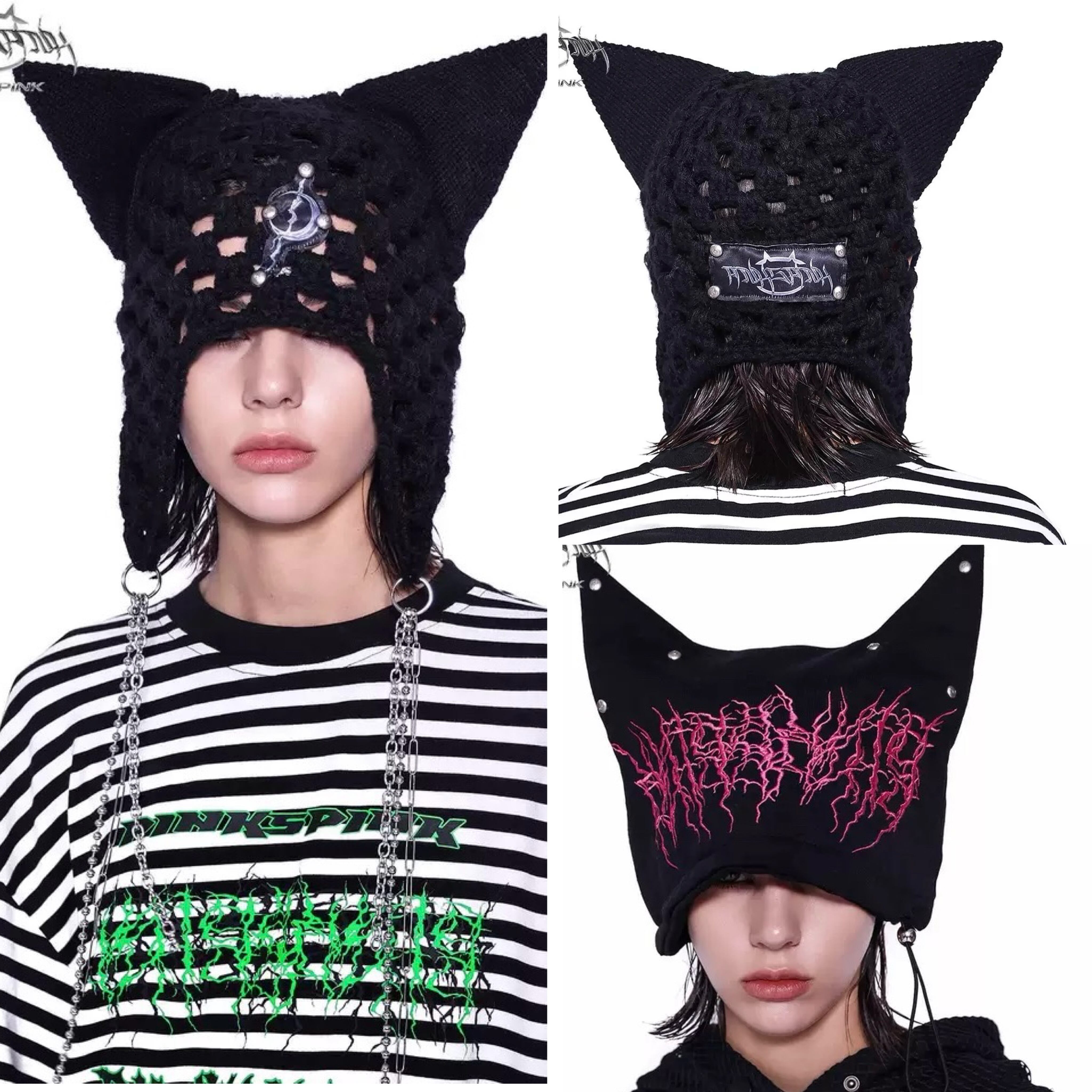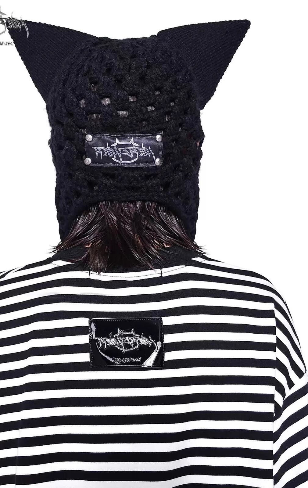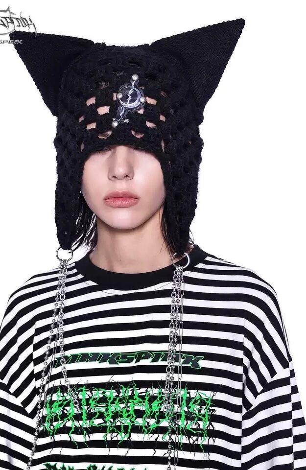 ねこ耳 つの ねこ 帽子 メッシュ 黒