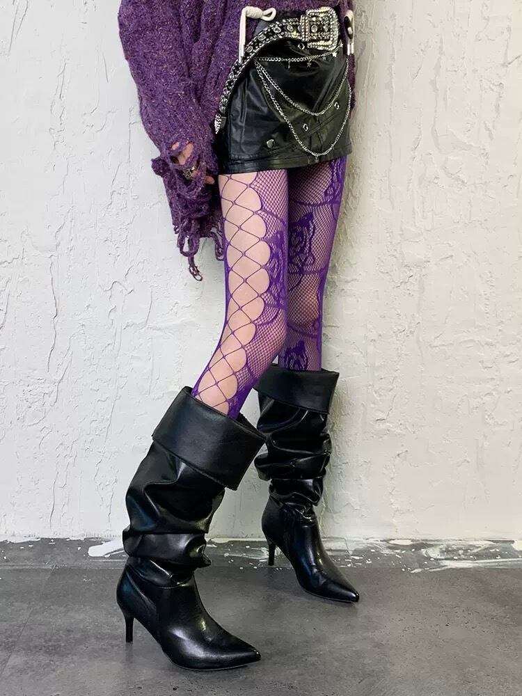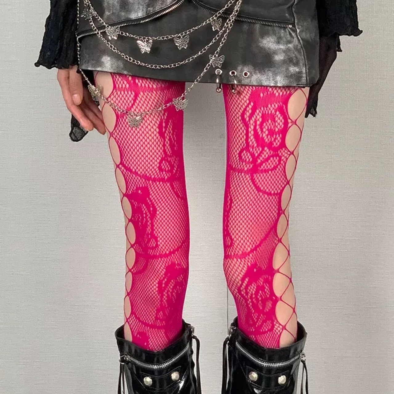 黒 あみタイツ 花柄 フラワー 赤 白 ピンク 水色