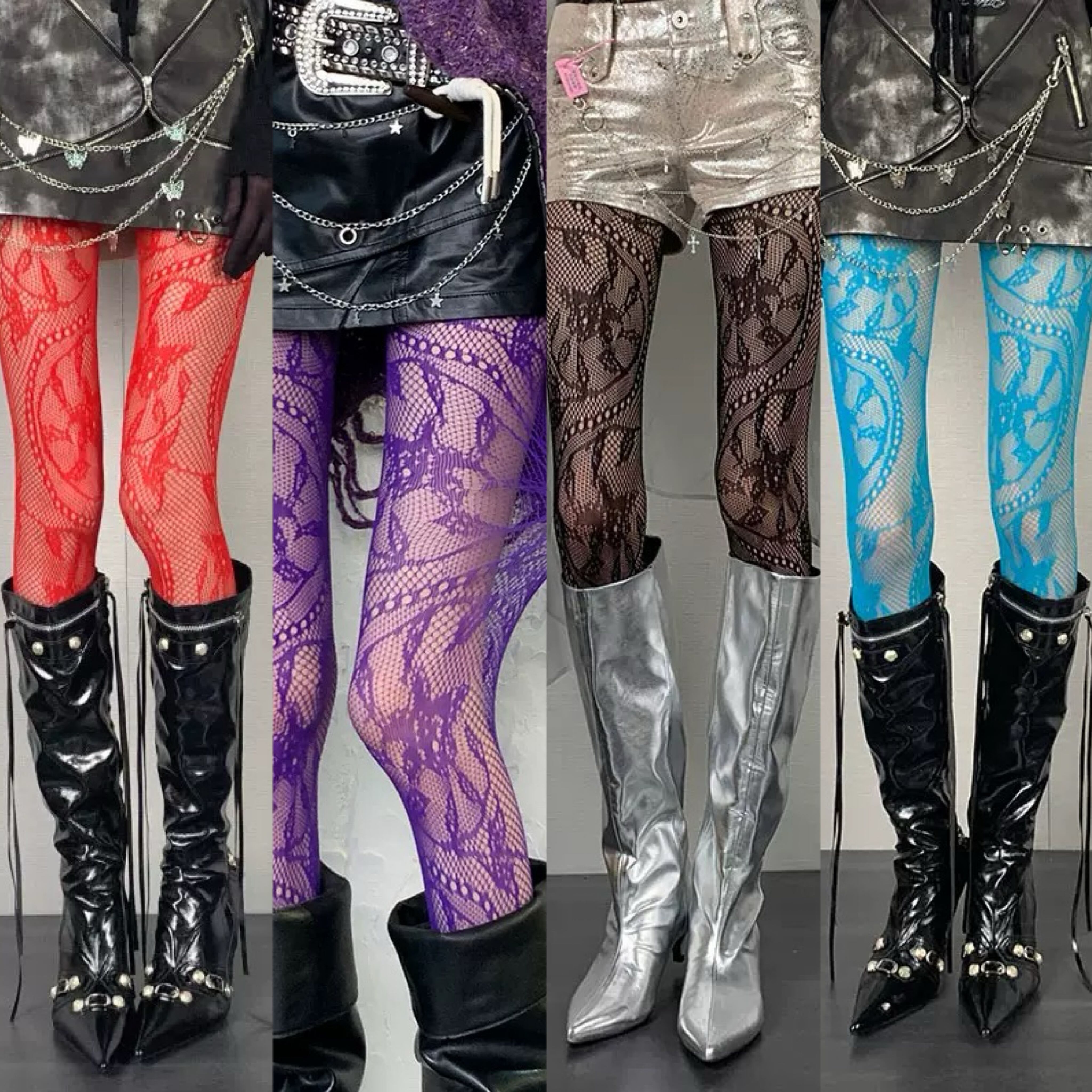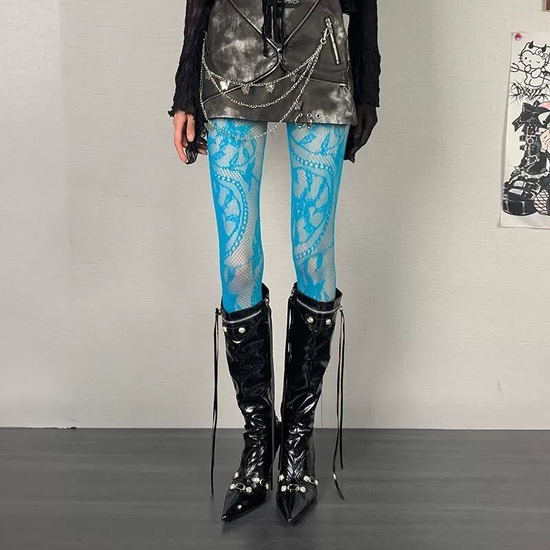 網タイツ 水色 黒 白 花柄 フラワー 赤 紫