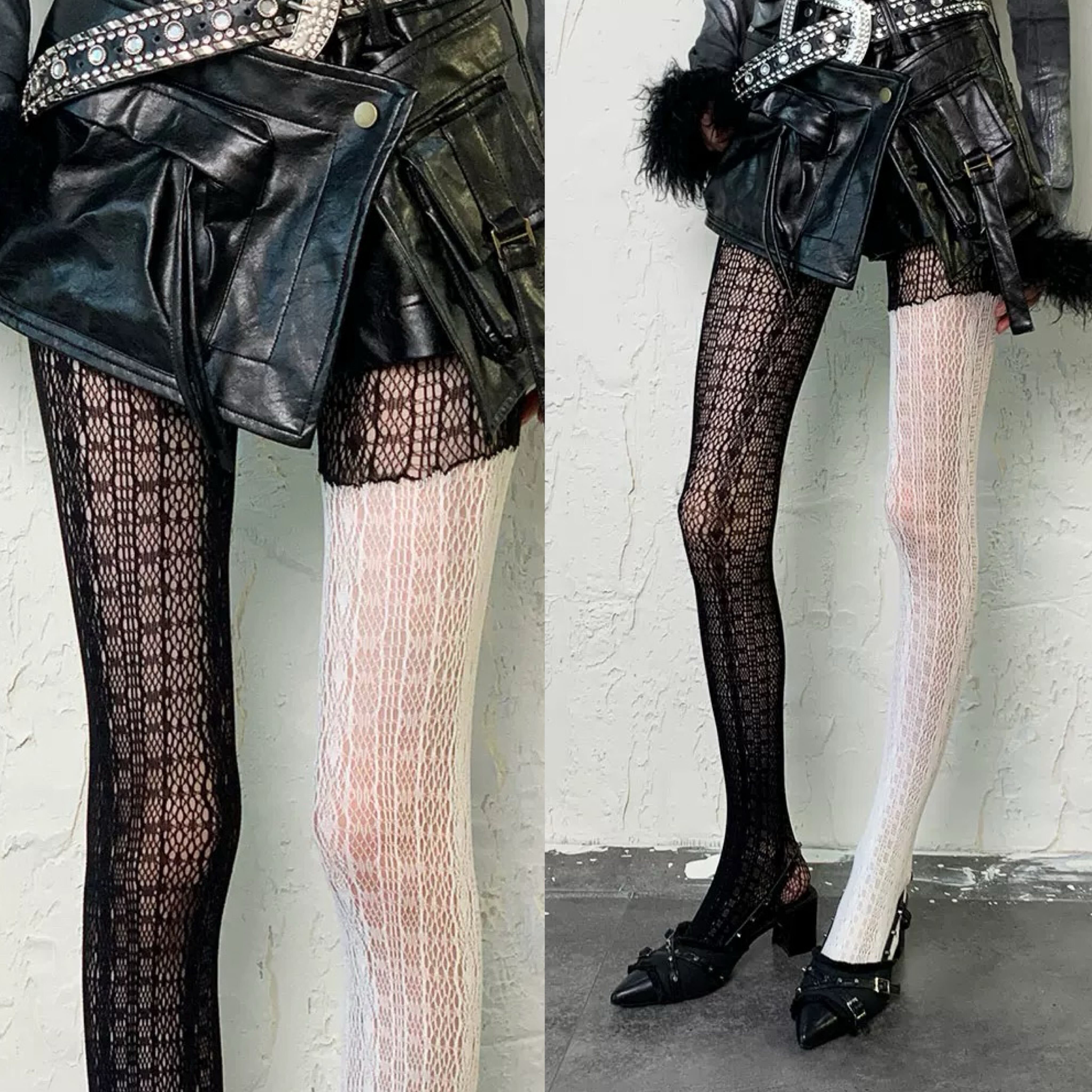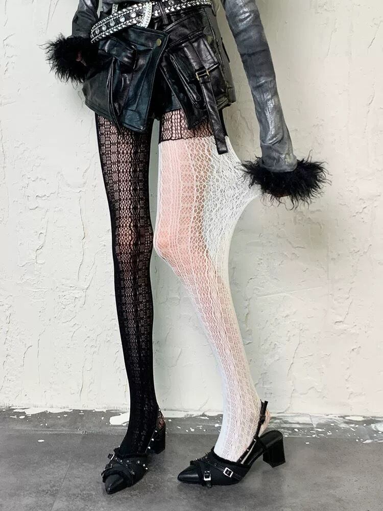 白 黒 バイカラー あみタイツ ストッキング