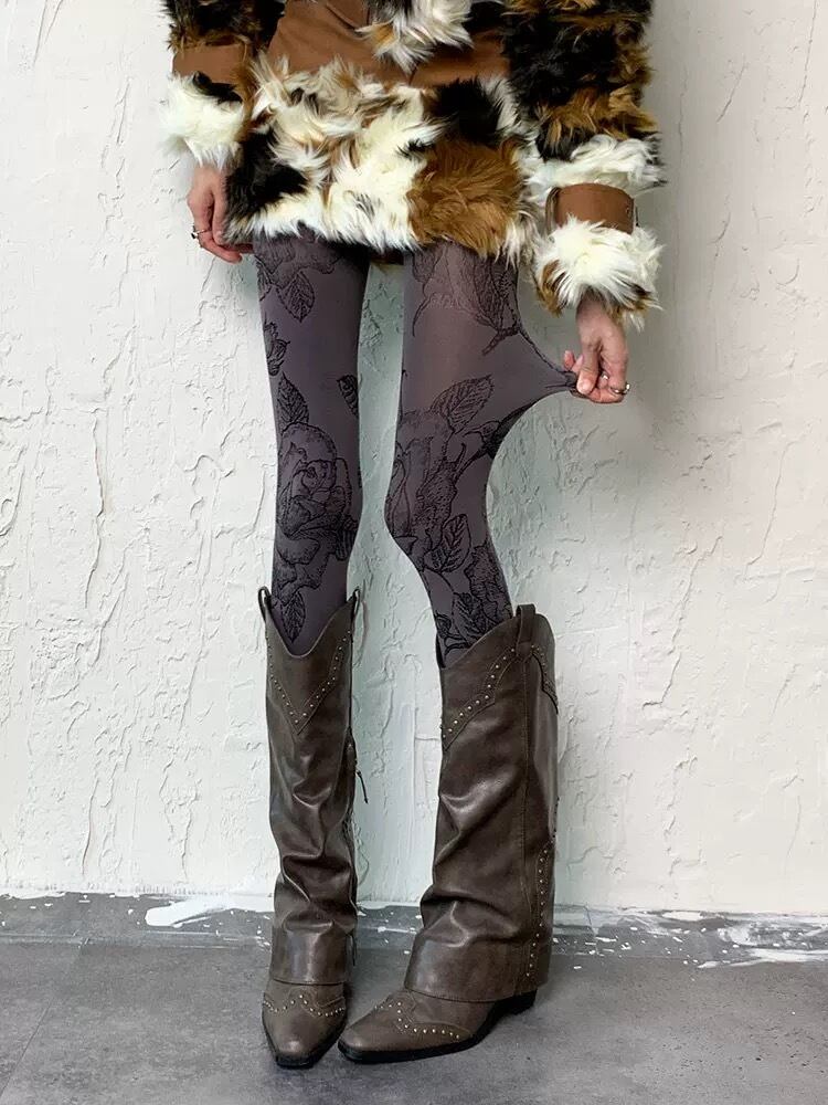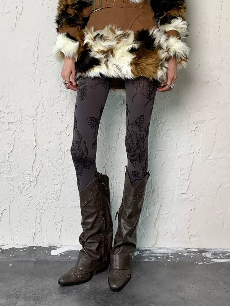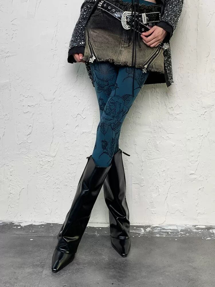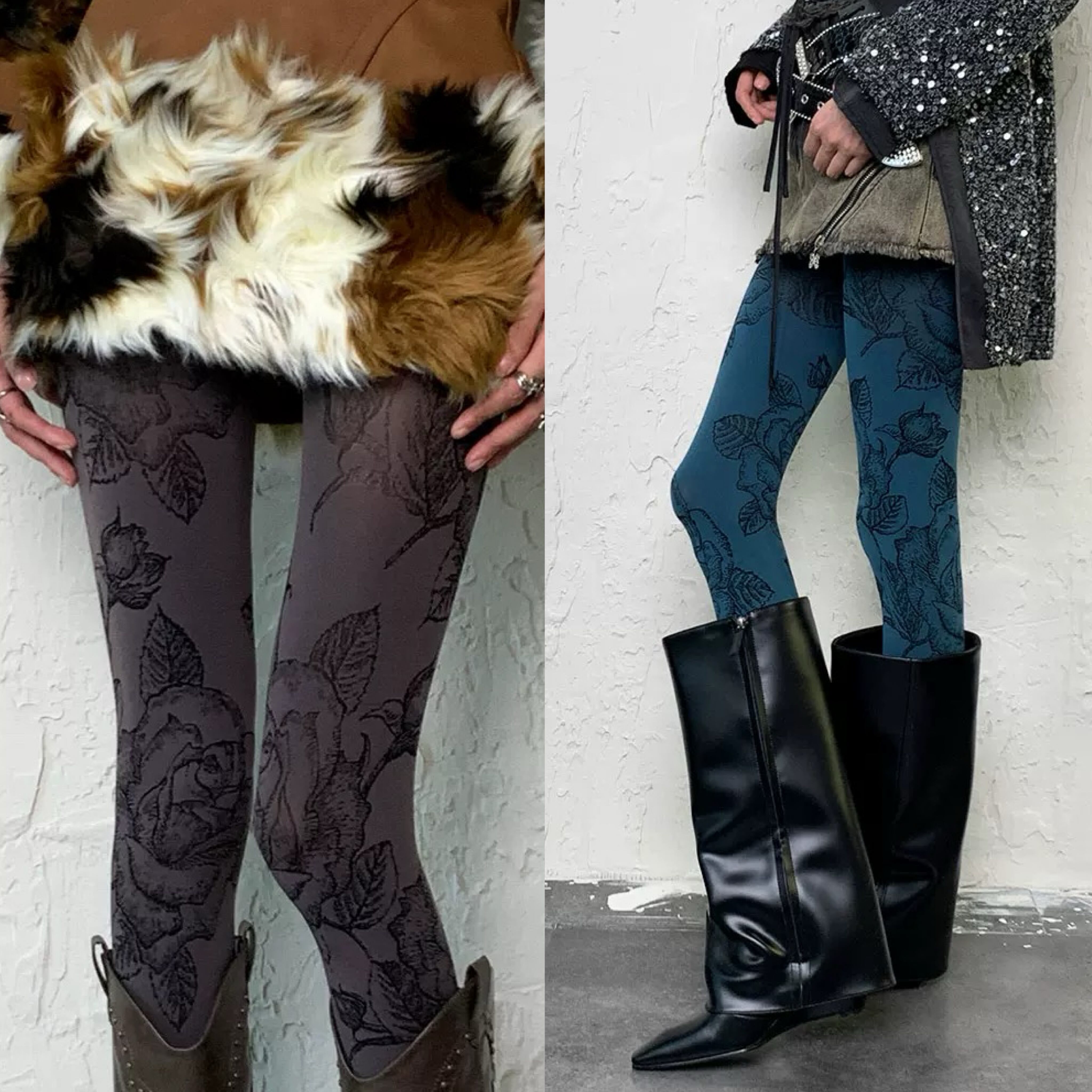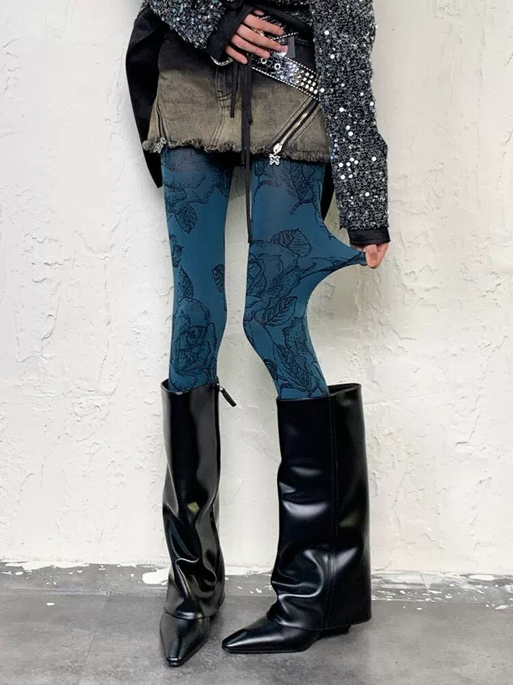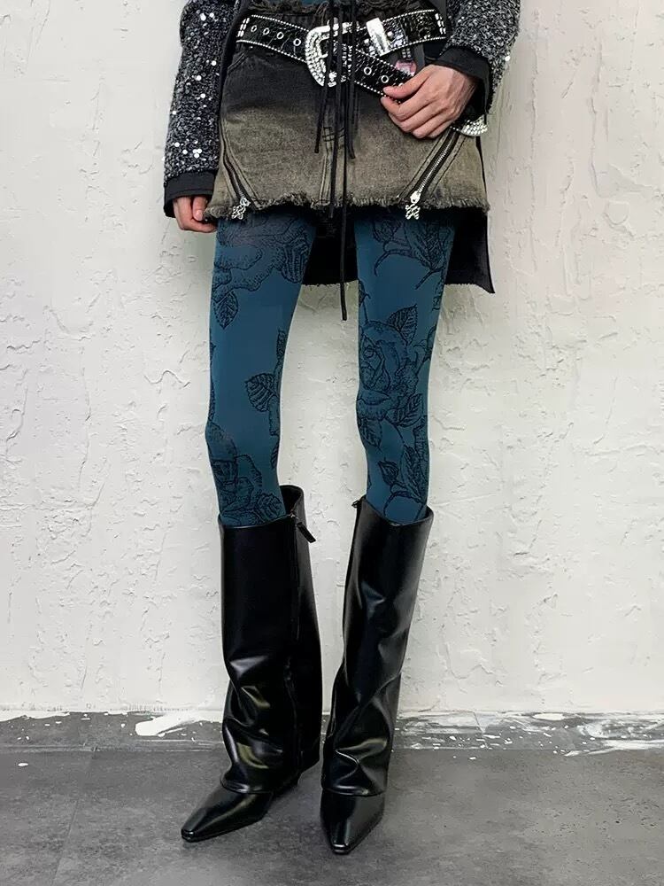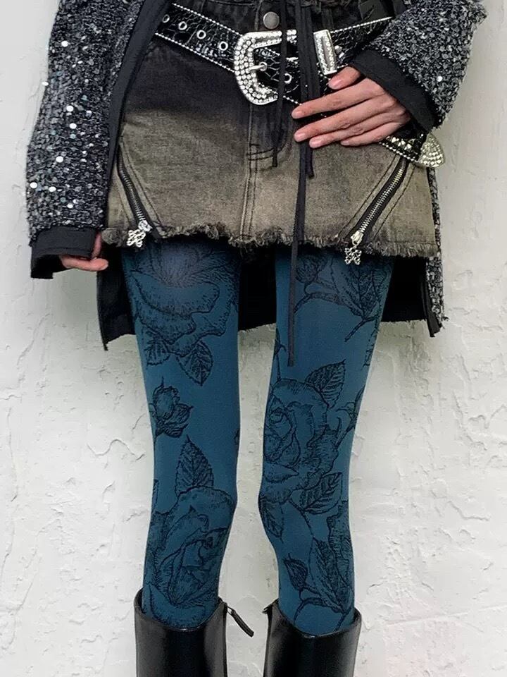 薔薇 花柄 フラワー 黒 青 グレー タイツ
