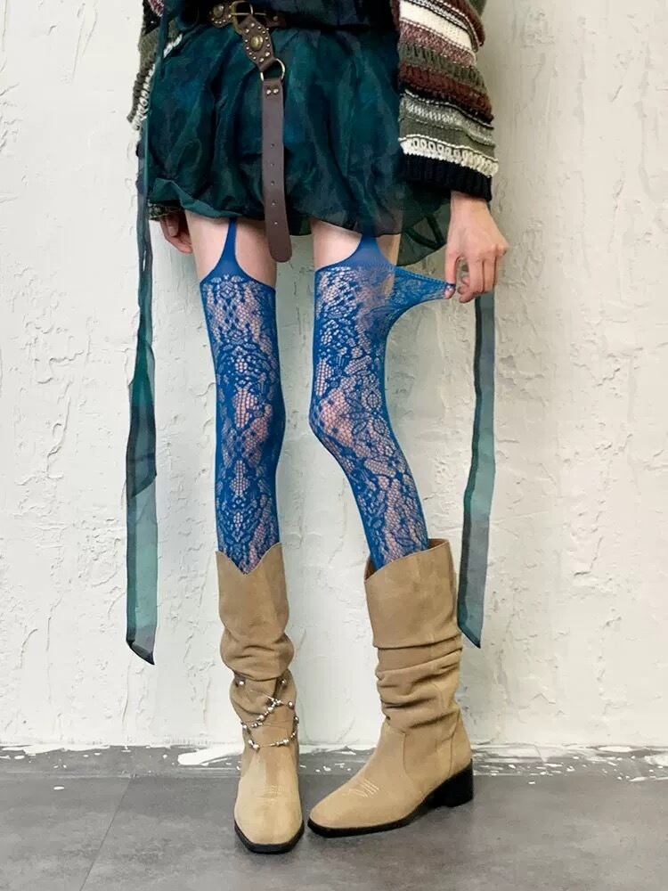 タイツ 青 水色 黒 あみあみ 白 紫 赤 茶色