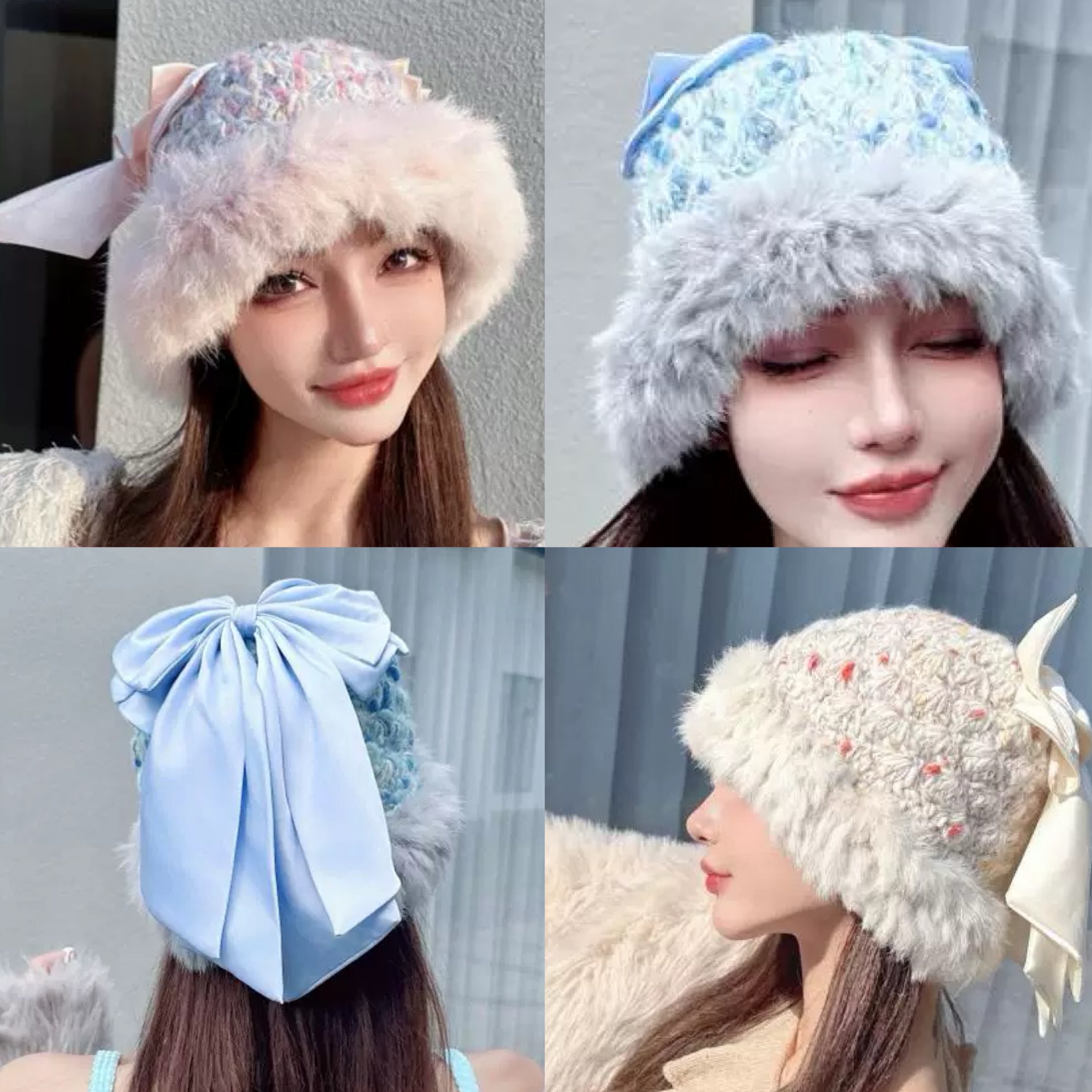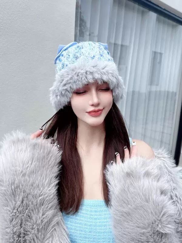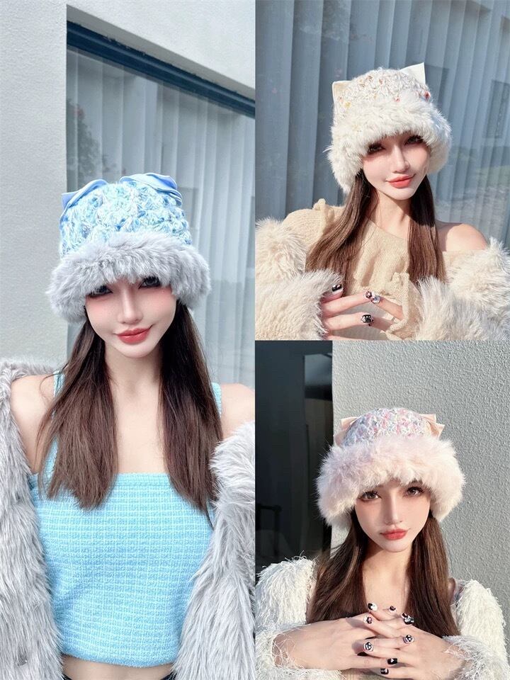 リボン モヘア 帽子 可愛い ガーリー ピンク ベージュ