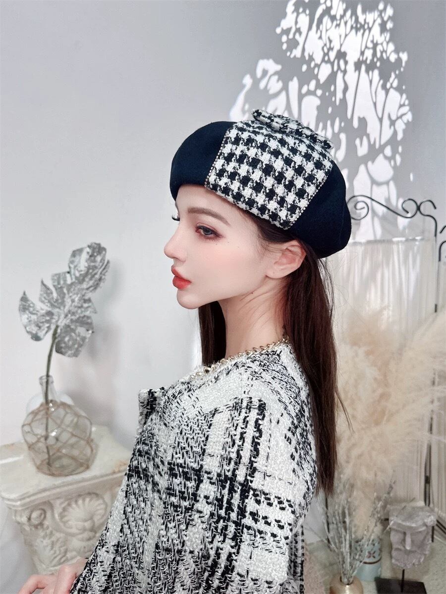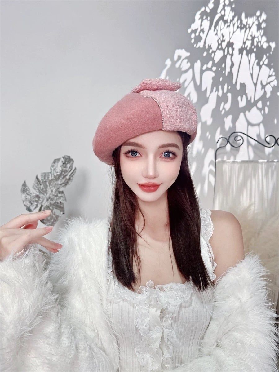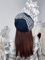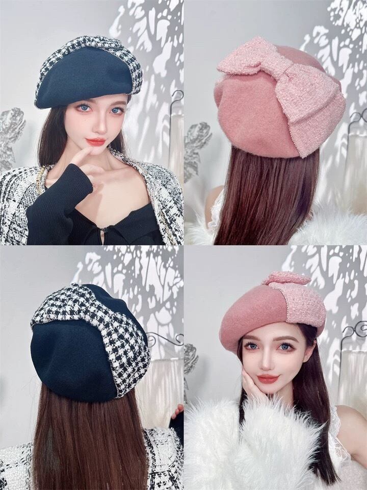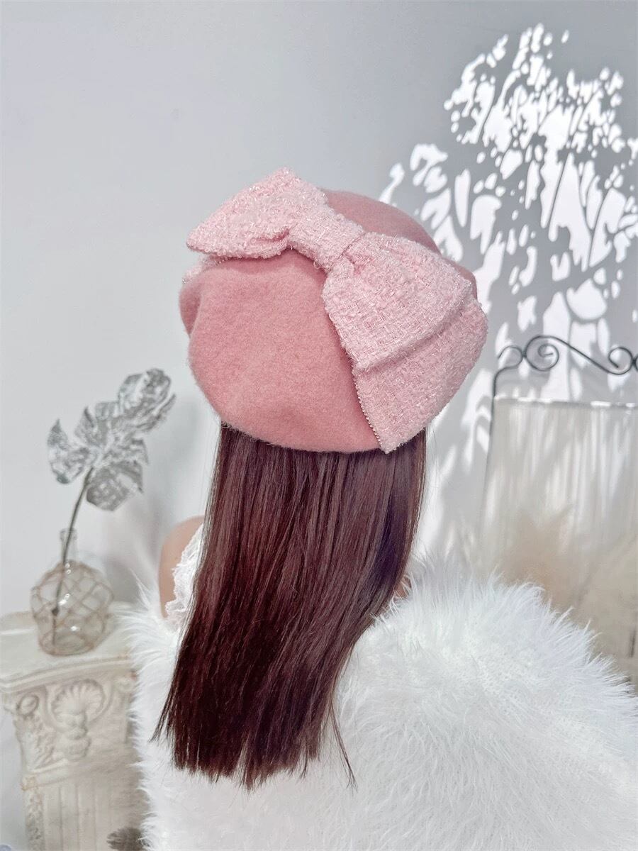 リボン 黒 ピンク チェック ベレー帽 帽子