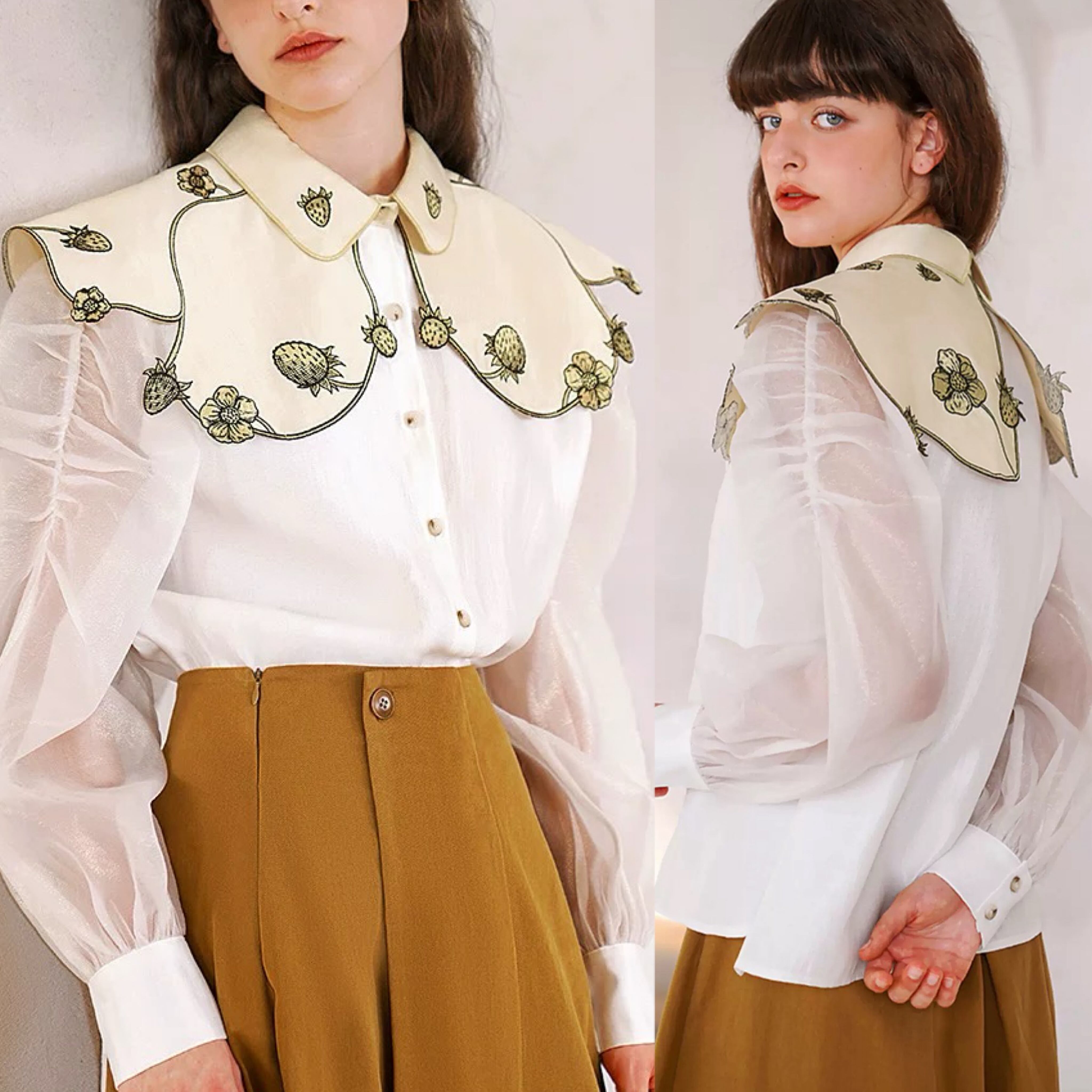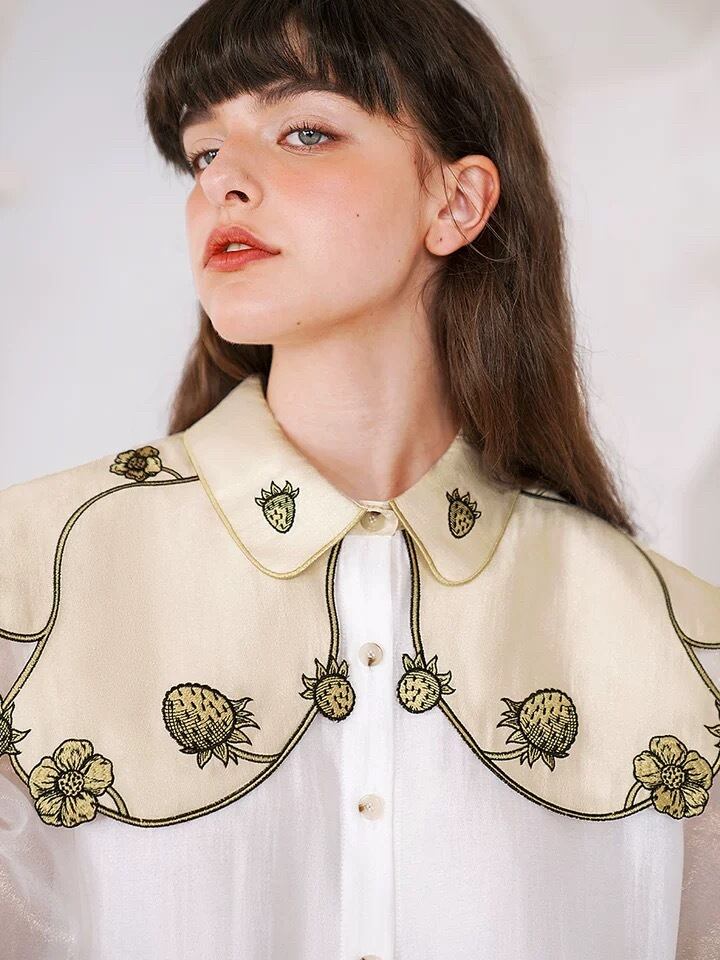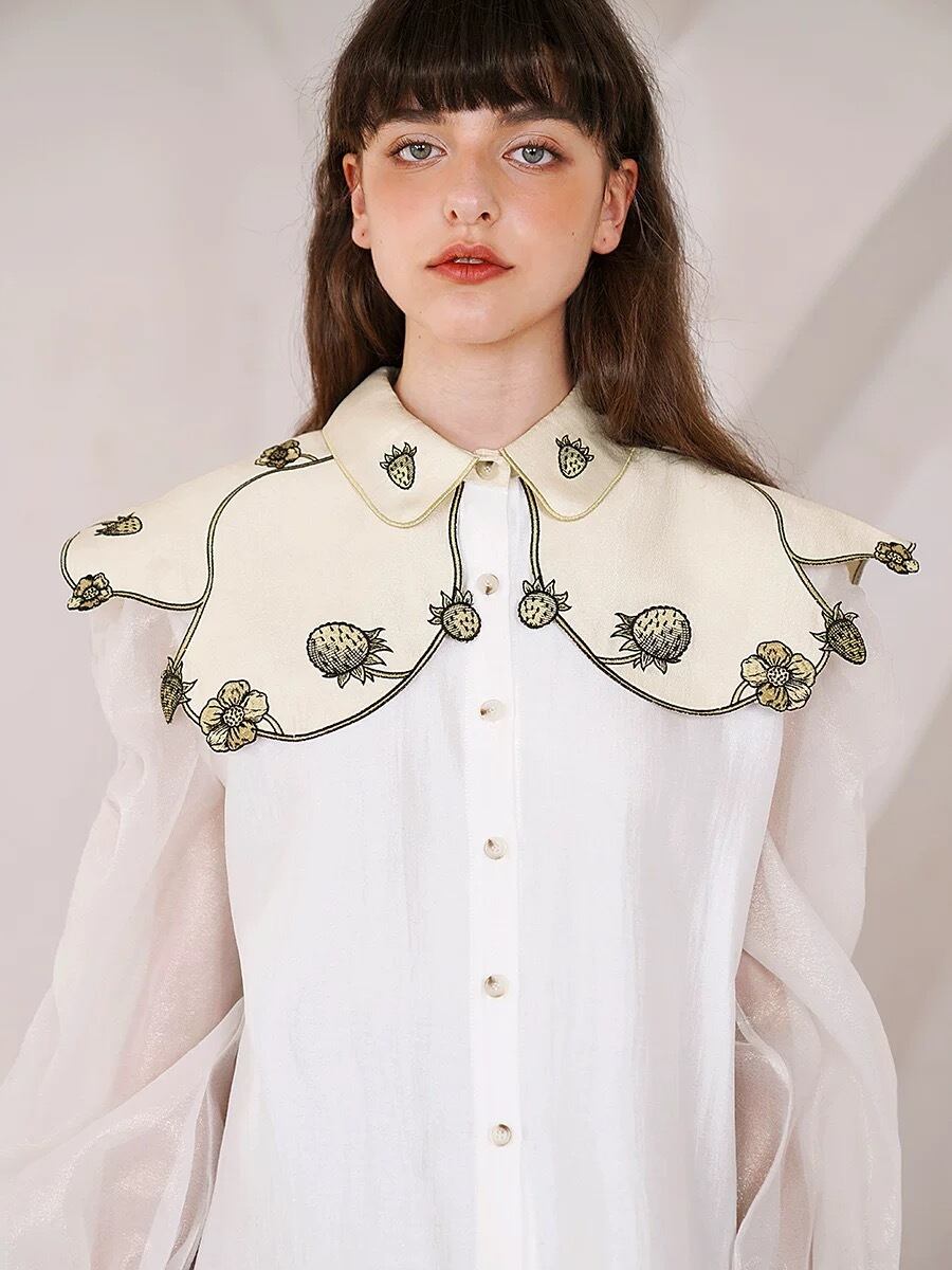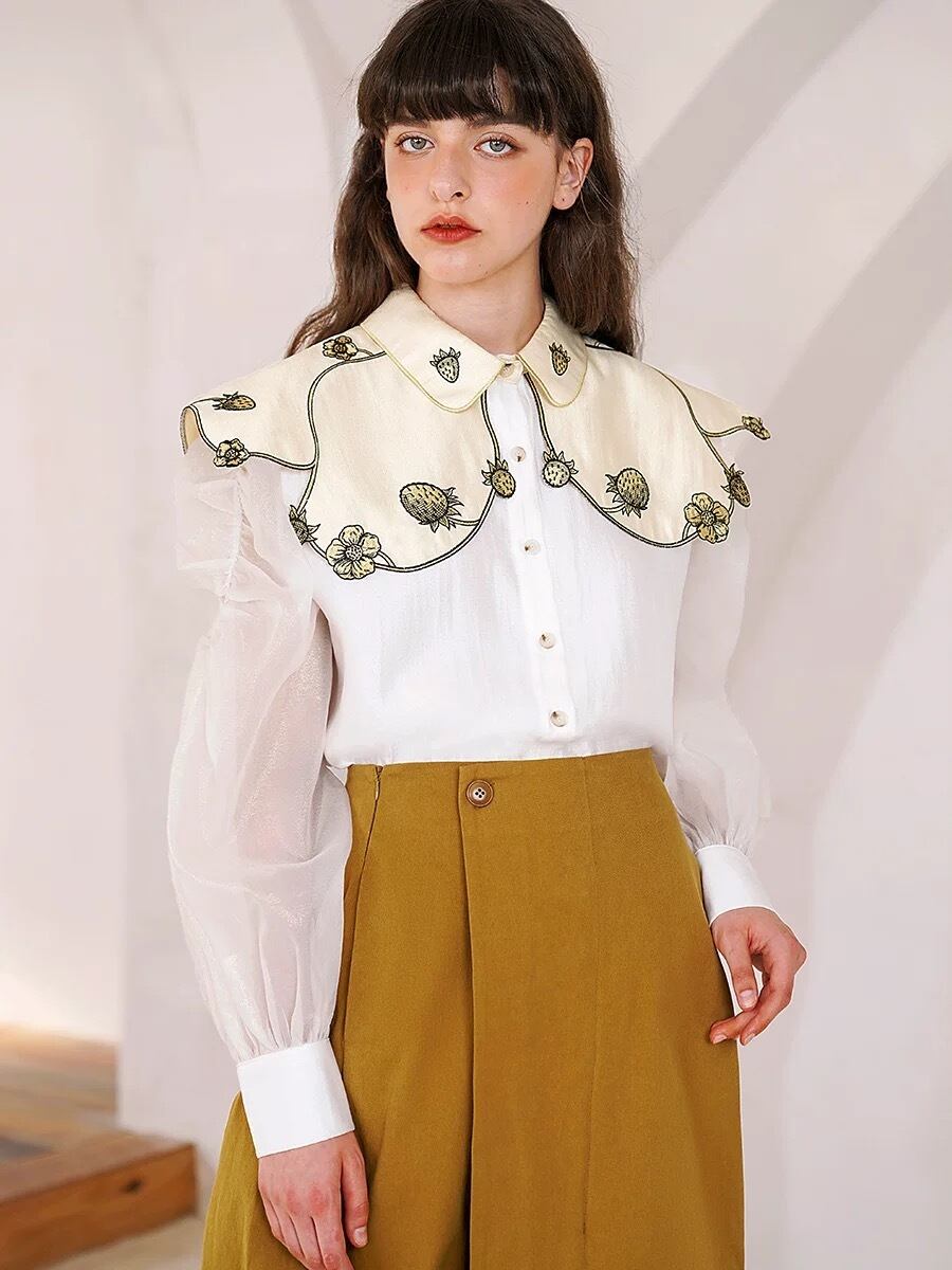 デカ襟 フルーツ 丸襟 白 緑 ブラウス