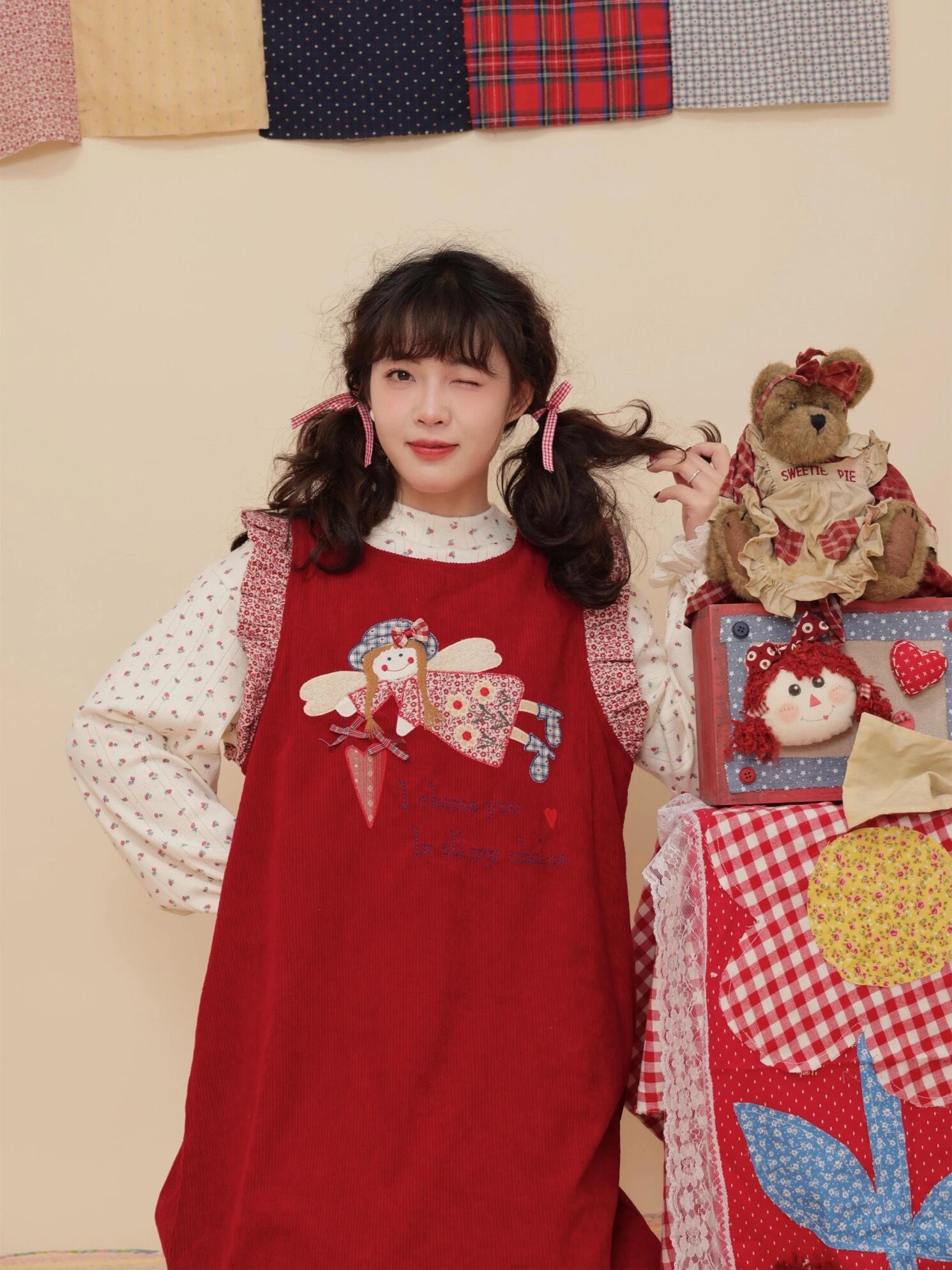 チェック ガーリー 黒 赤 可愛い ワンピース