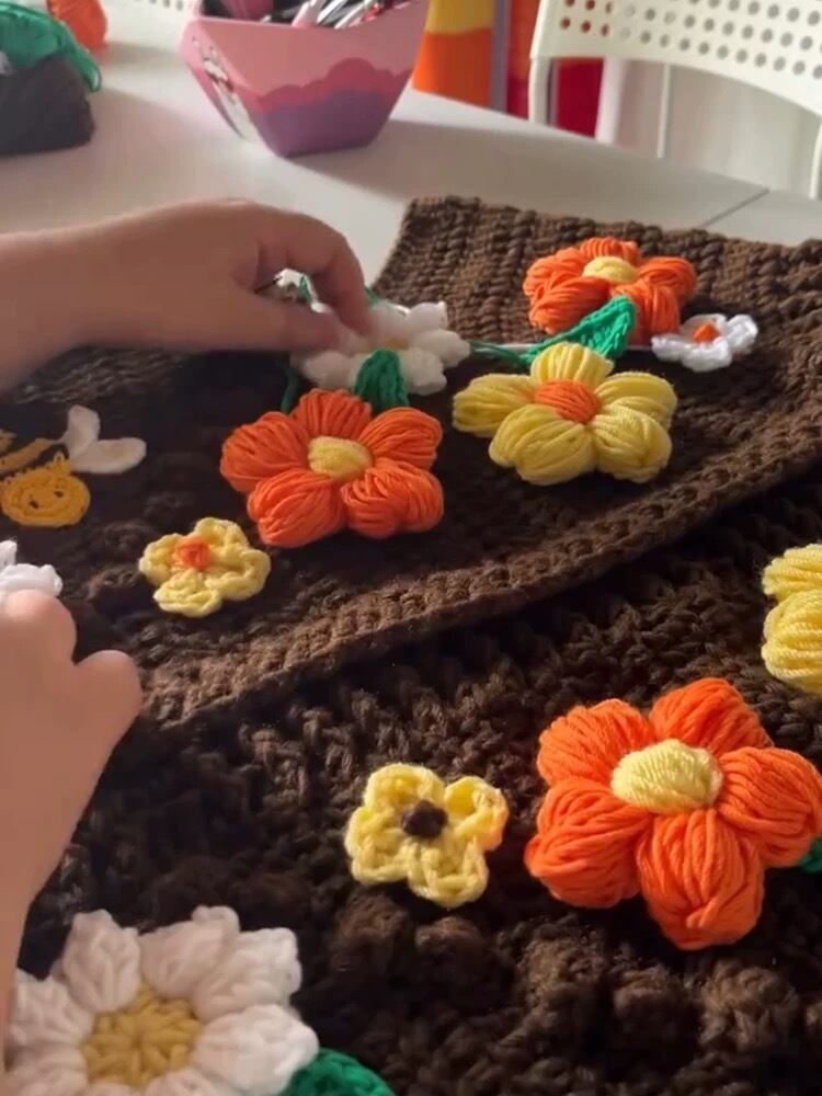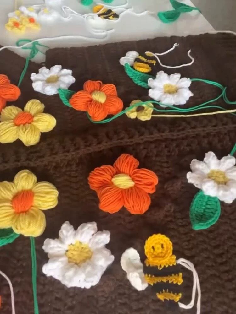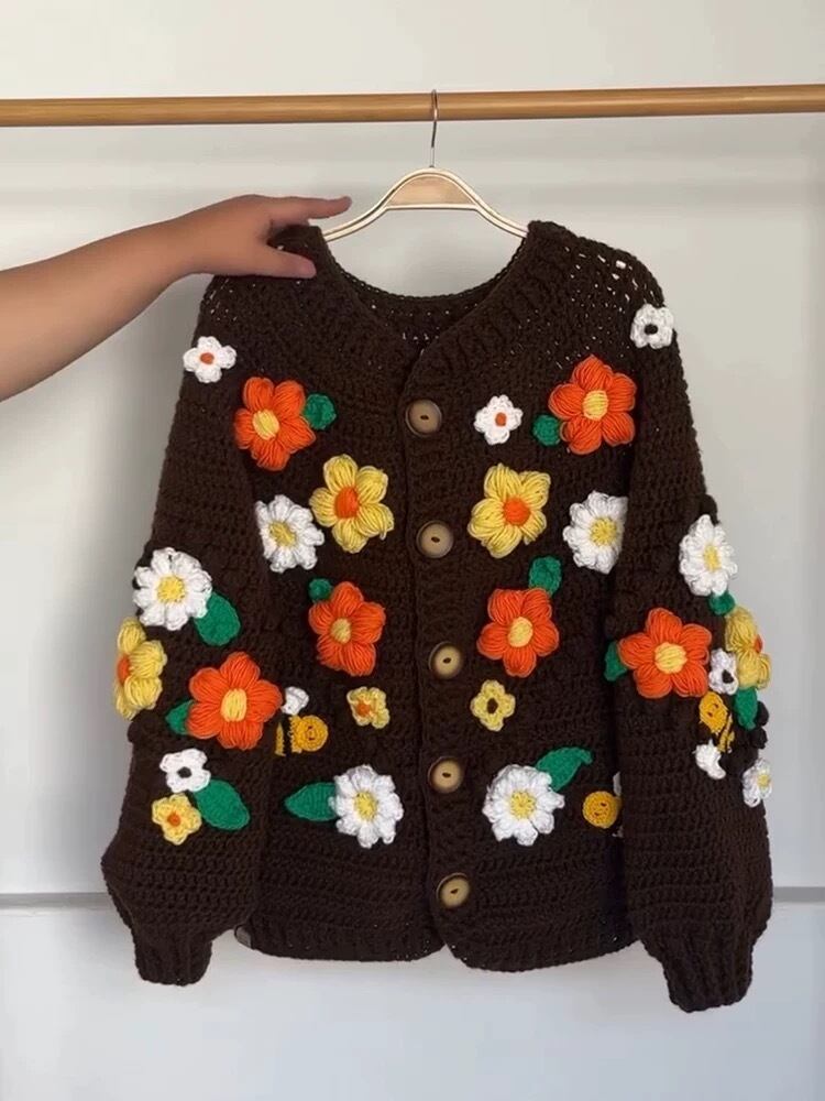 黄色 オレンジ 花柄 茶色 フラワー セーター XL