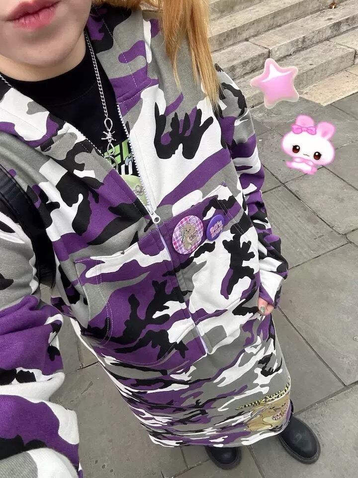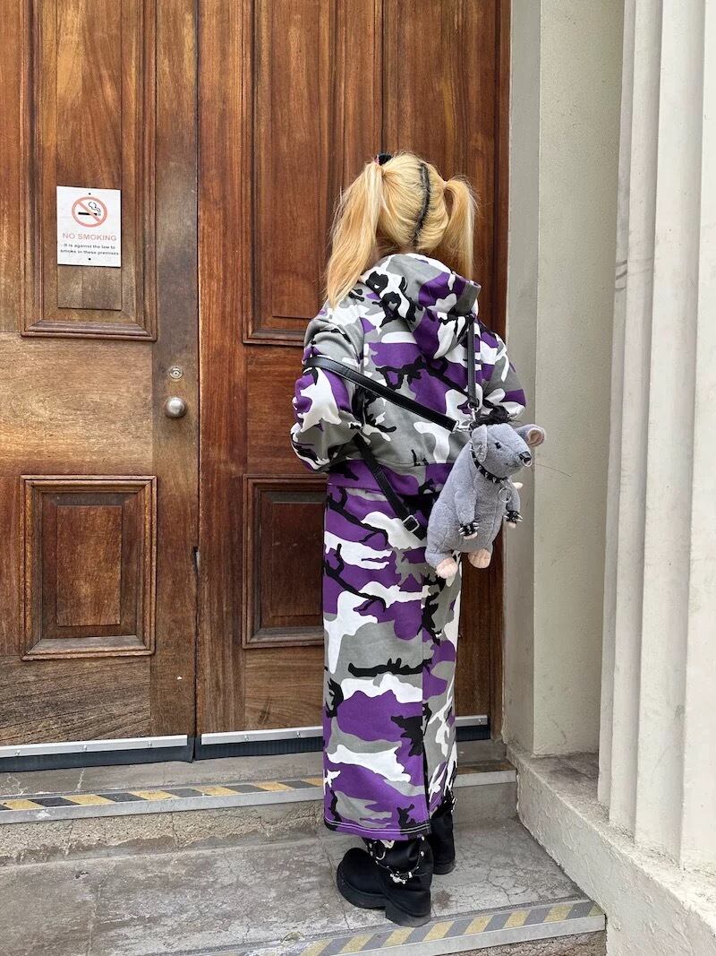 紫 パーカー スカート くま スウェット カモフラージュ 迷彩