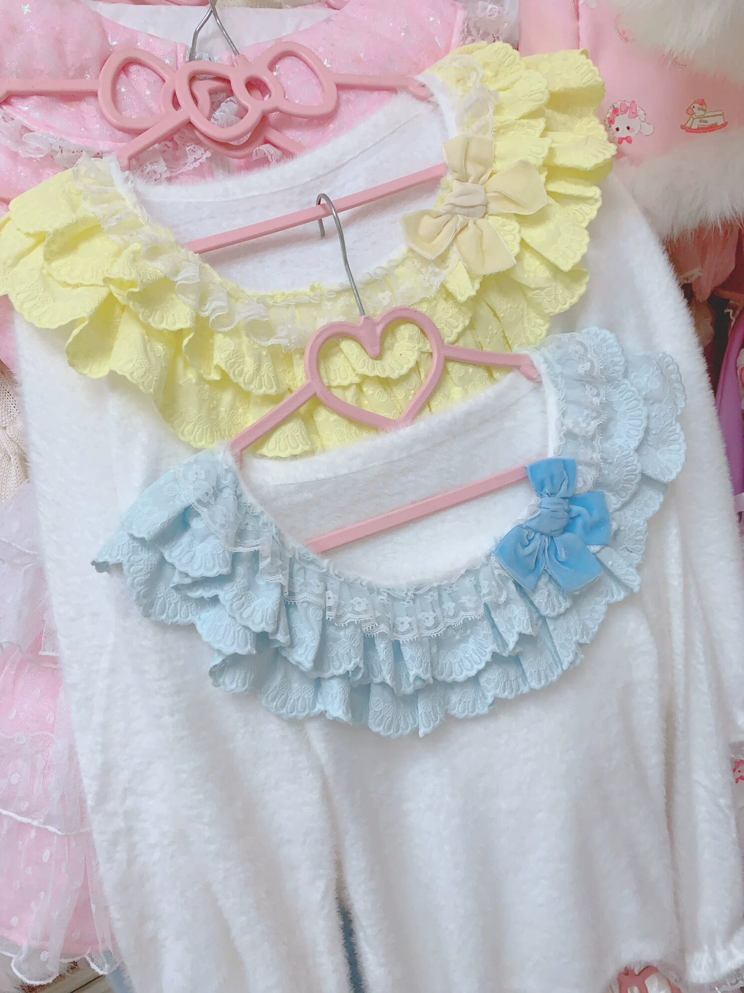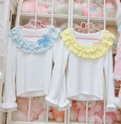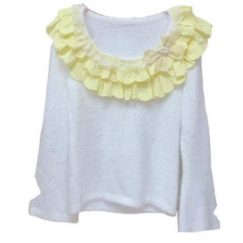 可愛い ガーリー 黄色 フリル リボン 水色 ブラウス