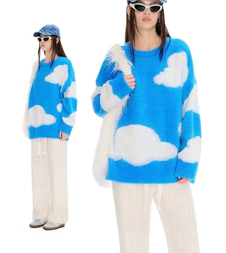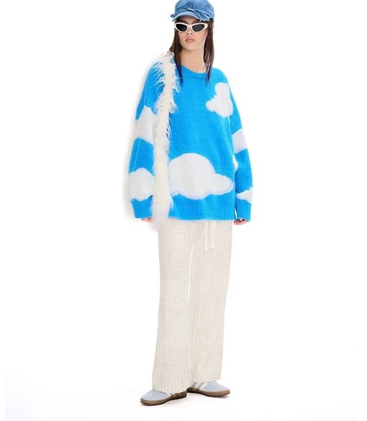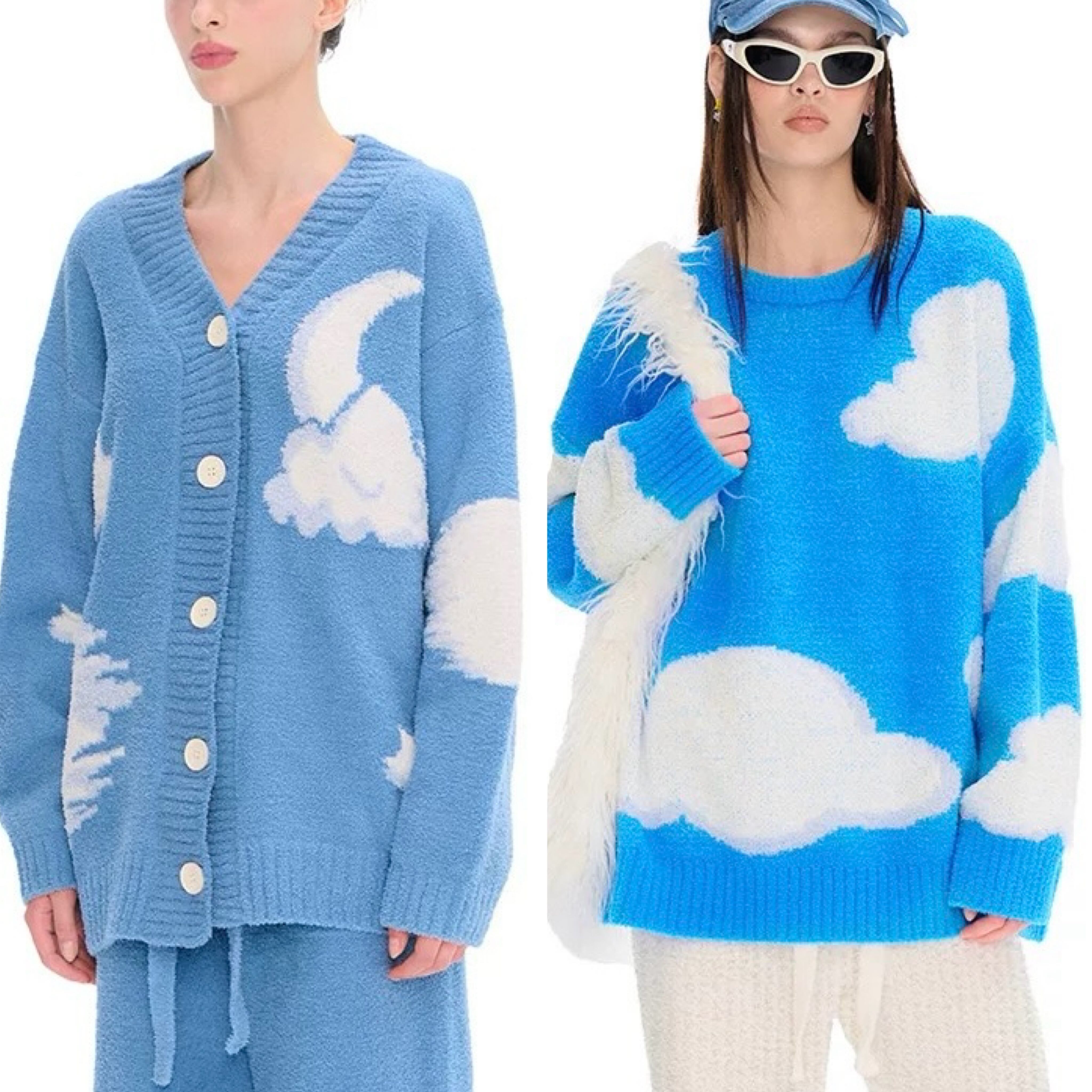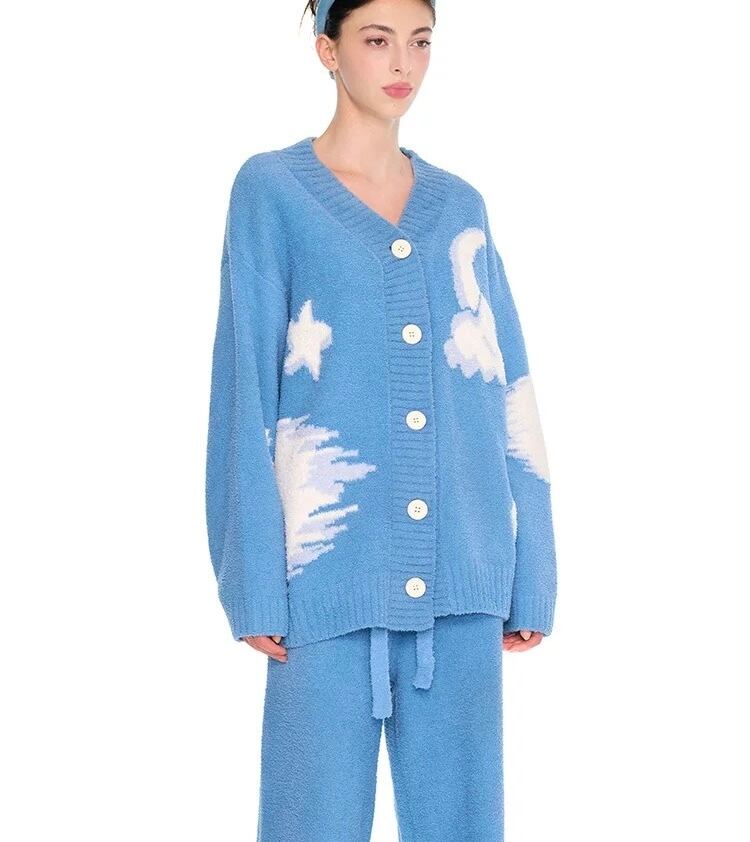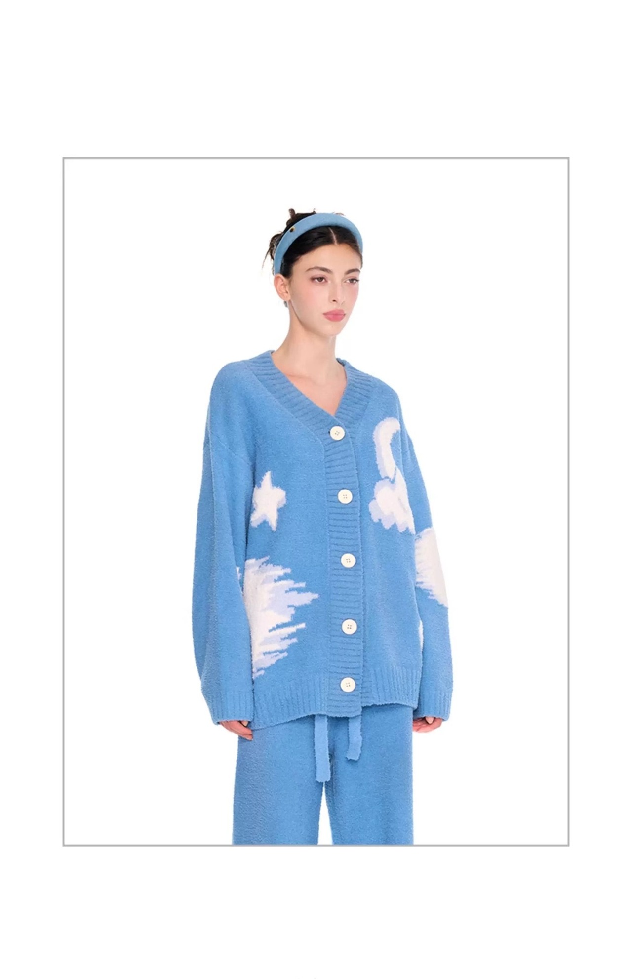 【セットアップ】カーディガン 空 雲 水色 セーター 可愛い