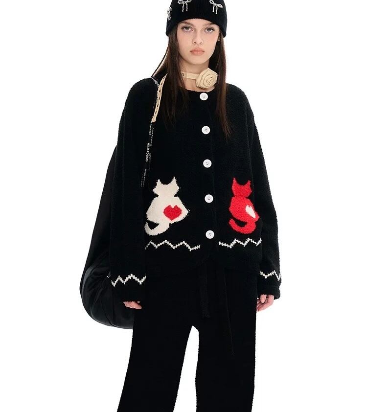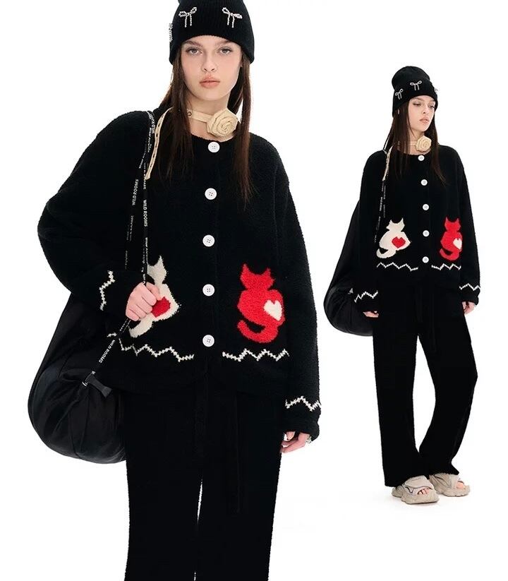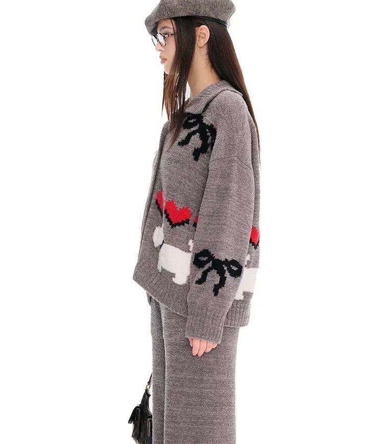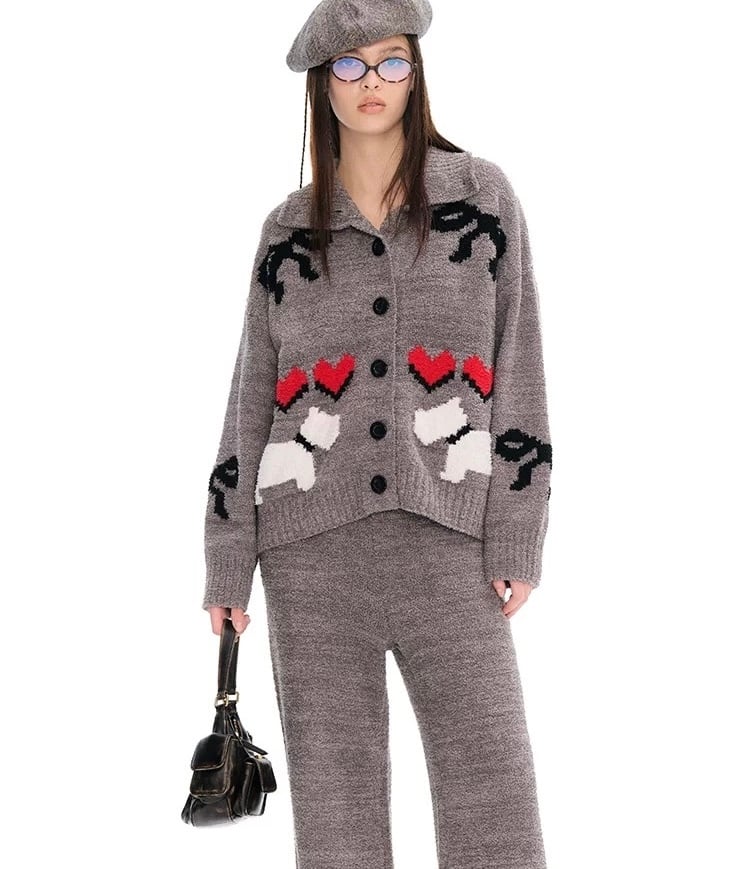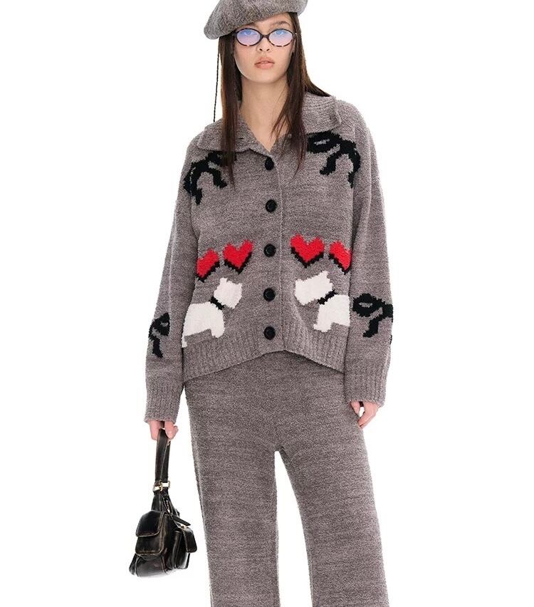 【セット】黒 赤 ハート グレー ねこ 犬 カーディガン