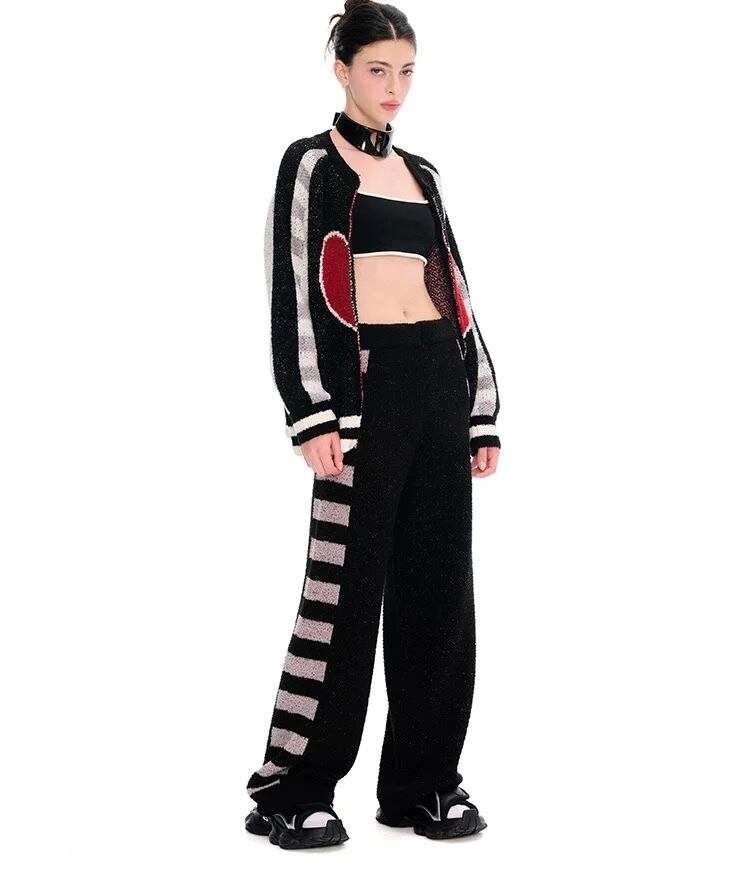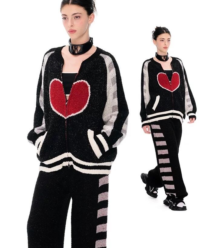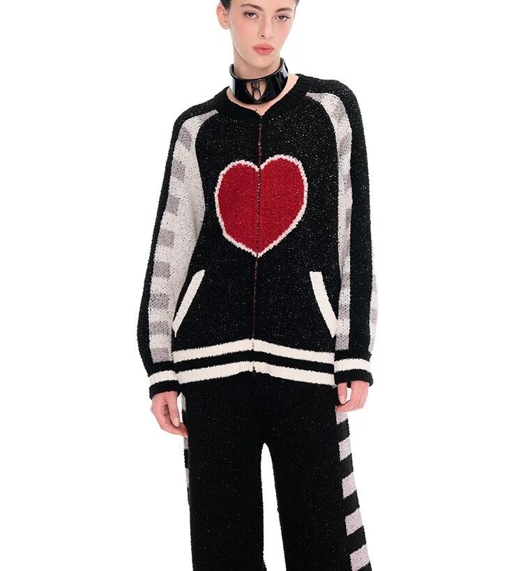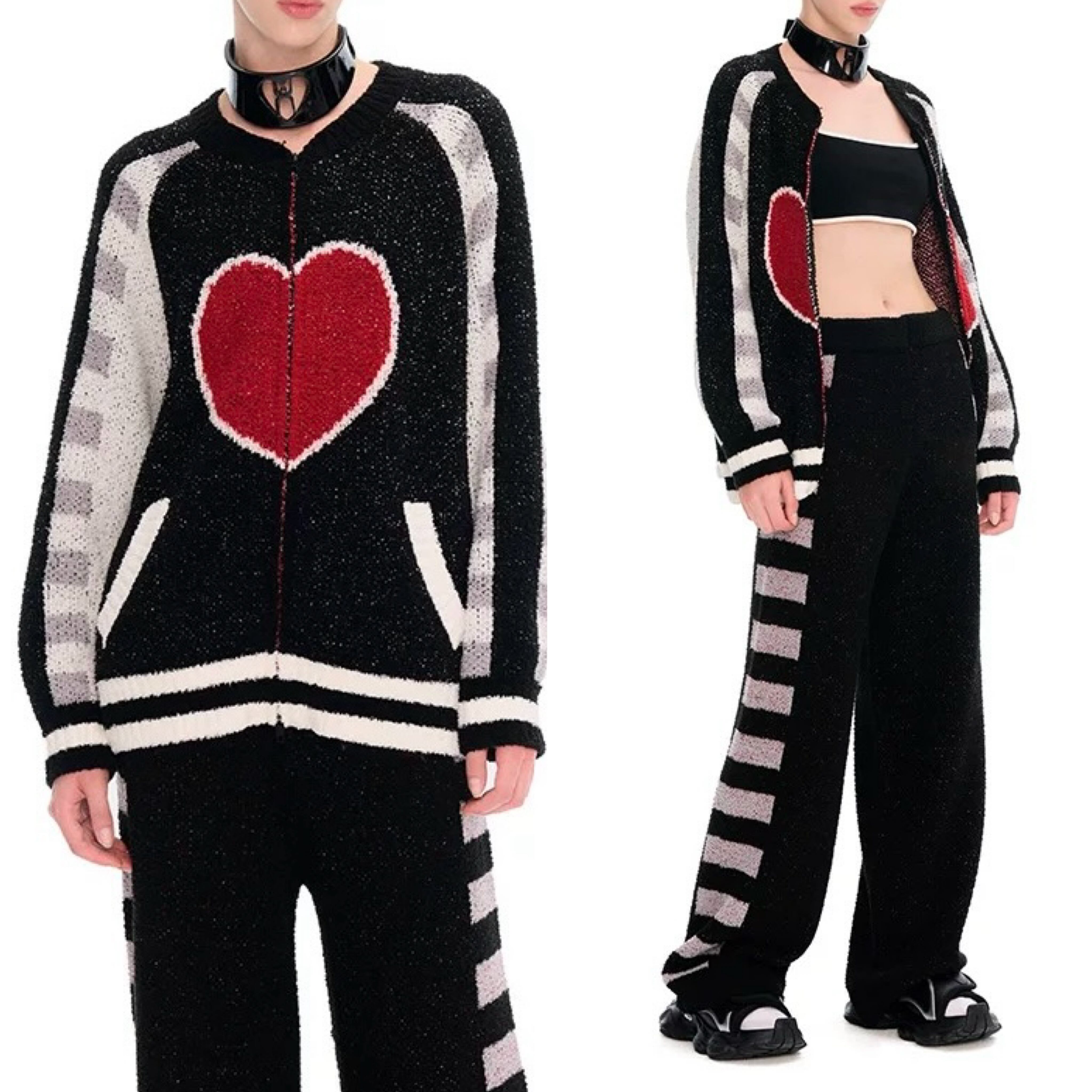 【セット】ハート ボーダー 黒 カーディガン