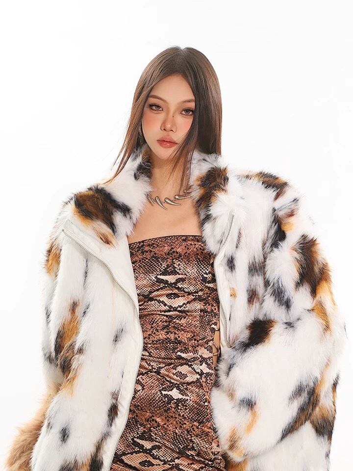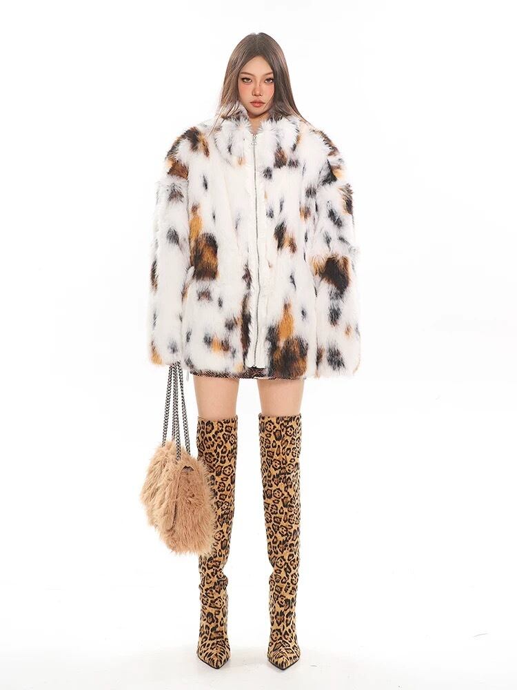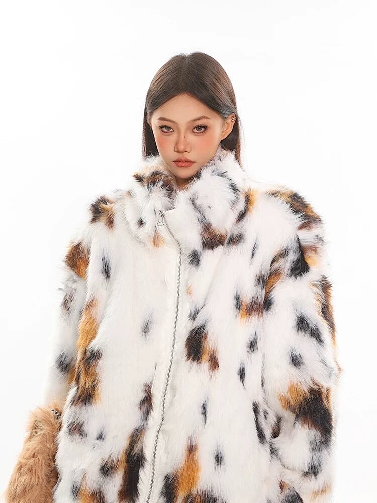 白 茶色 豹柄 ヒョウ柄 レオパード ファー コート