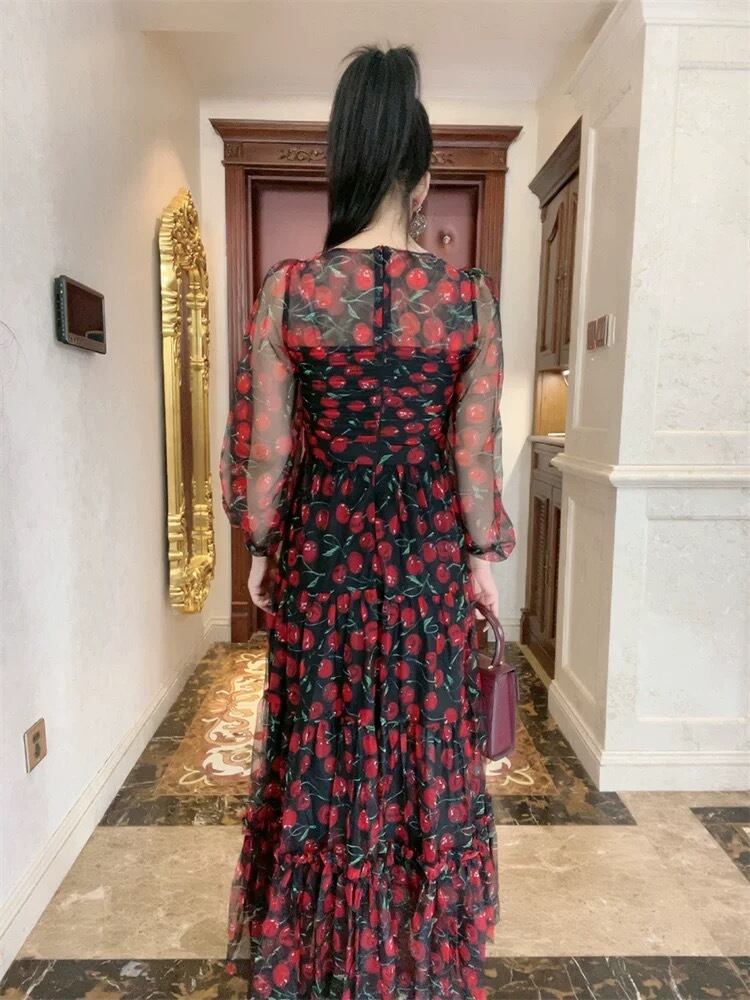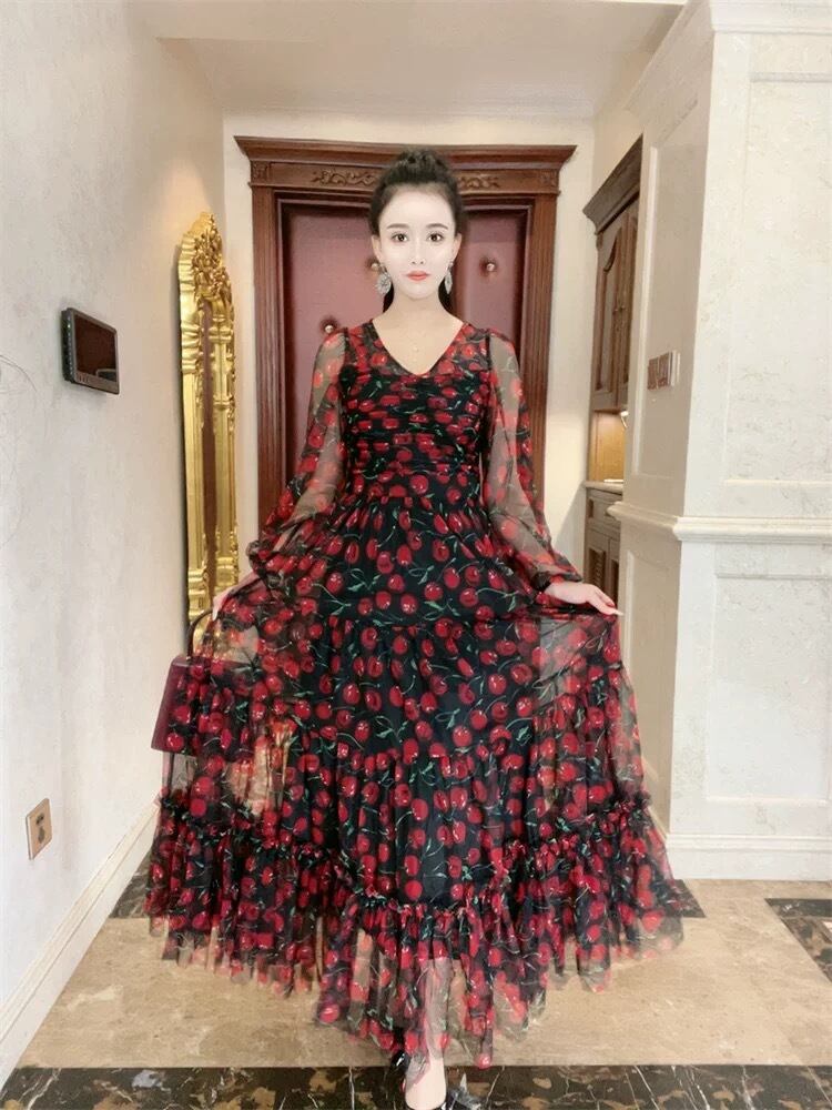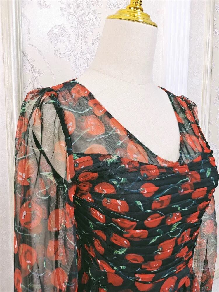 赤 黒 さくらんぼ ブラウス ワンピース XL