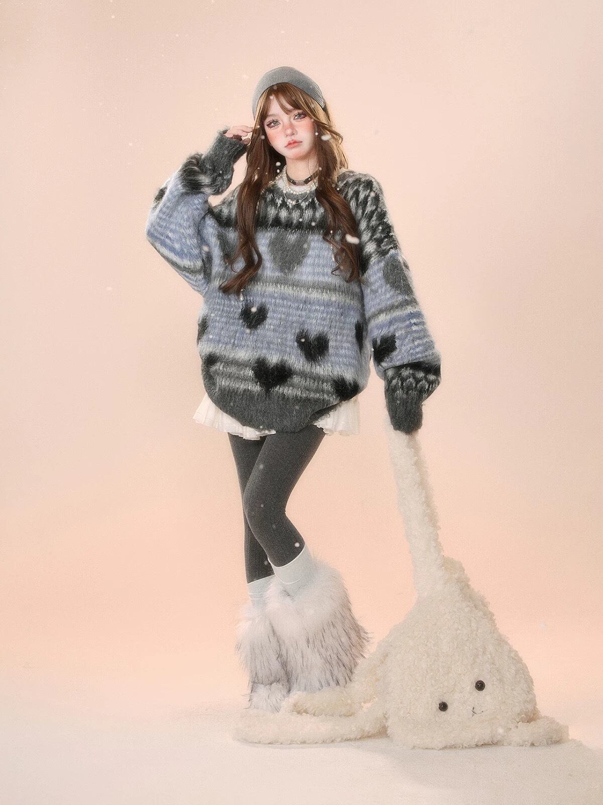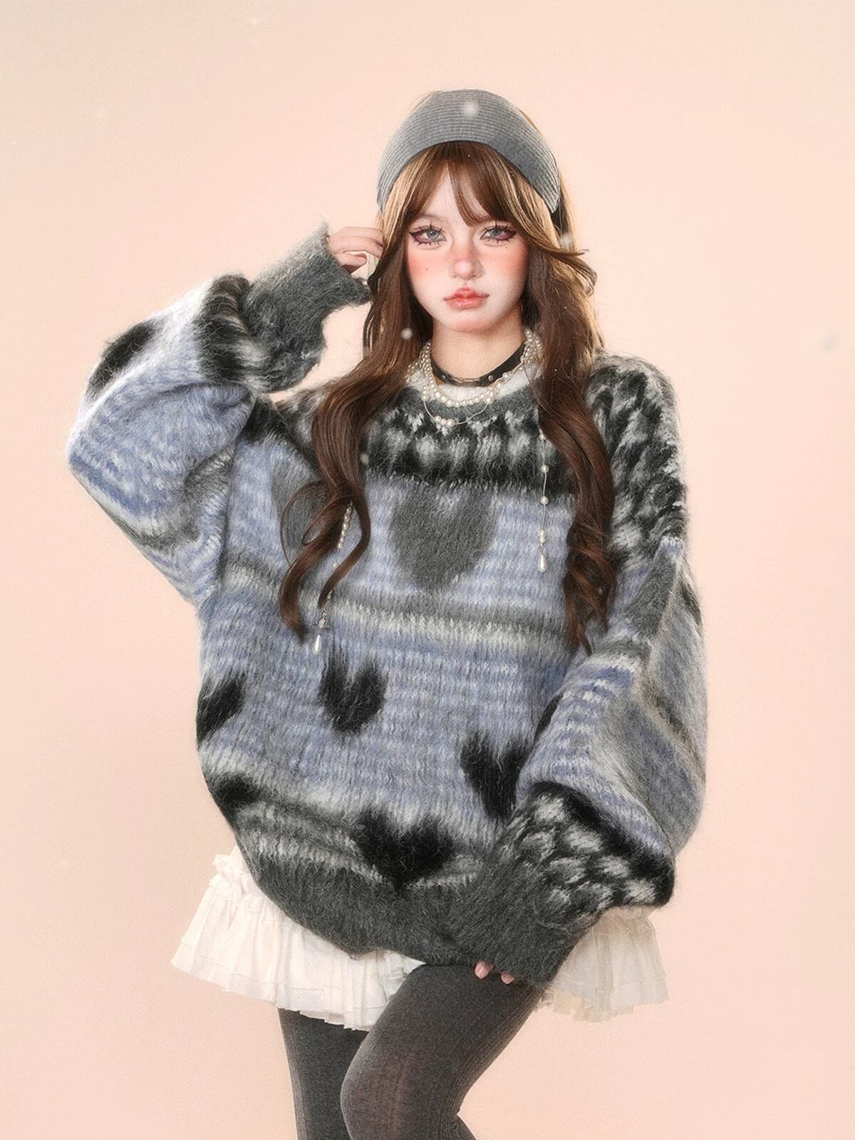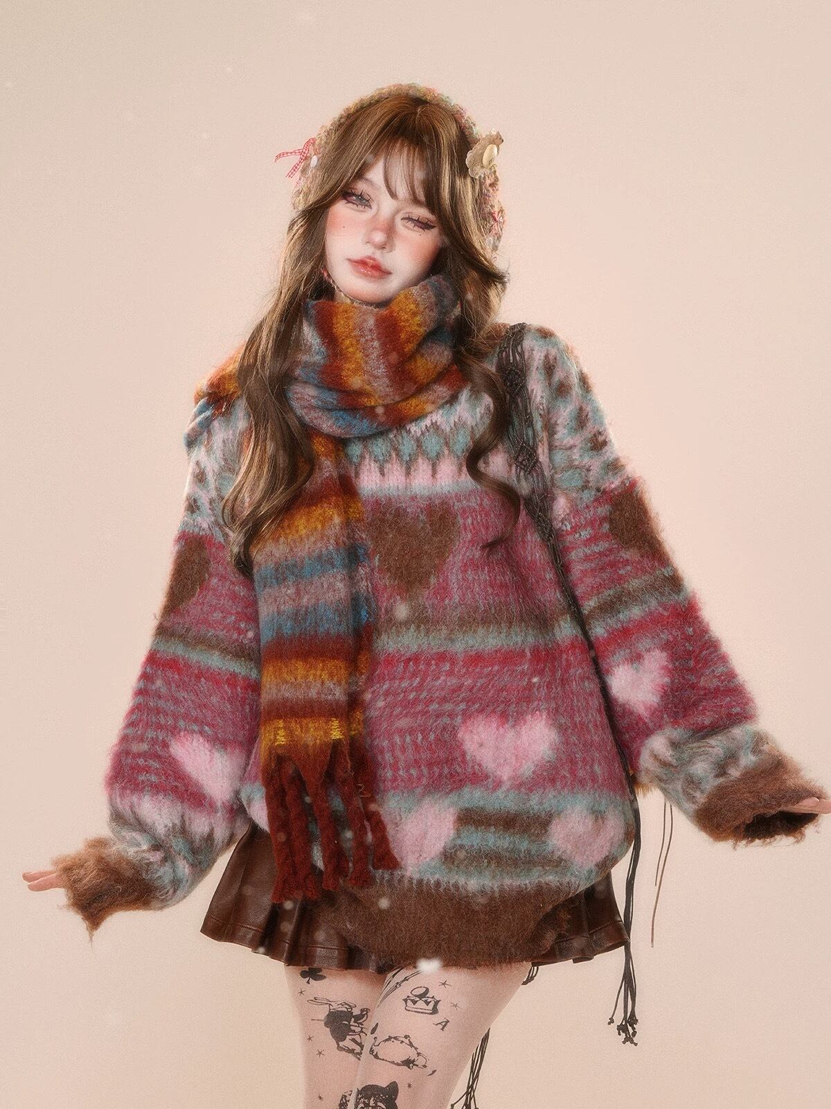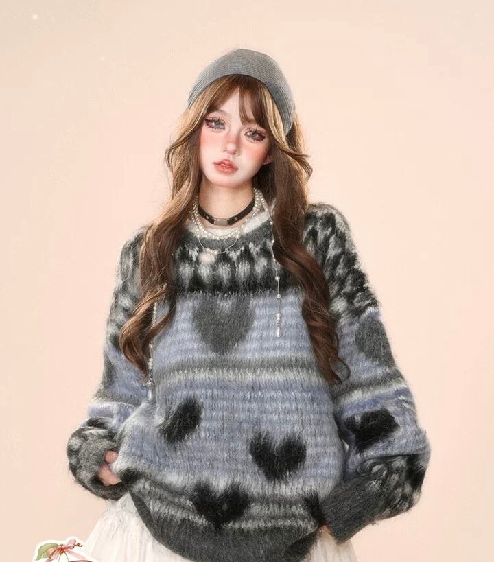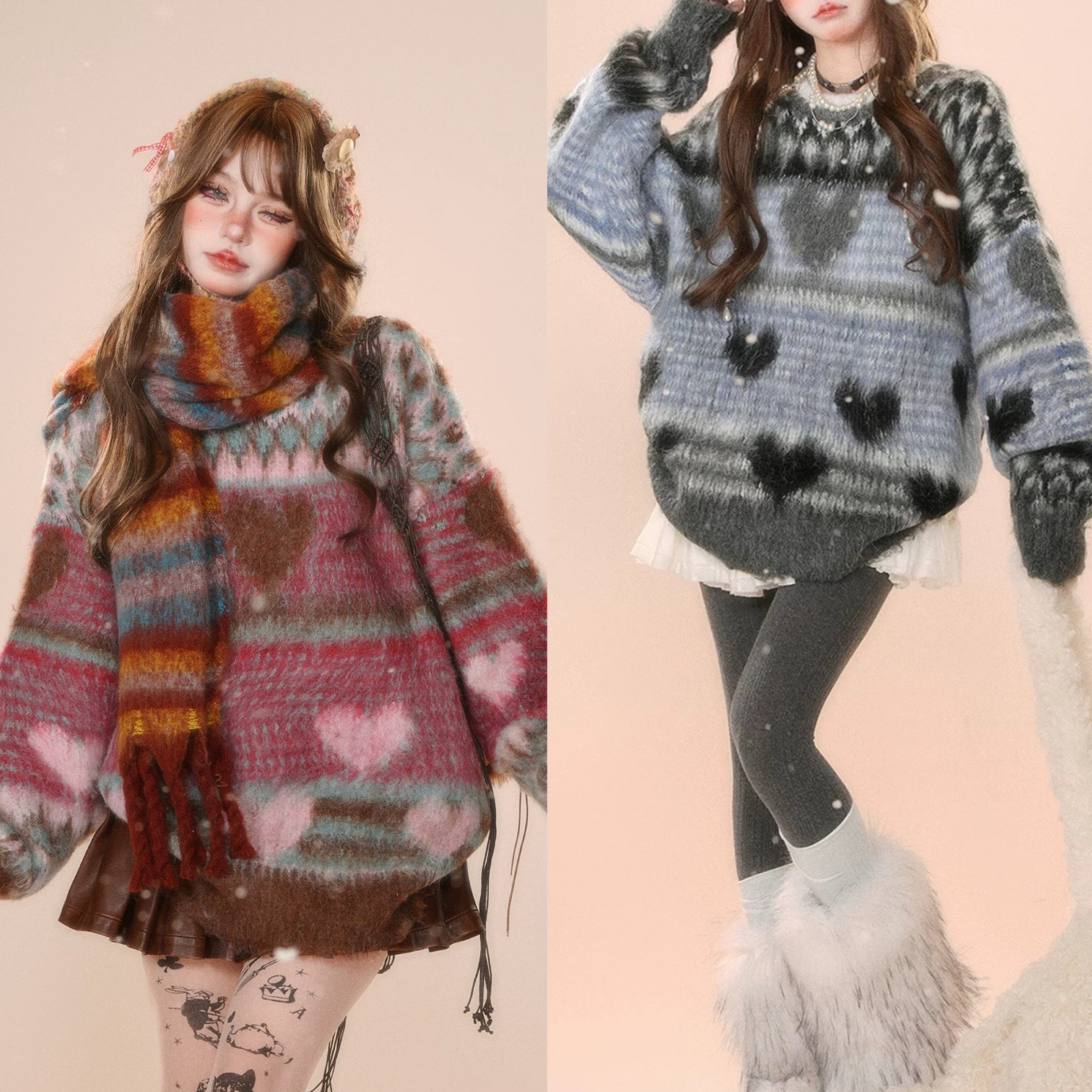 ボーダー ハート グレー ピンク セーター XL カーディガン XL