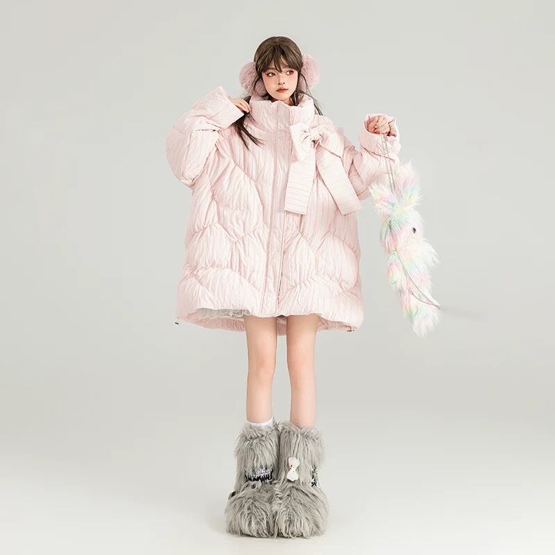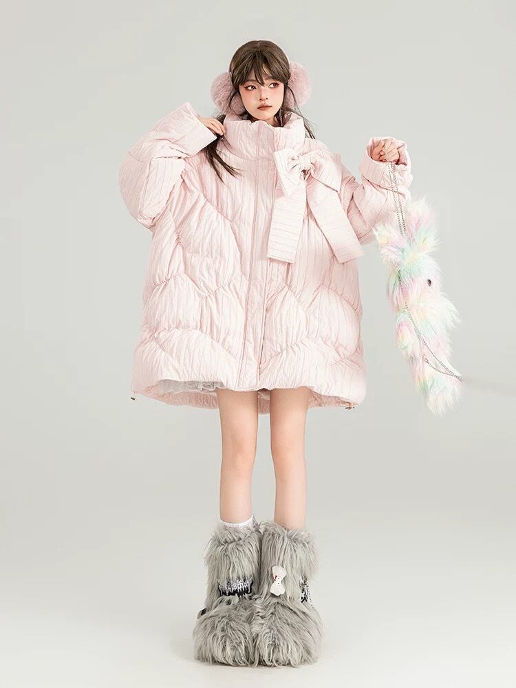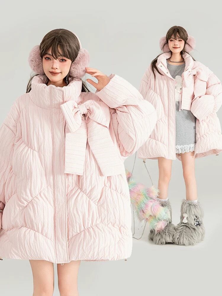 ダウン ピンク コート リボン アウター XL ジャケット XL