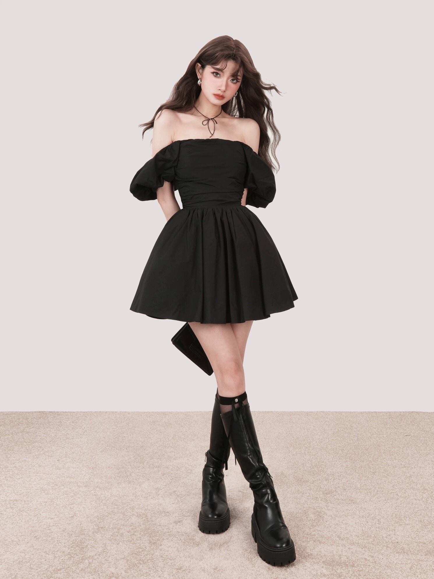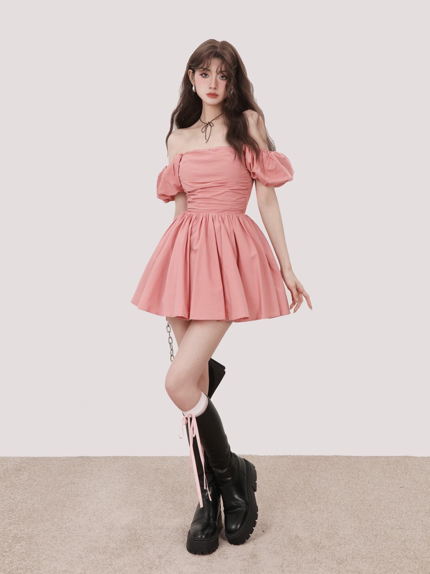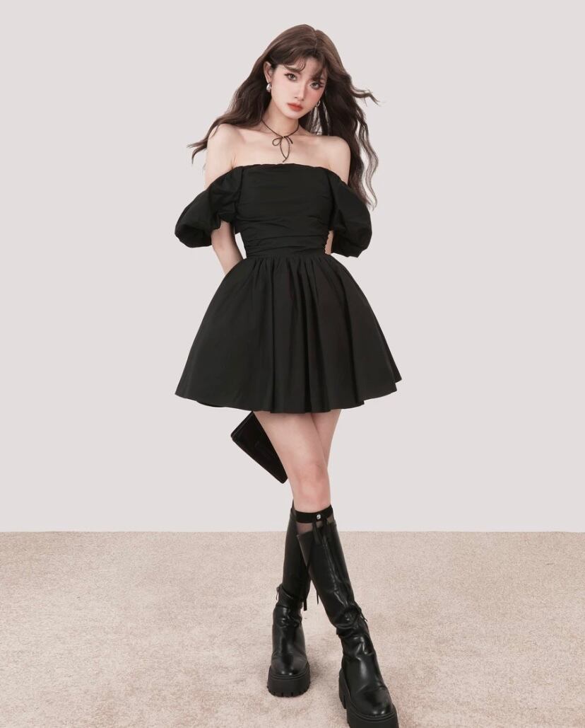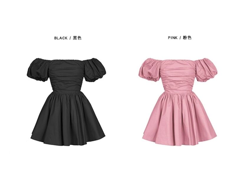 オフショルダー 黒 ピンク ワンピース ブラウス シンプル
