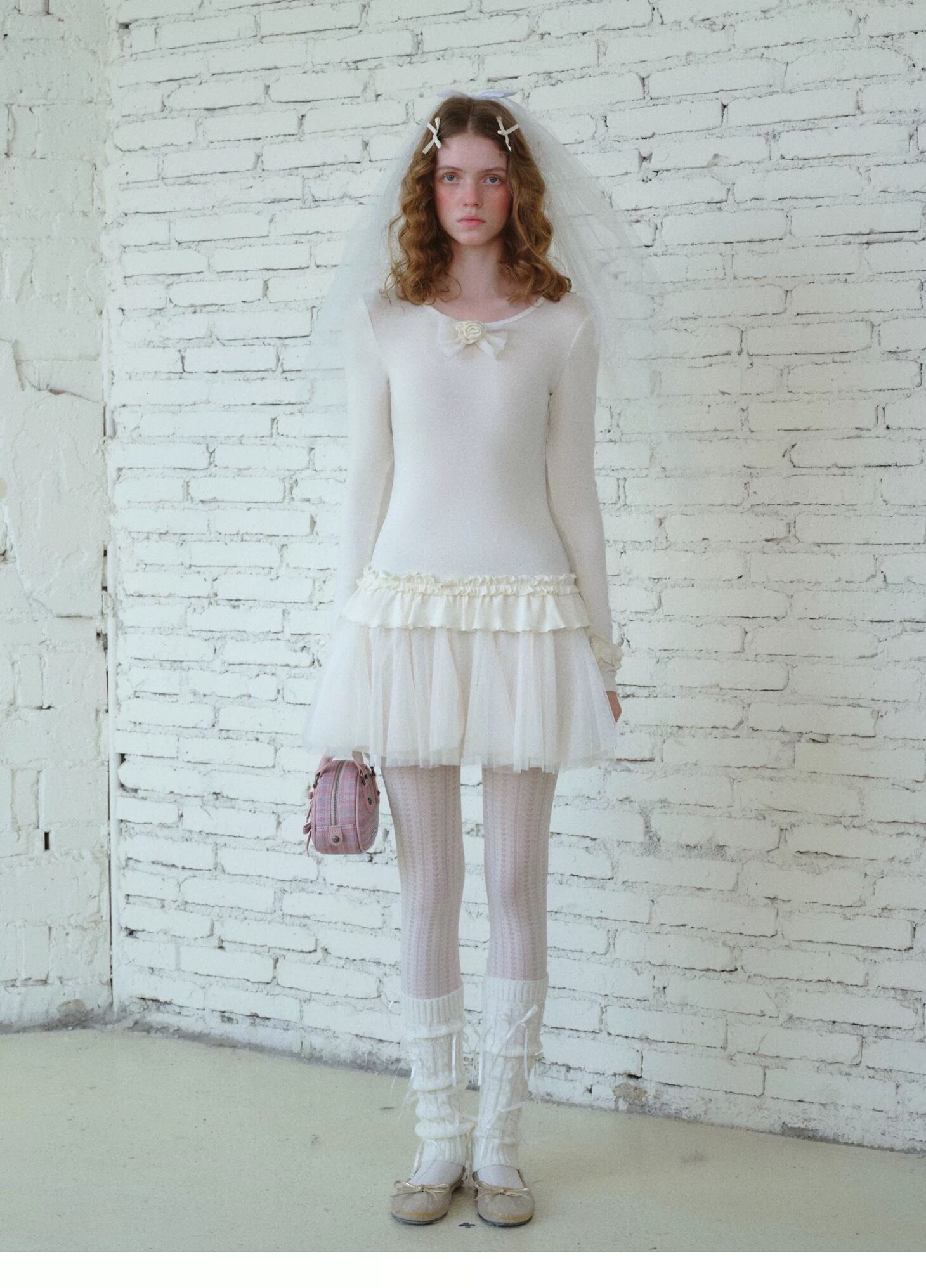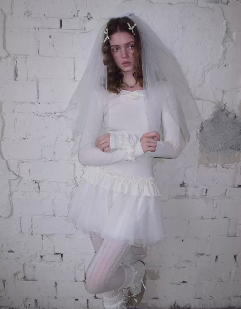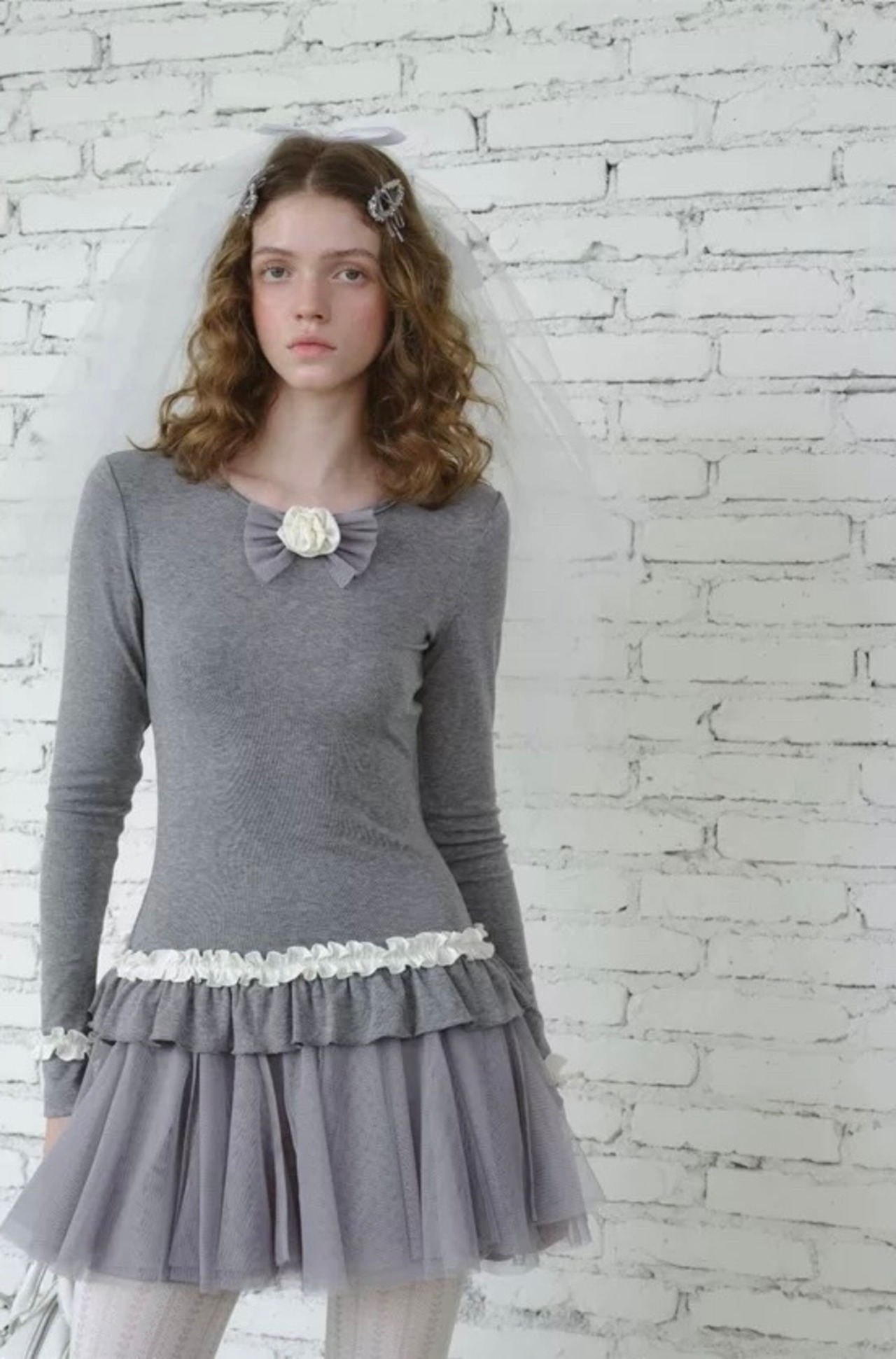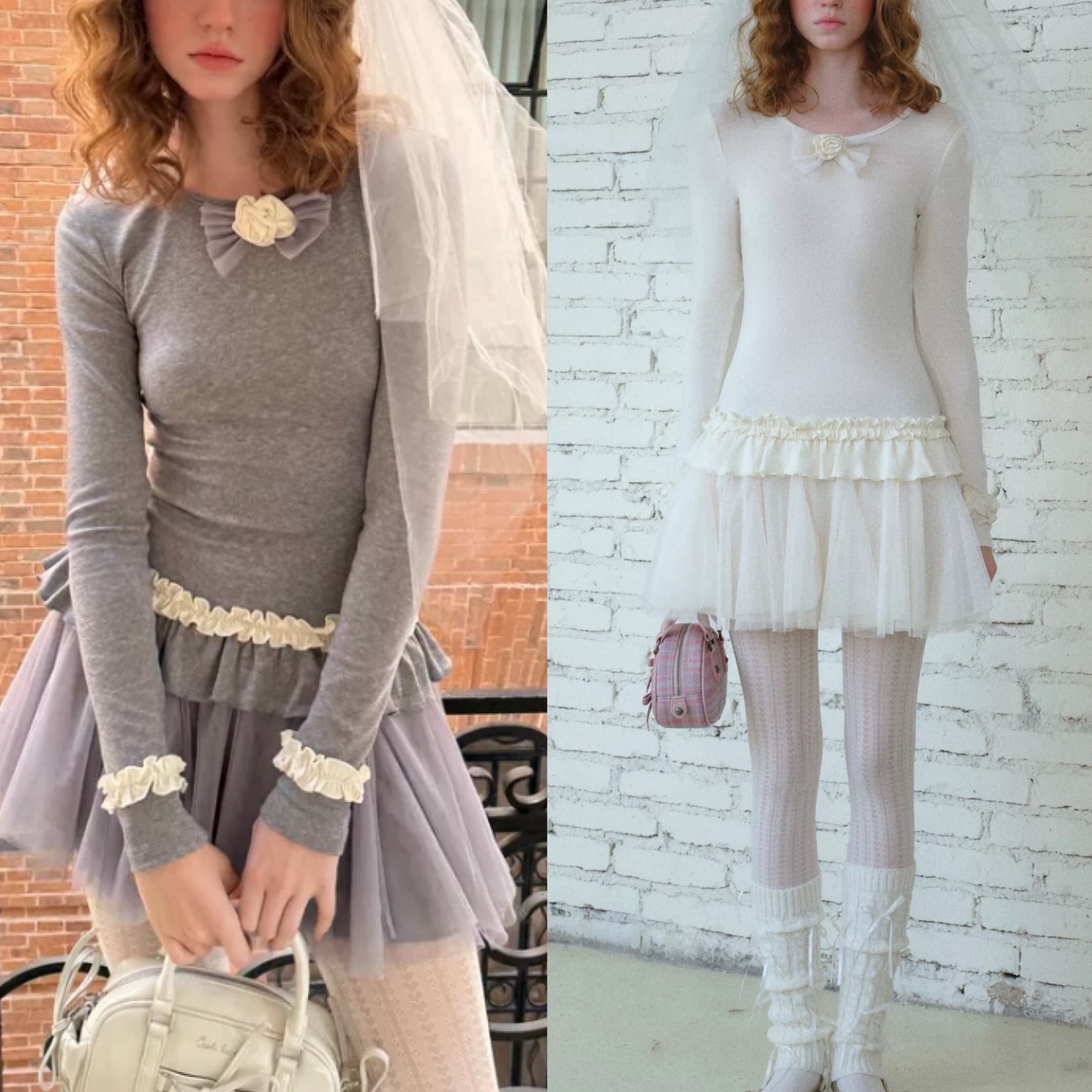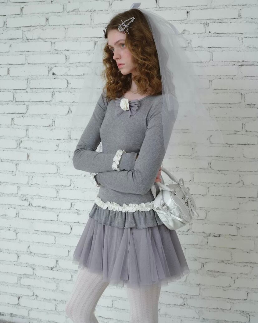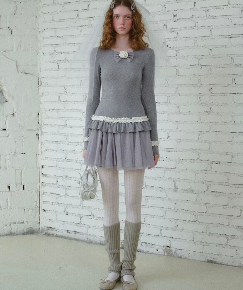 白 可愛い ガーリー フリル ワンピース グレー