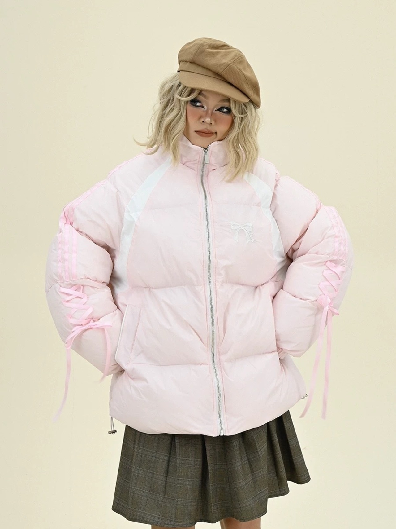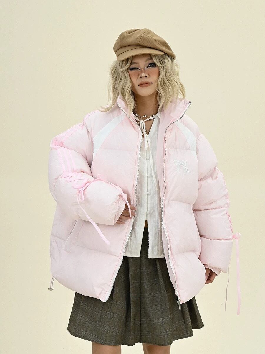 コート ダウン 黒 ピンク リボン 可愛い