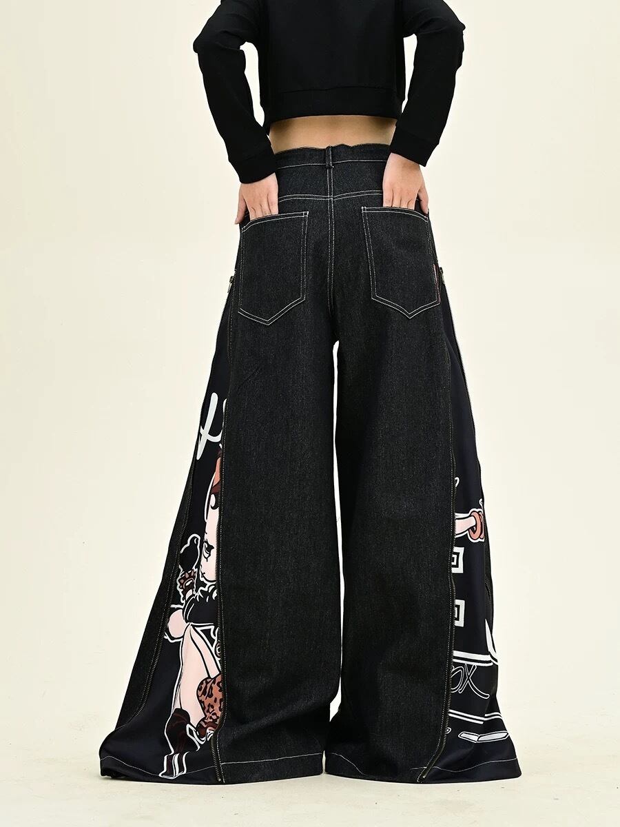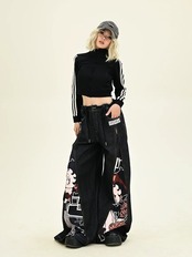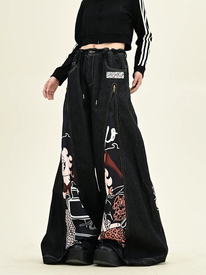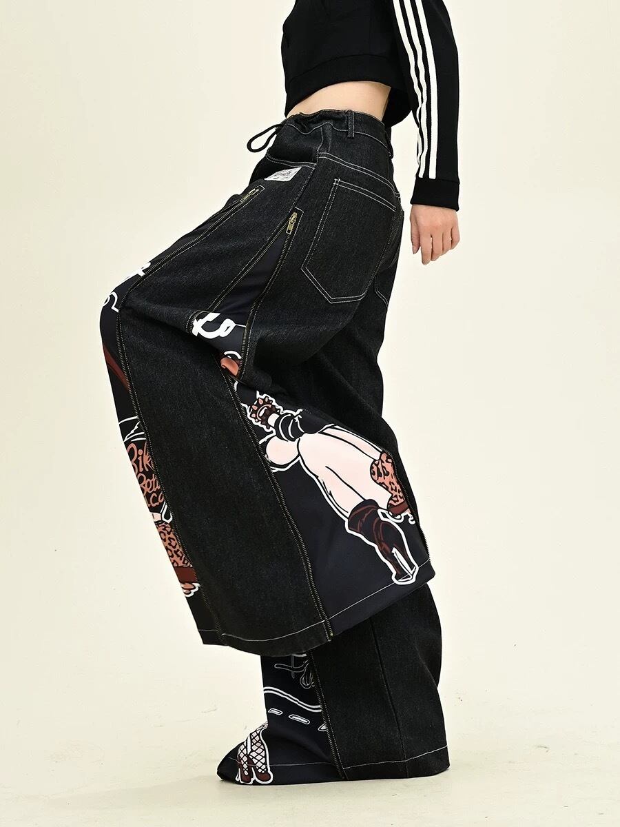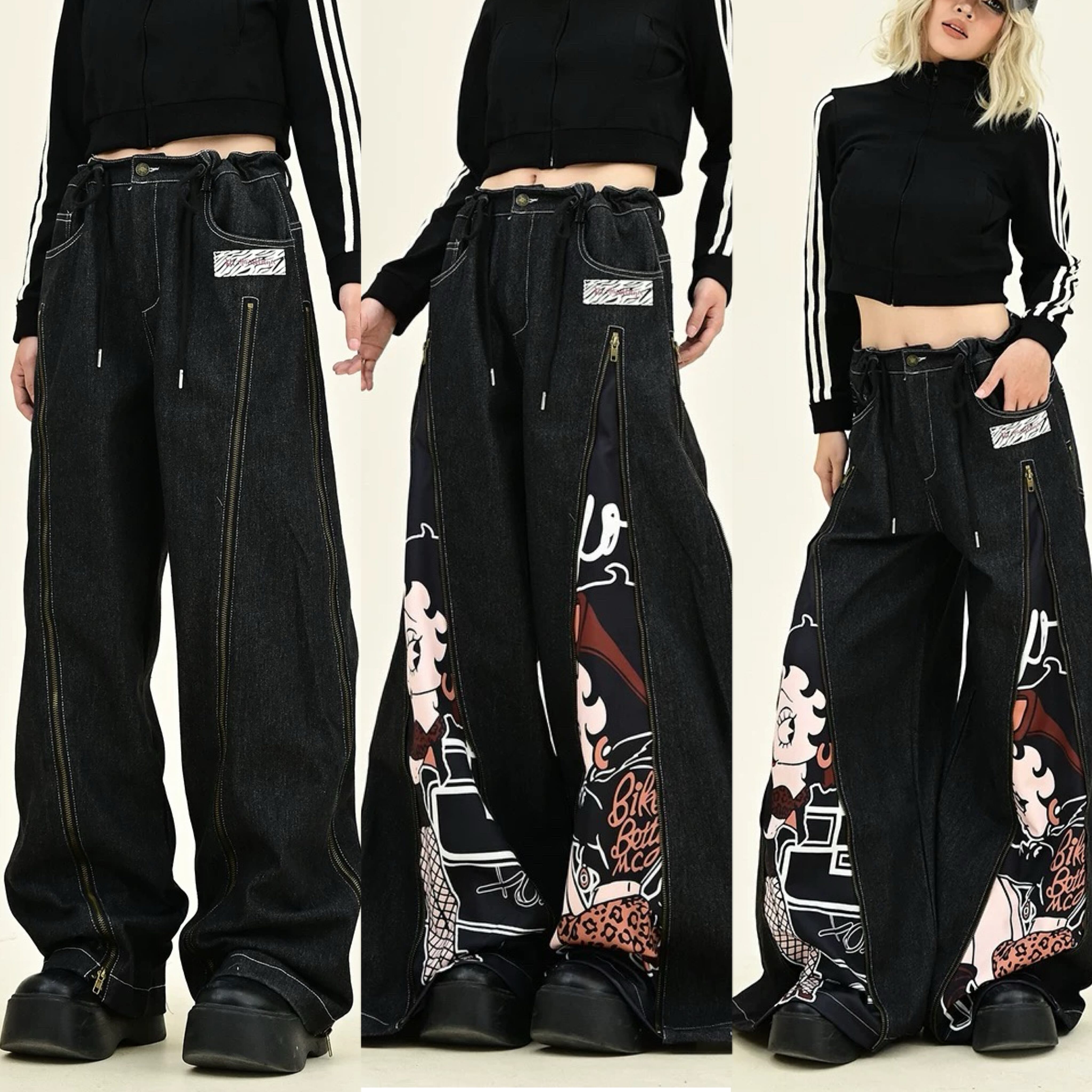【2way】ボトムス パンツ 太め 柄 チャック XL