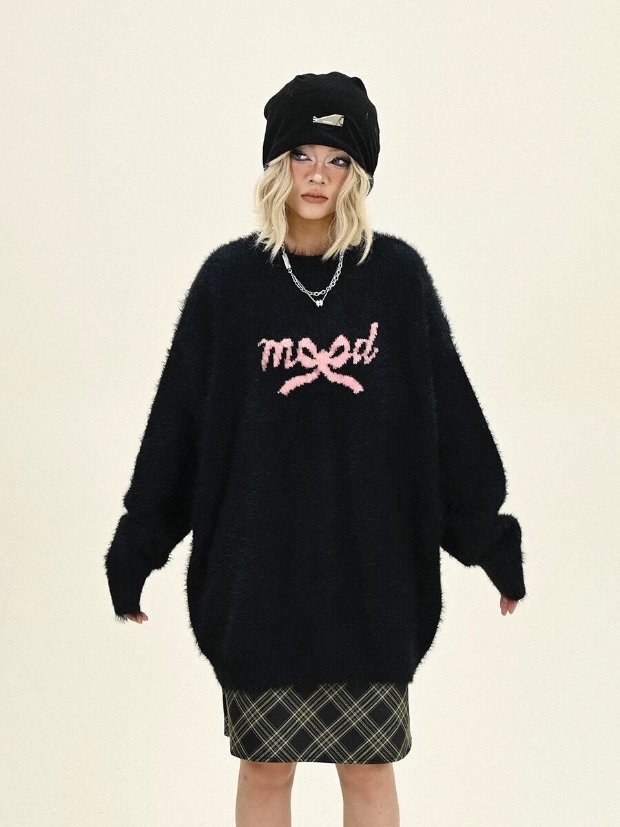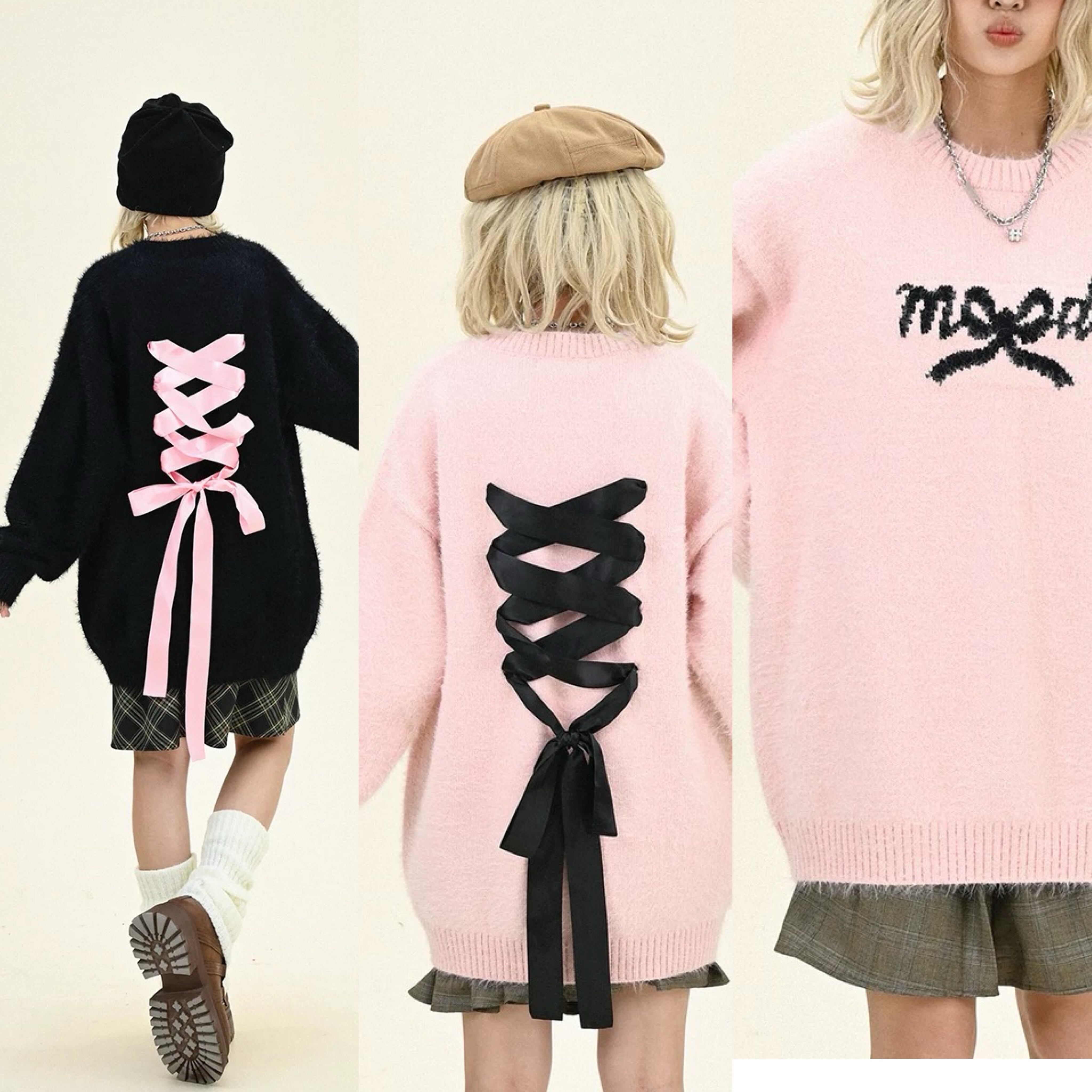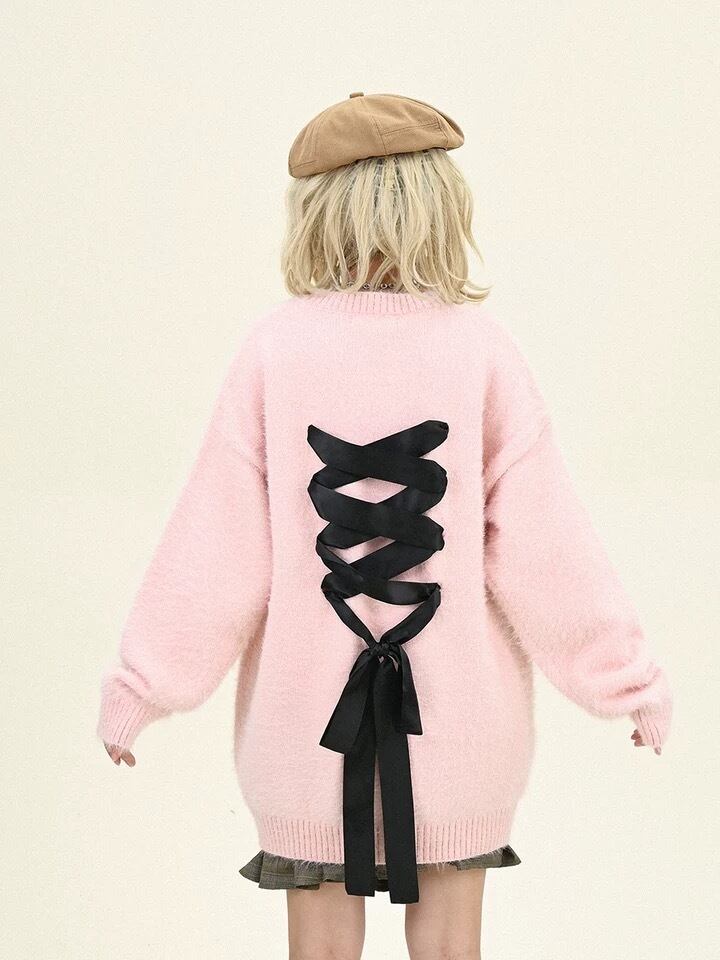 セーター 黒 ピンク ワンピース リボン カーディガン