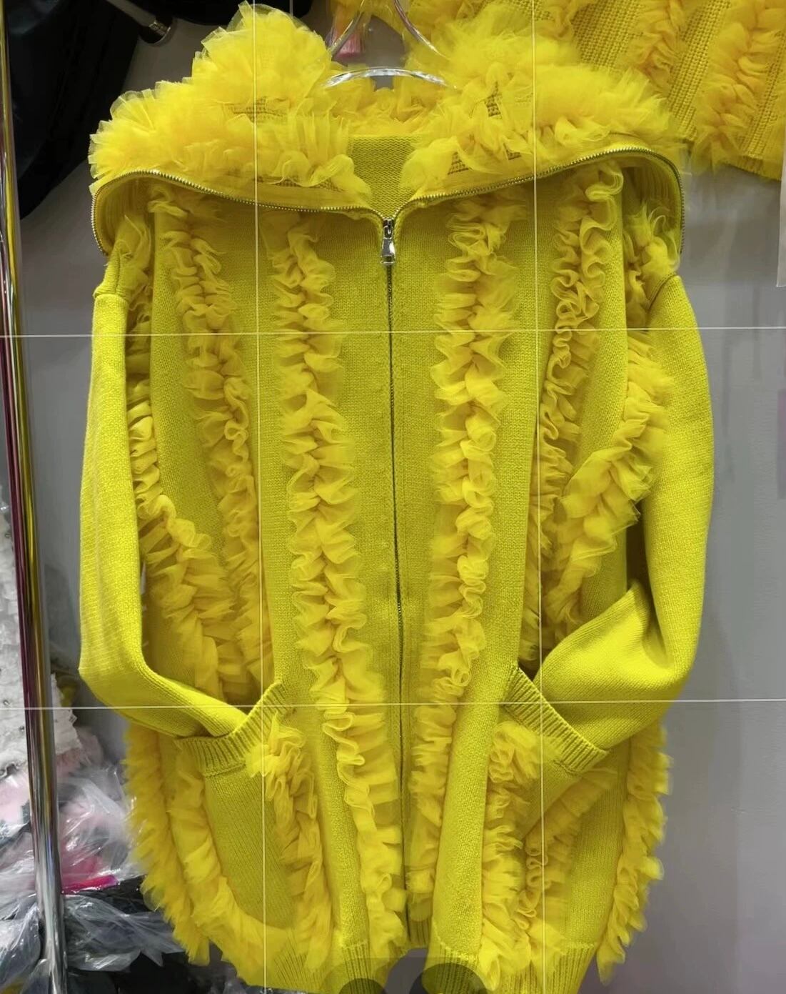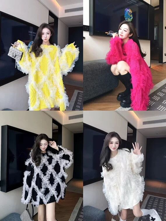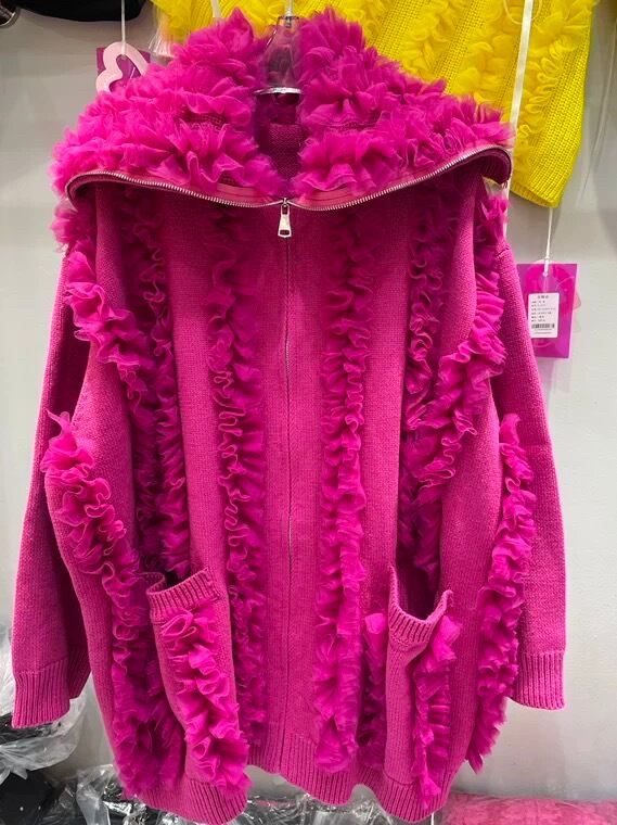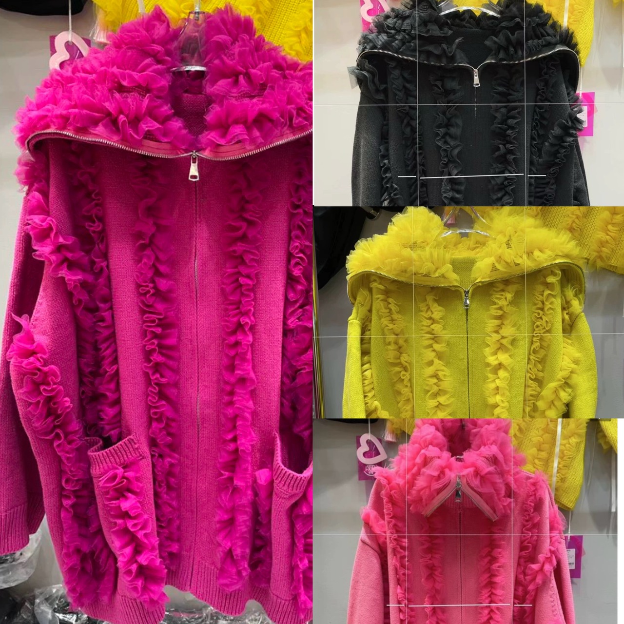 カーディガン ハイネック ピンク セーター 黄色 黒 白