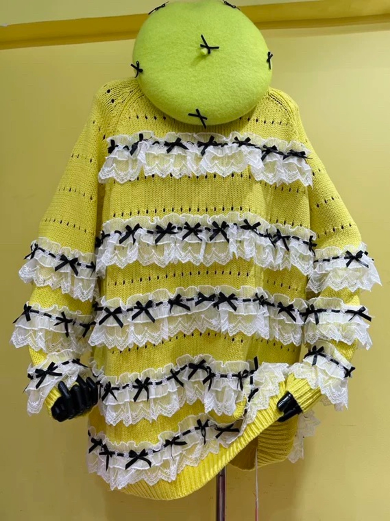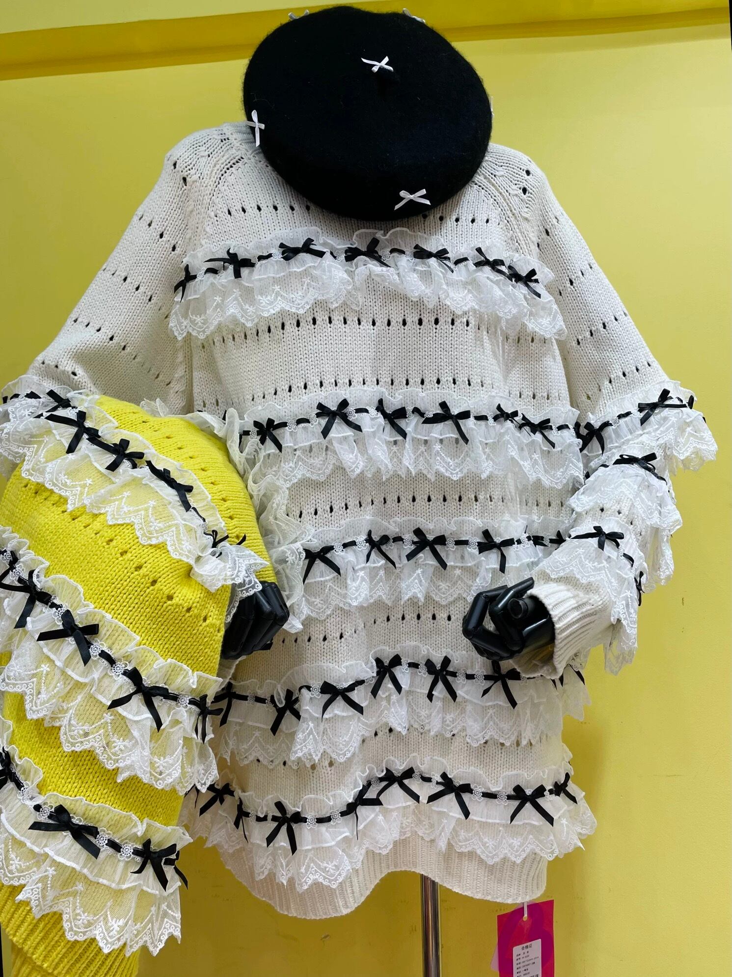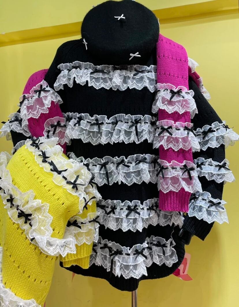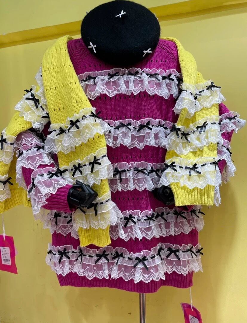 リボン セーター ワンピース 黄色 ピンク 黒 紫
