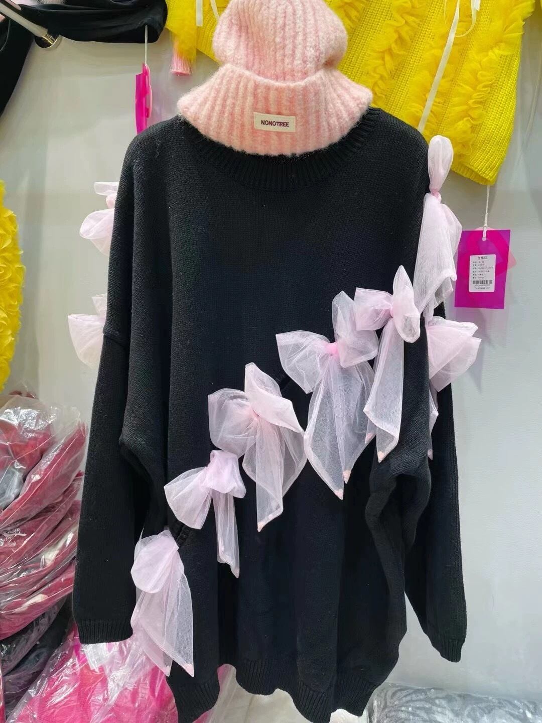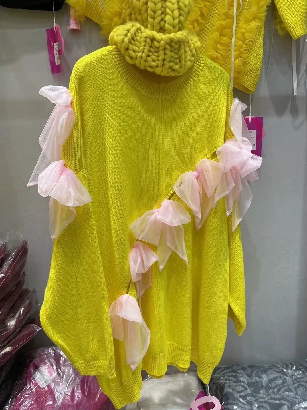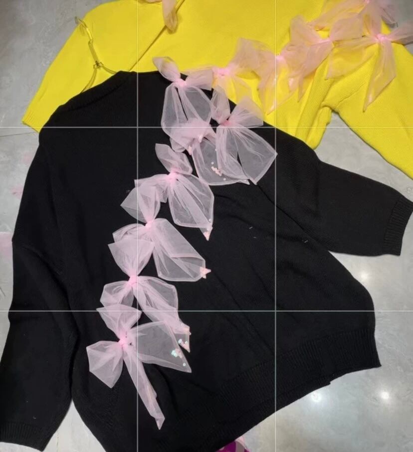 ブラウス カジュアル Tシャツ 黄色 リボン 黒