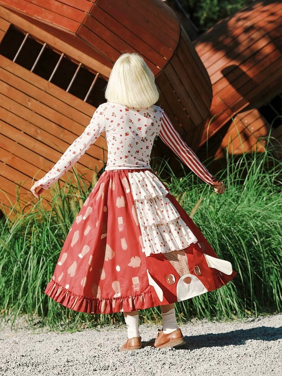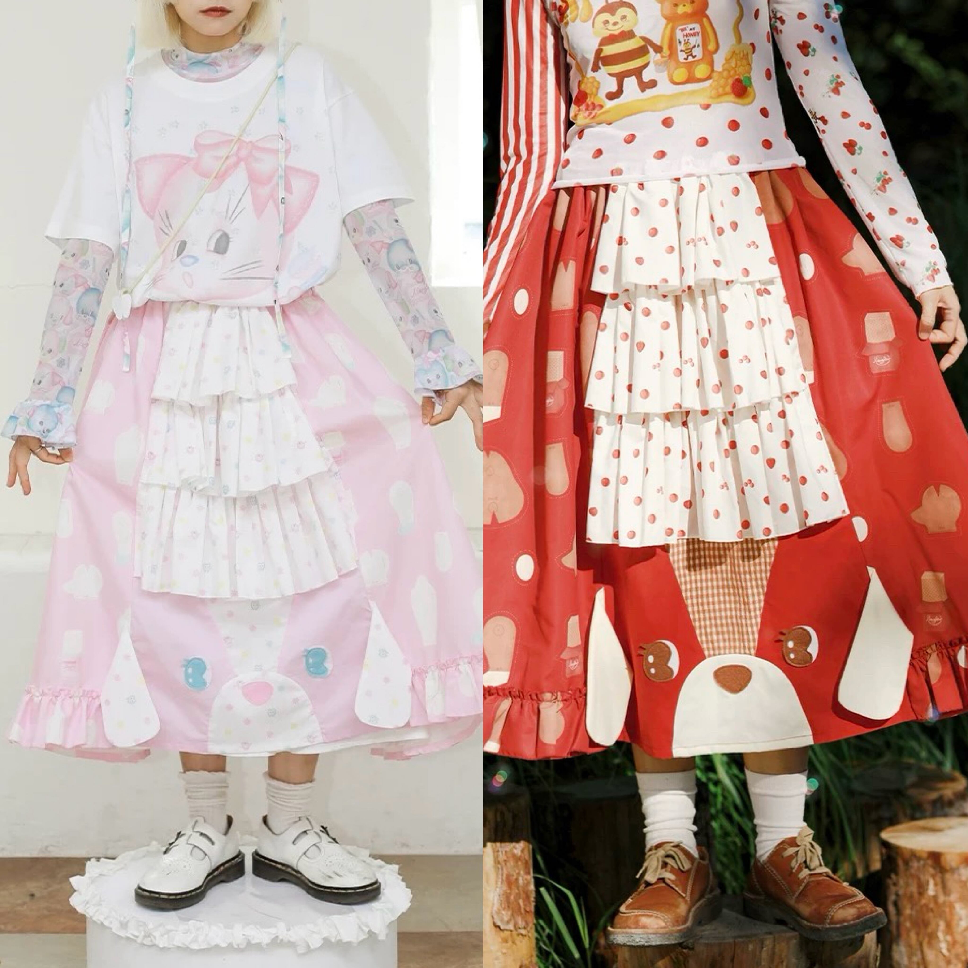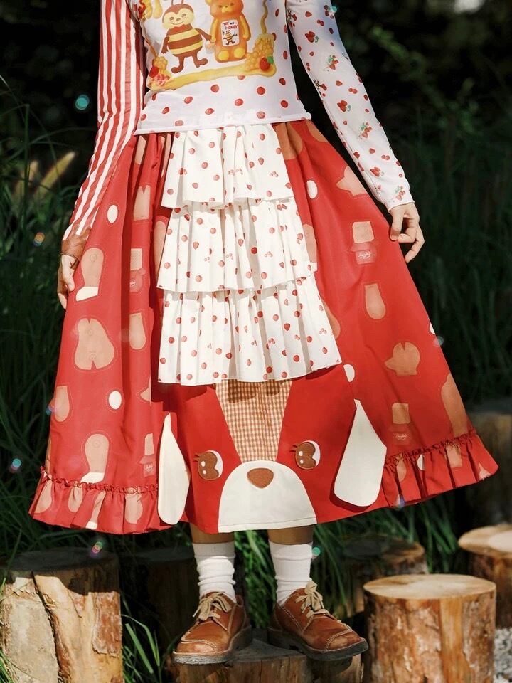 赤 ピンク ガーリー 犬 可愛い ボトムス スカート
