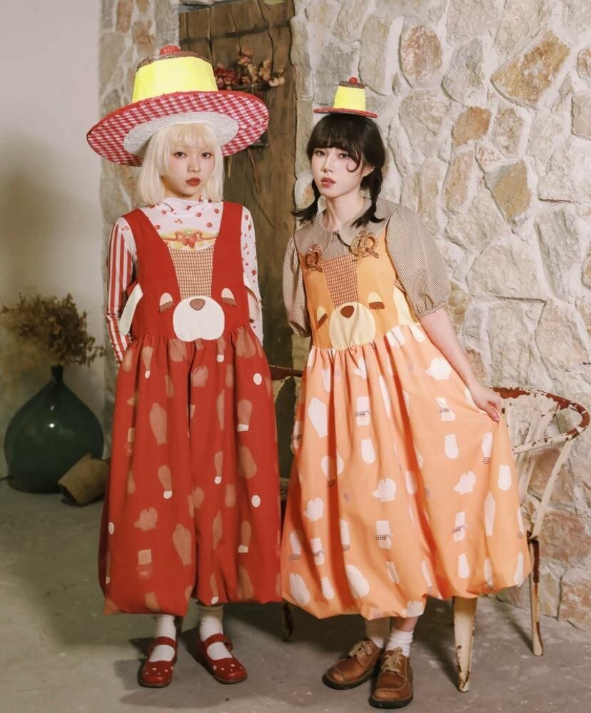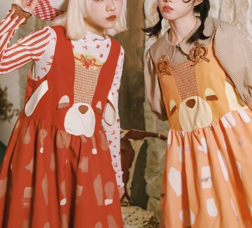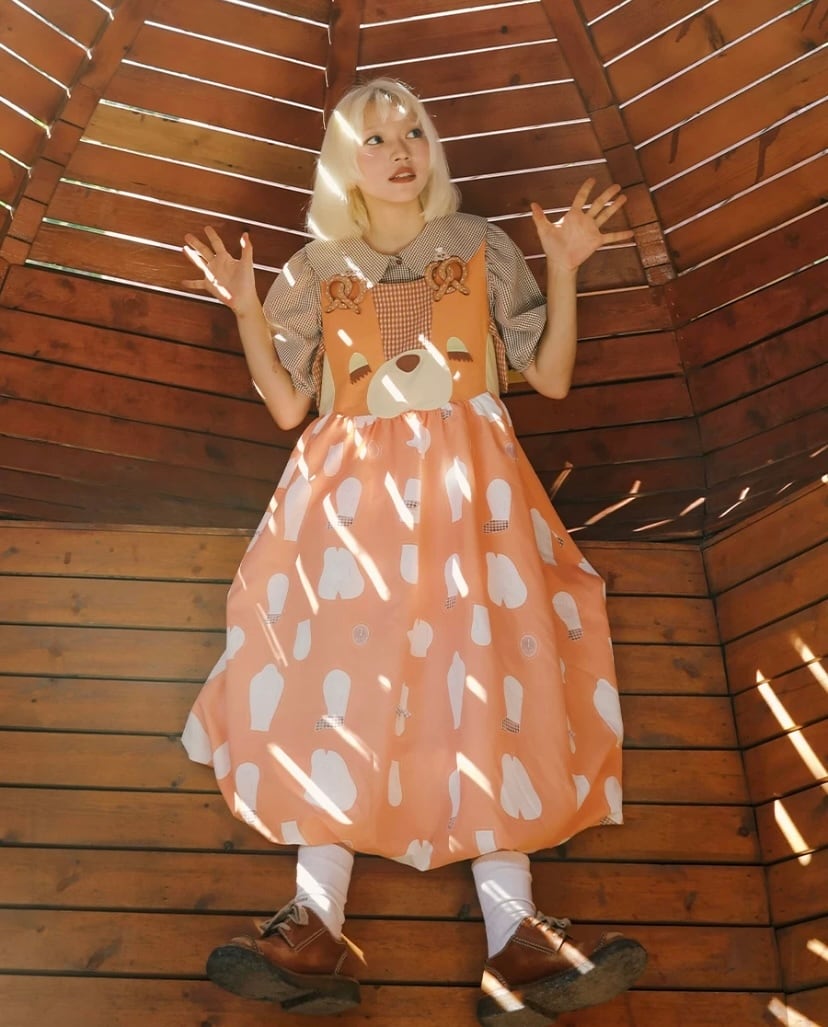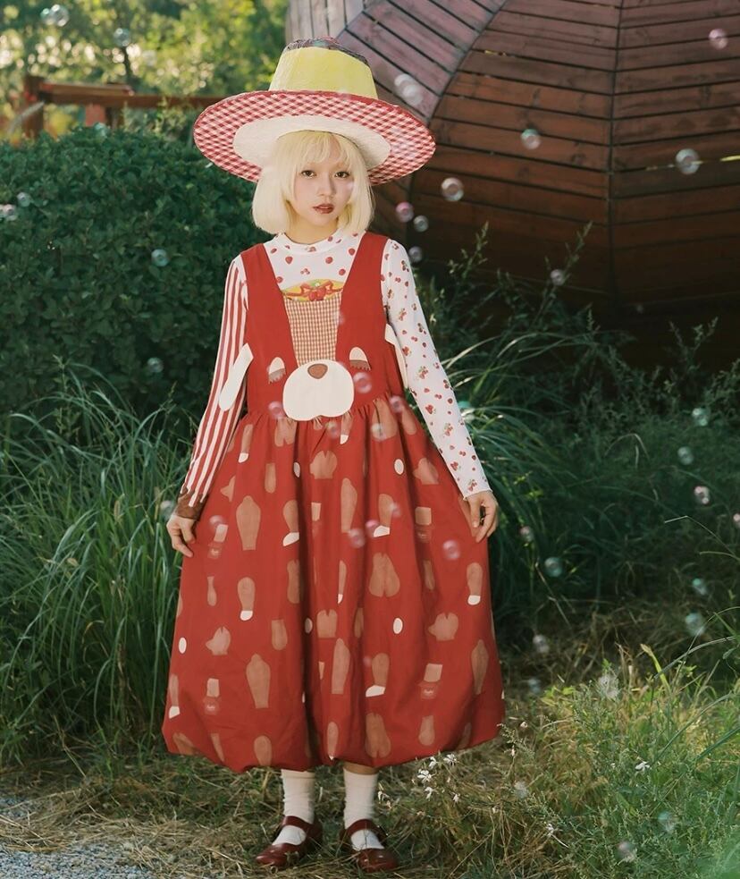 オレンジ アニマル 茶色 ゆったり ワンピース バルーン スカート 可愛い