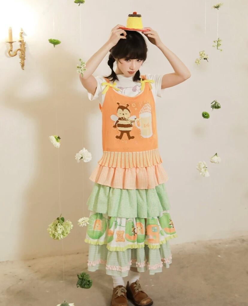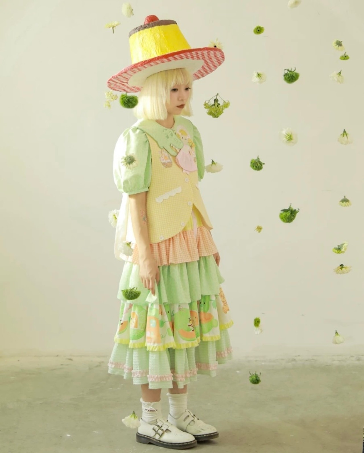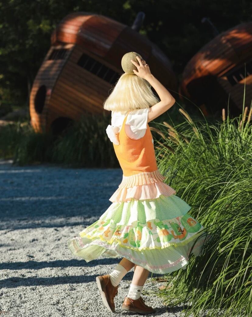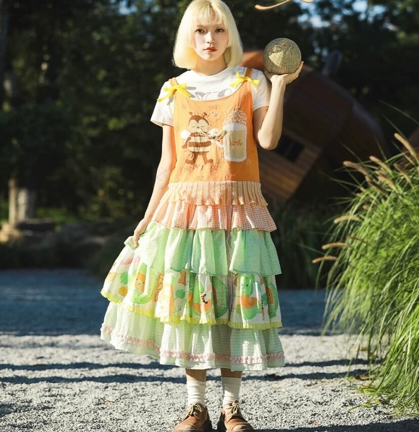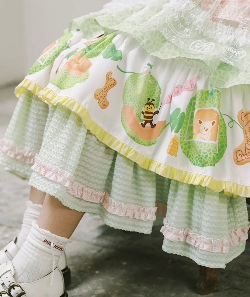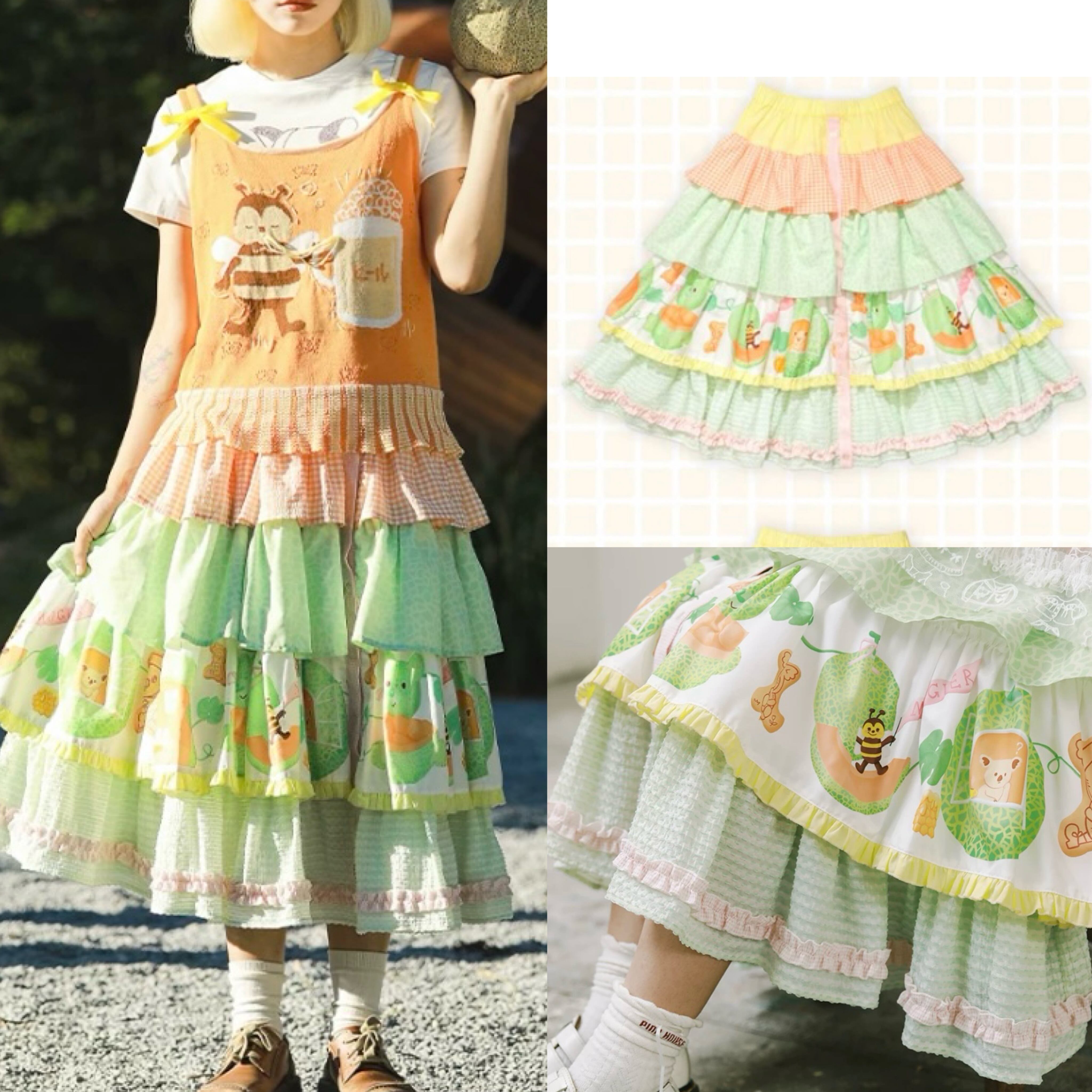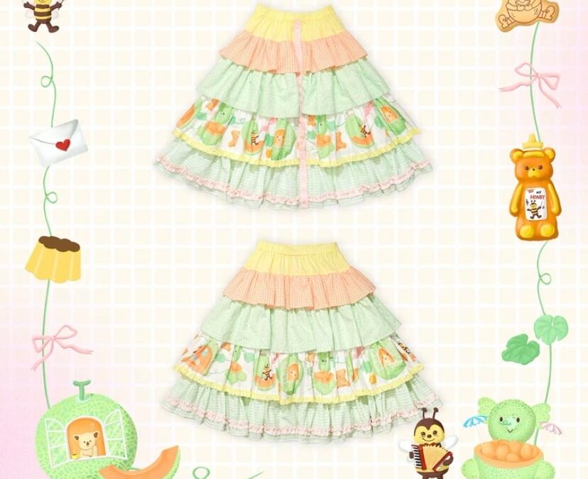 緑 オレンジ フリル ボトムス スカート フルーツ アニマル メロン