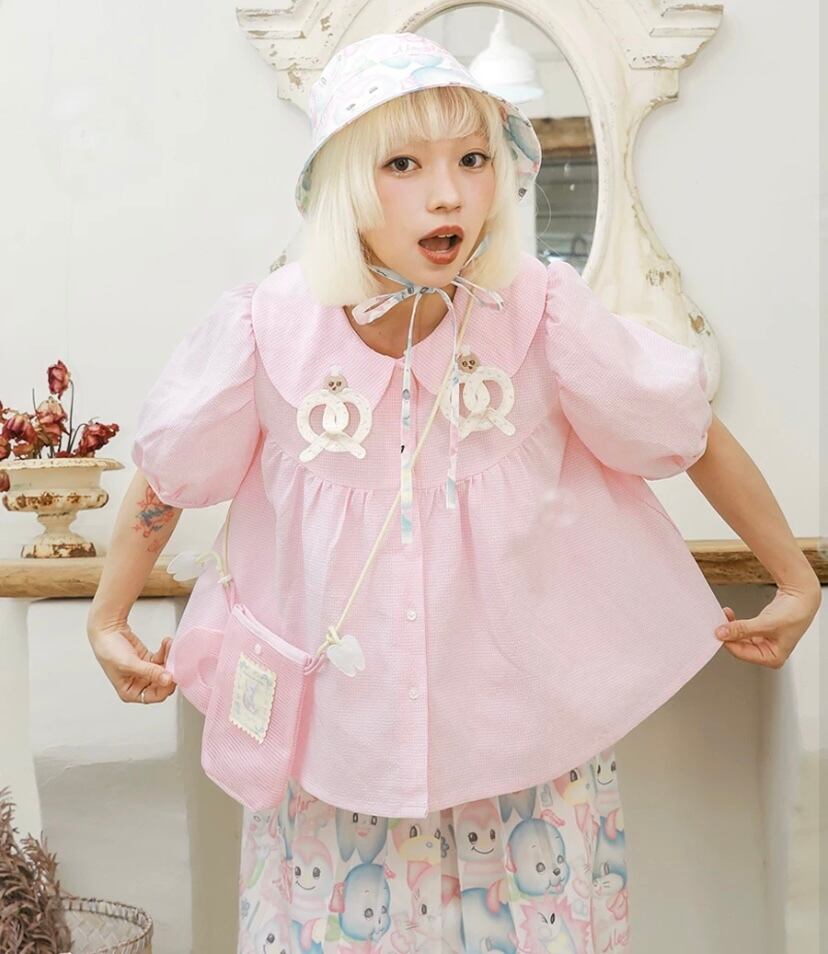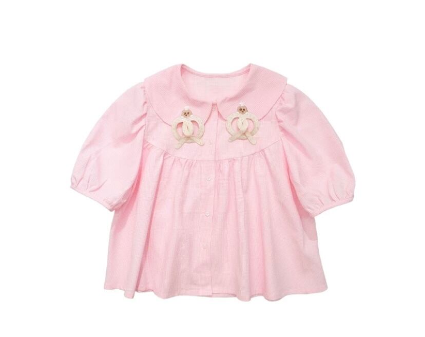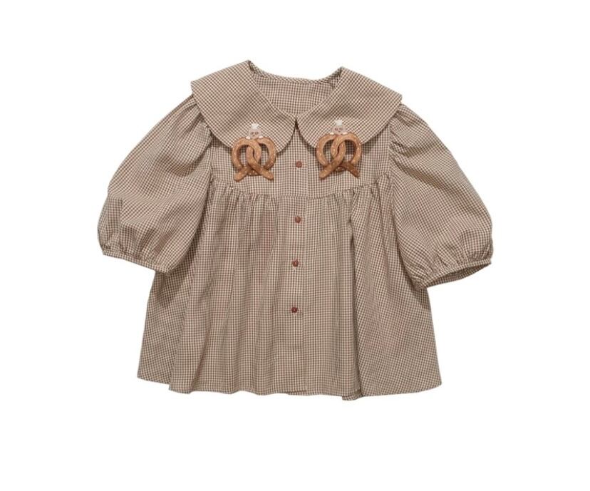 【長袖・半袖】チェック 茶色 ピンク パン ブラウス シャツ