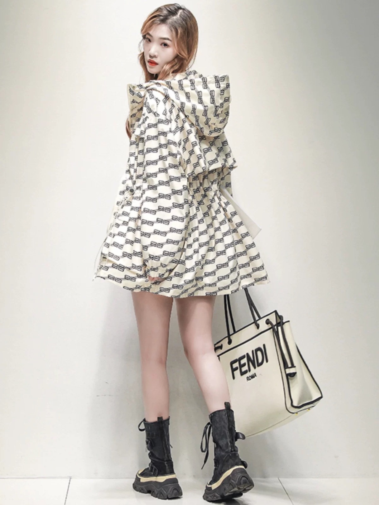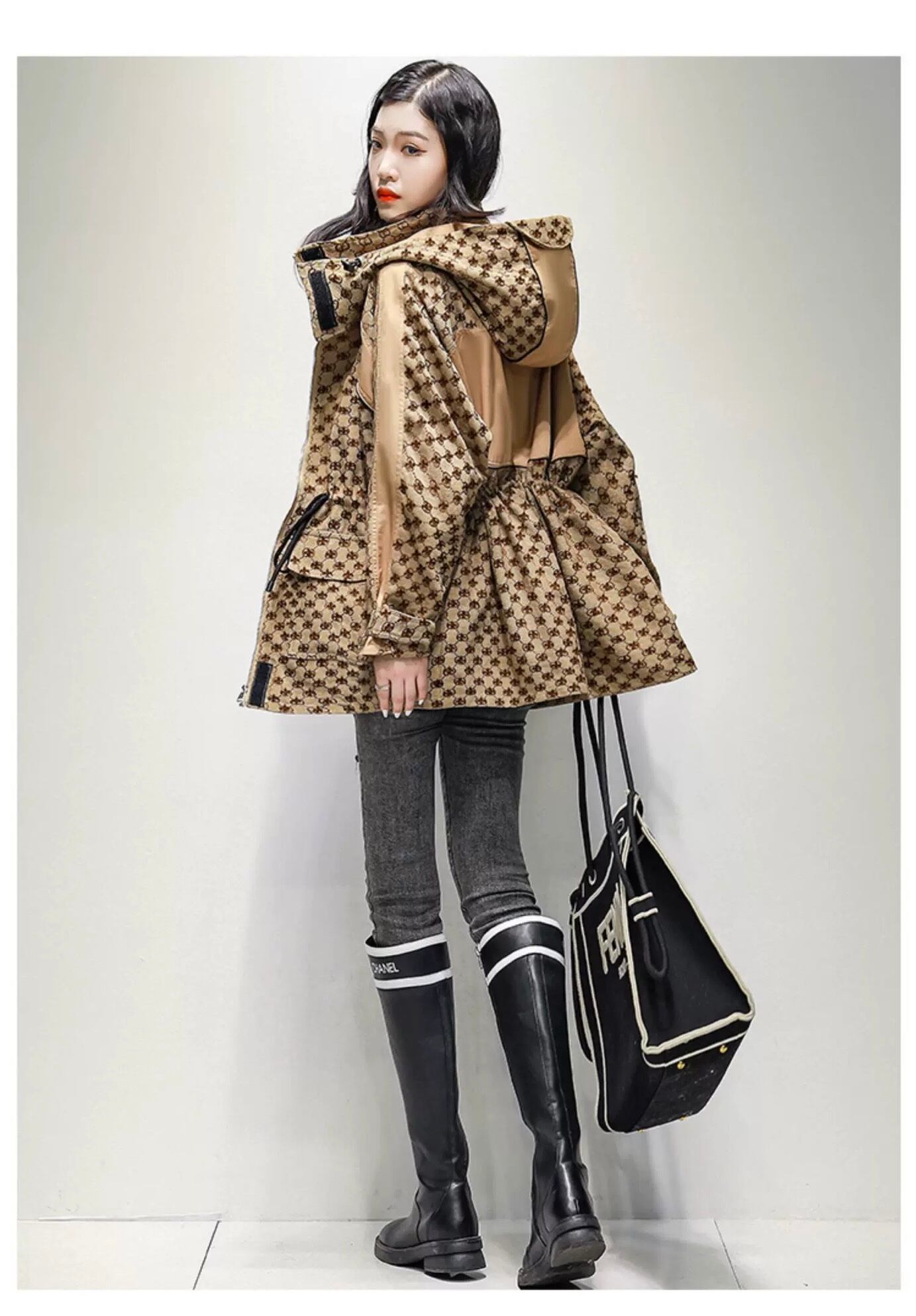 フード 緑 ベージュ 白 ピンク ワンピース コート XL