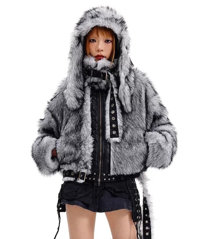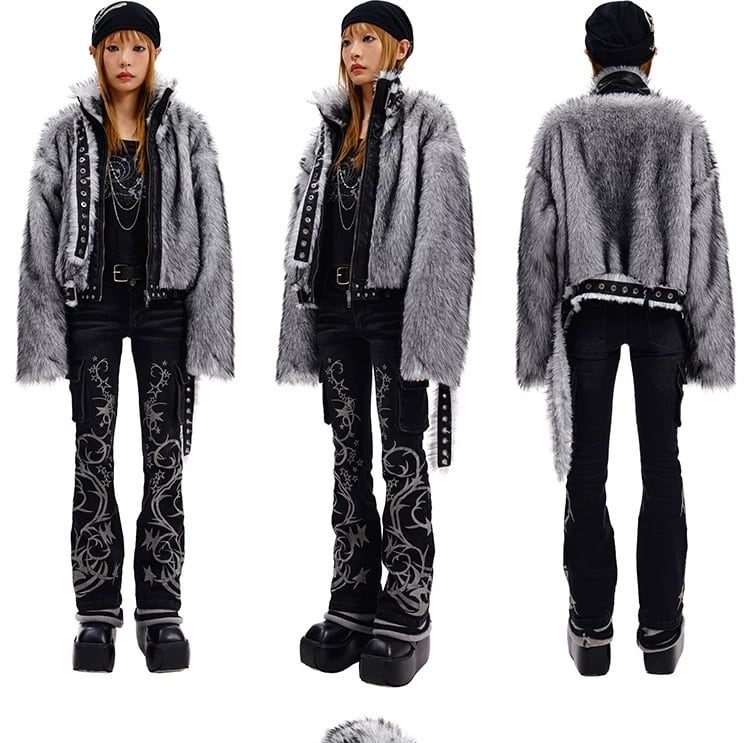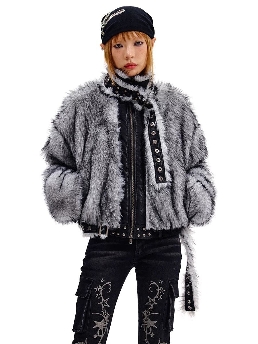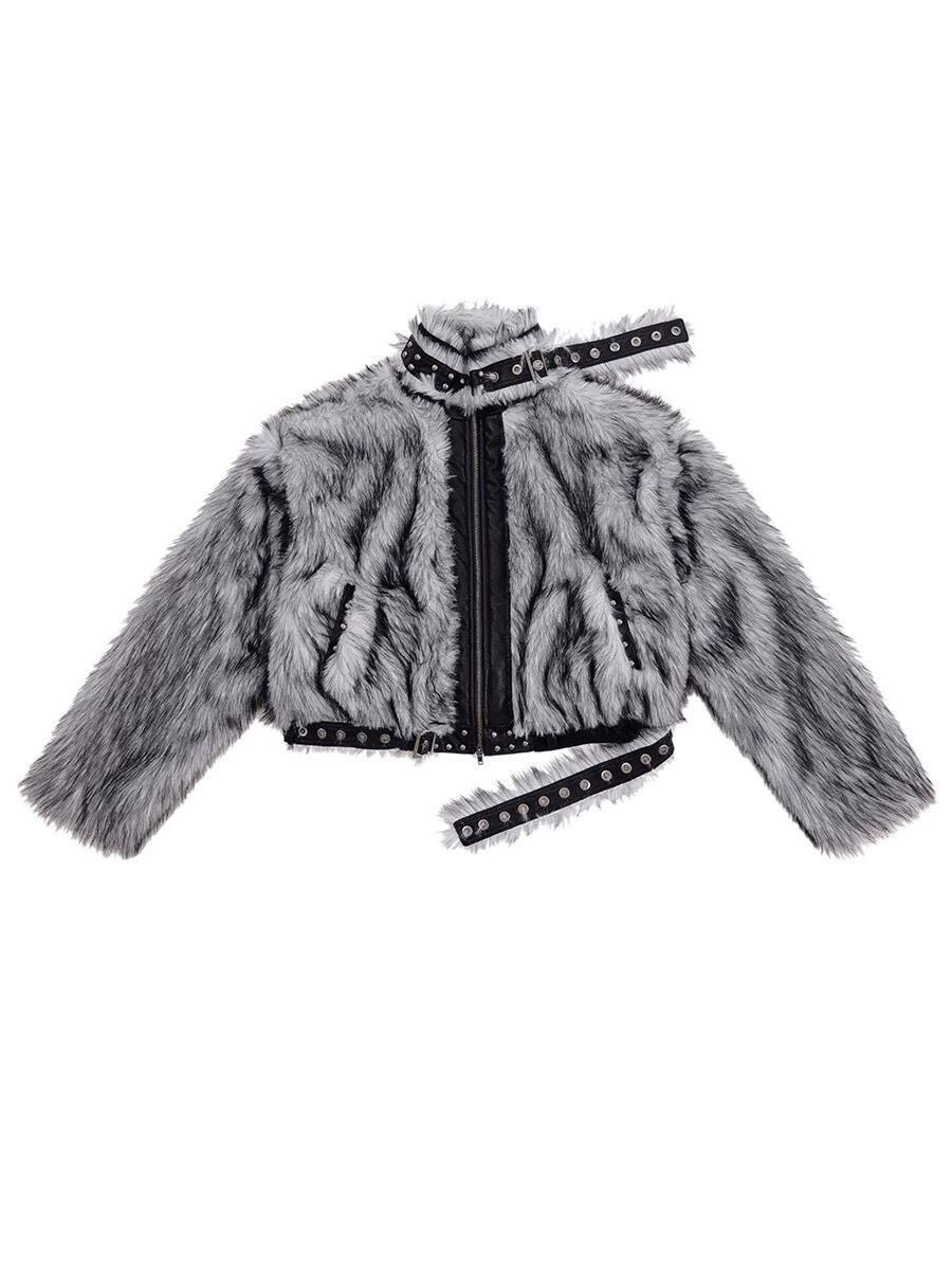 グレー ハイネック ファー ジャケット コート