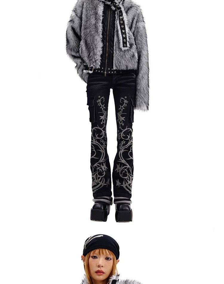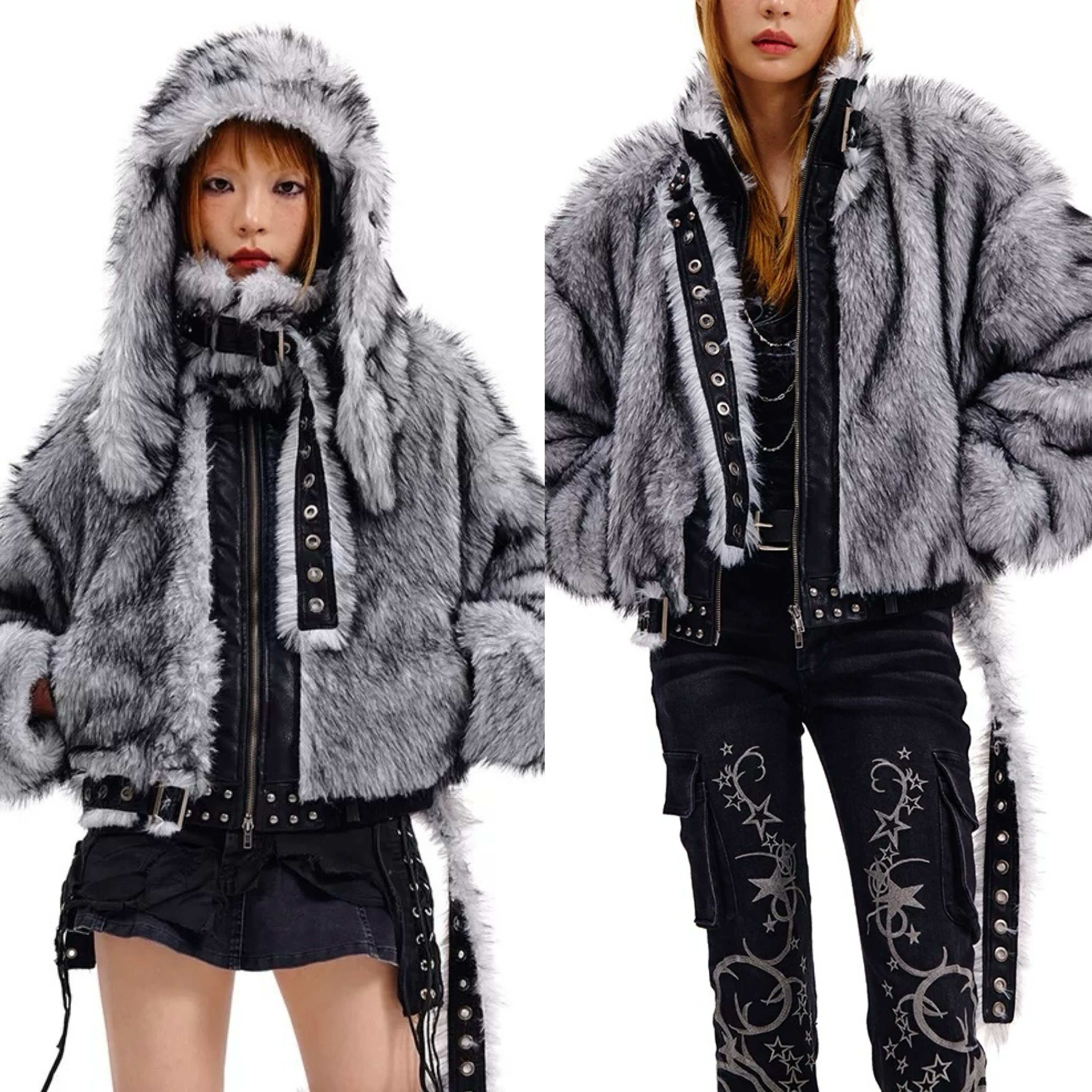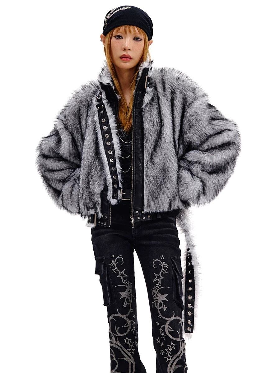 グレー ハイネック ファー ジャケット コート