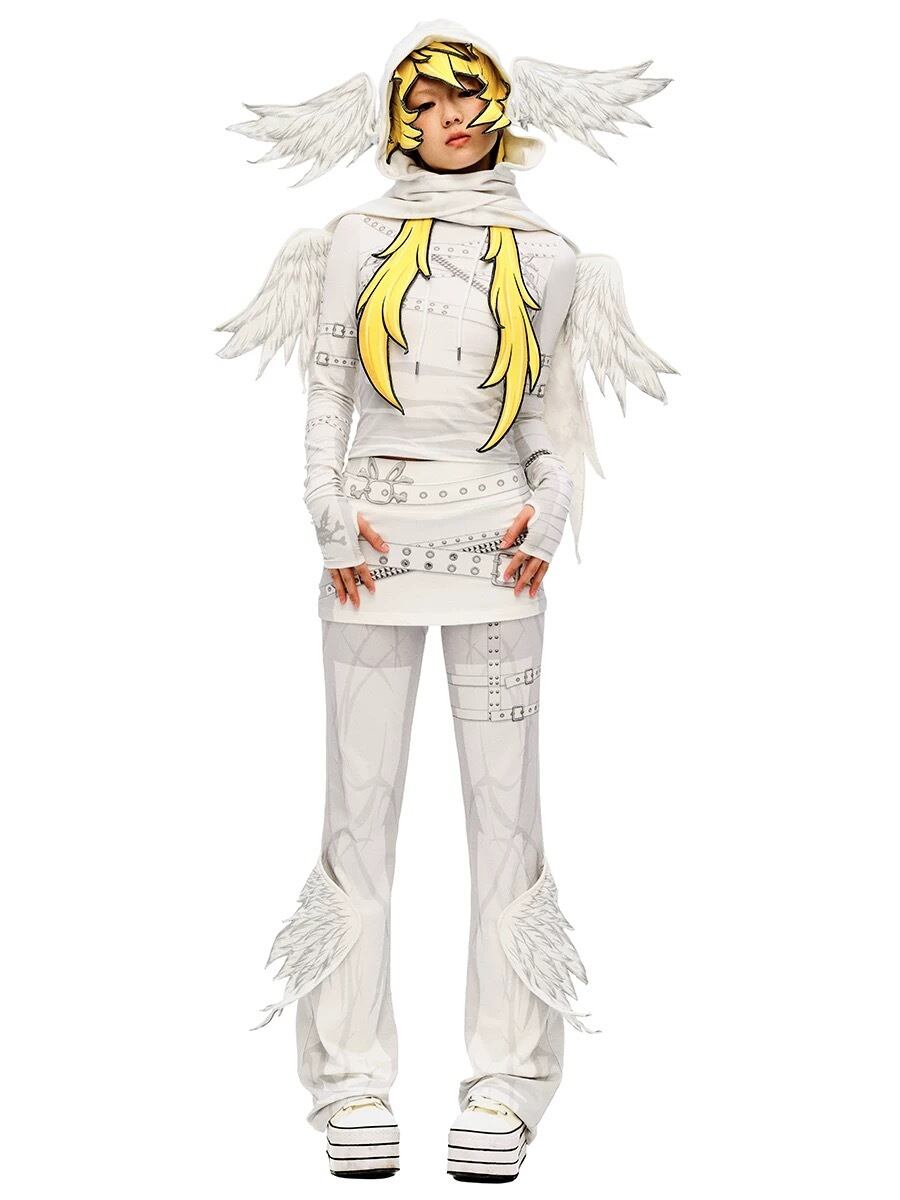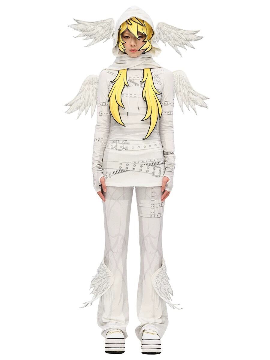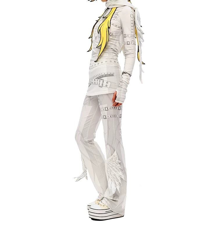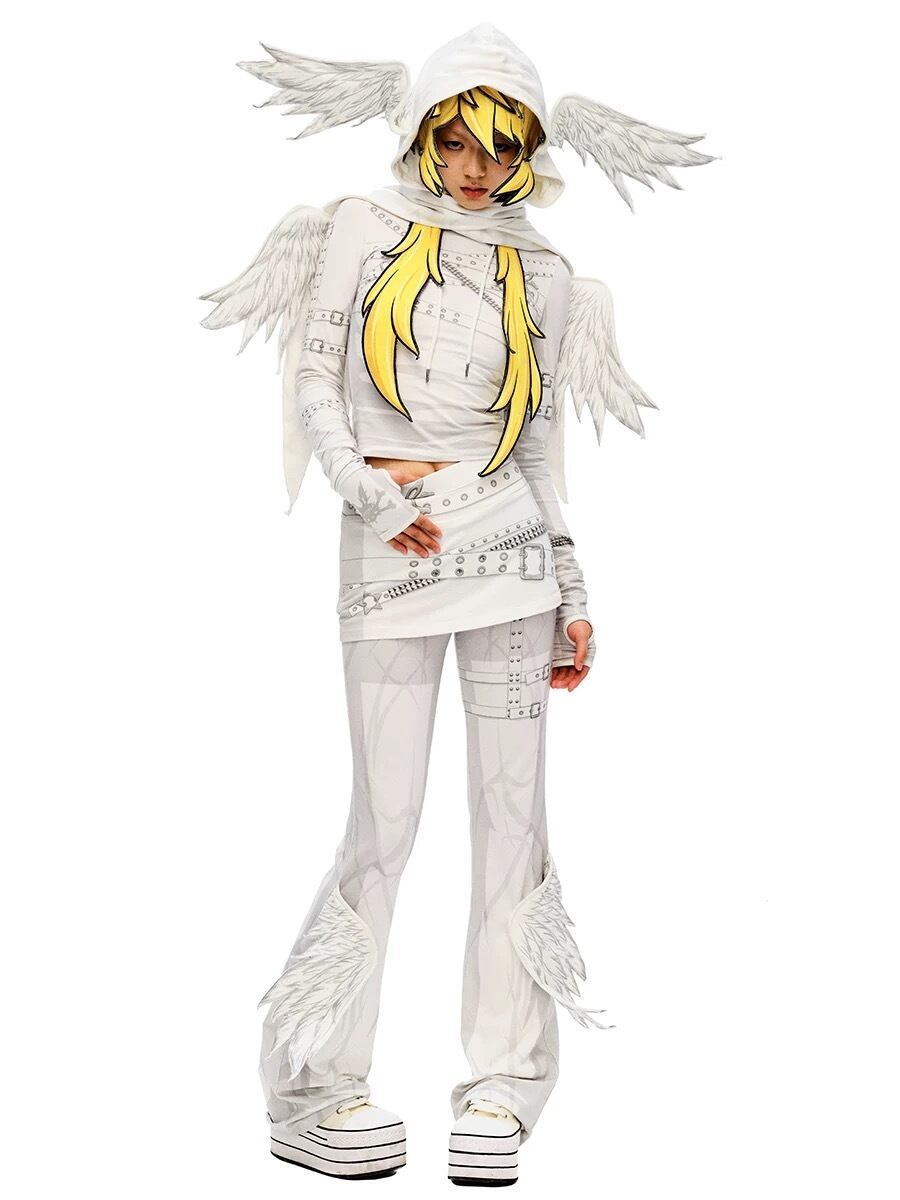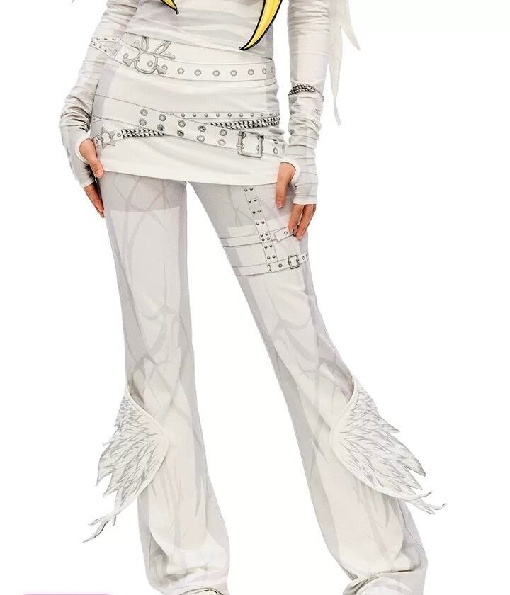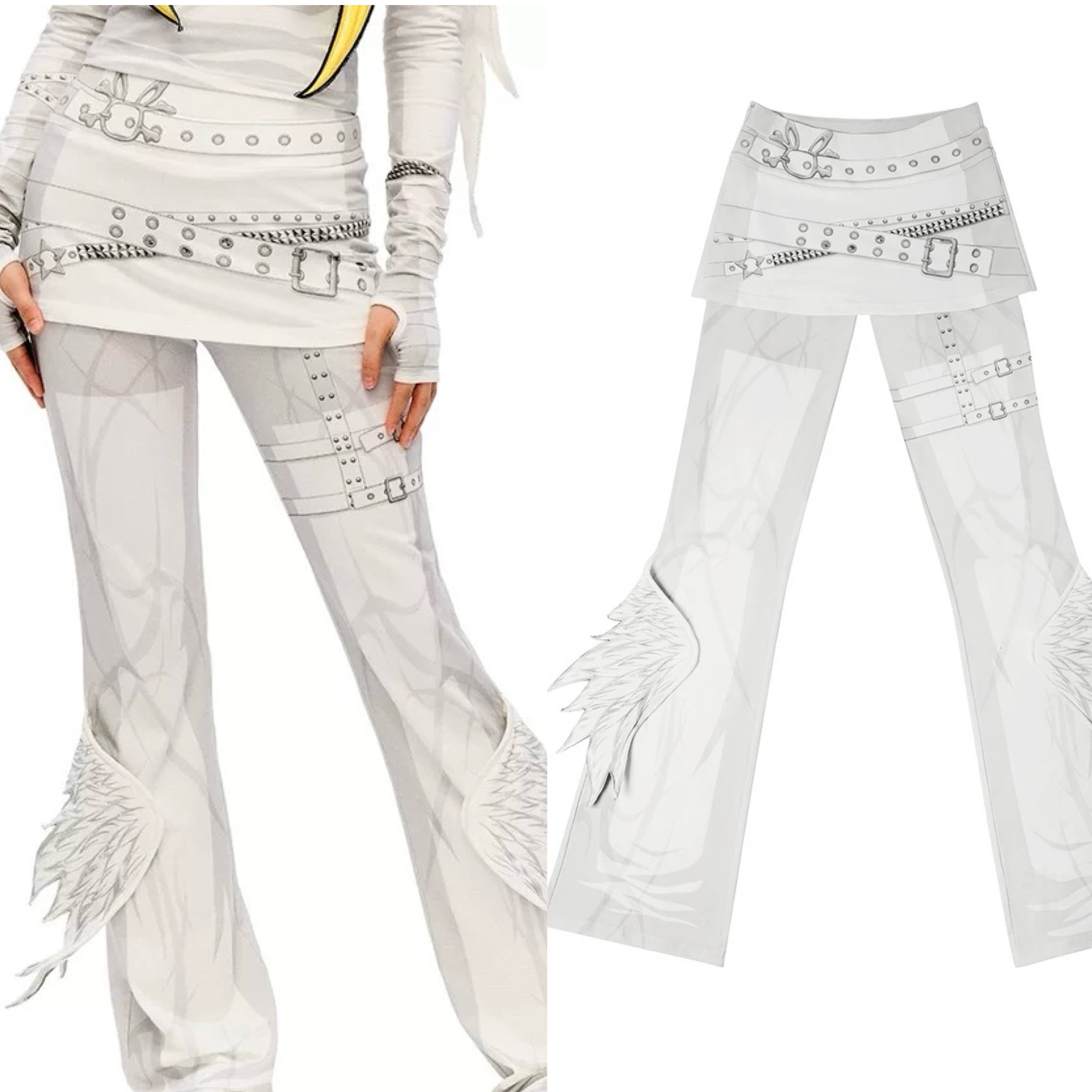 【パンツ】白 絵 だまし絵 アニメ コスプレ 白 羽根 パンツ ボトムス