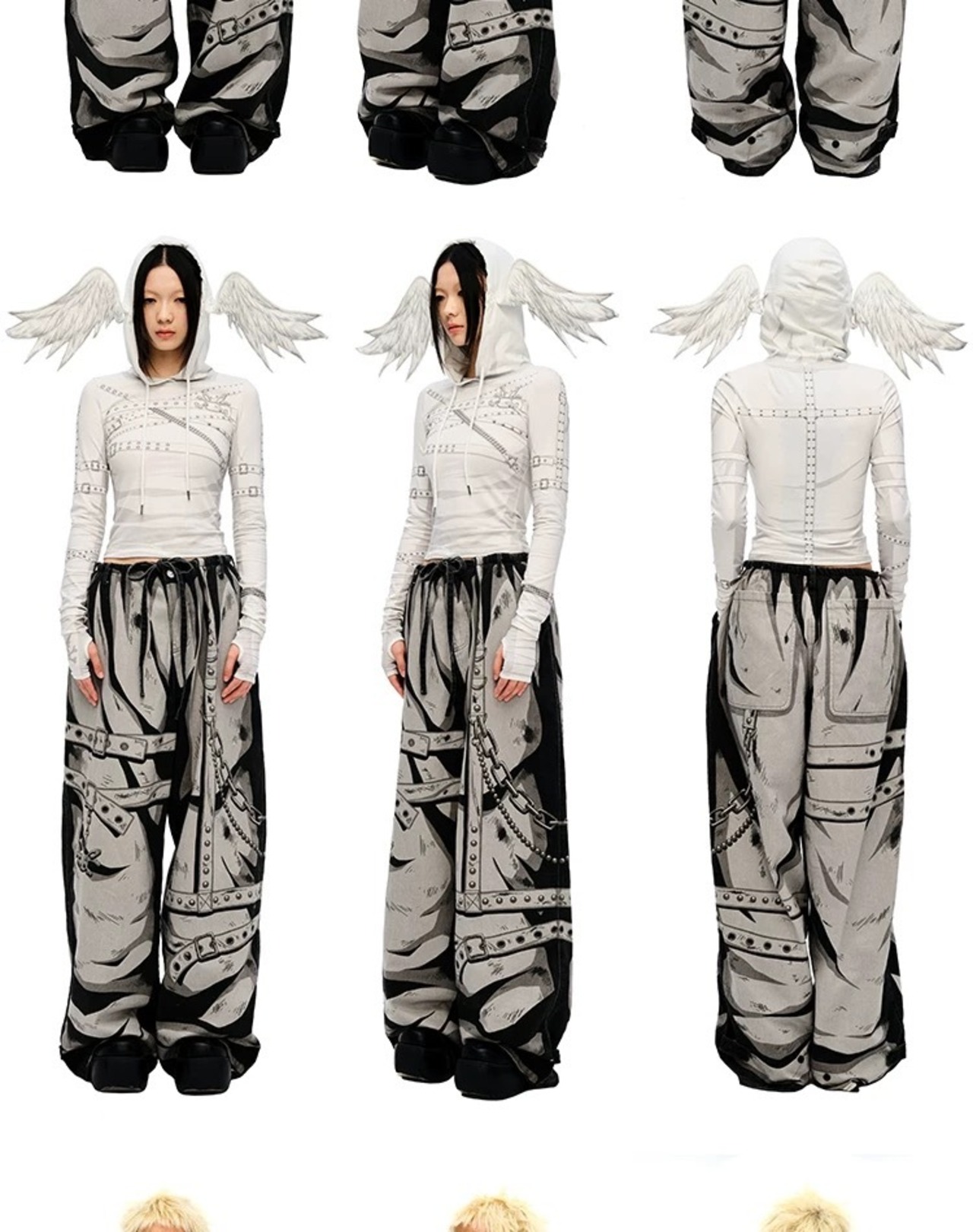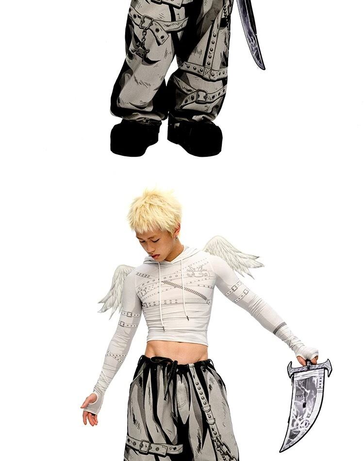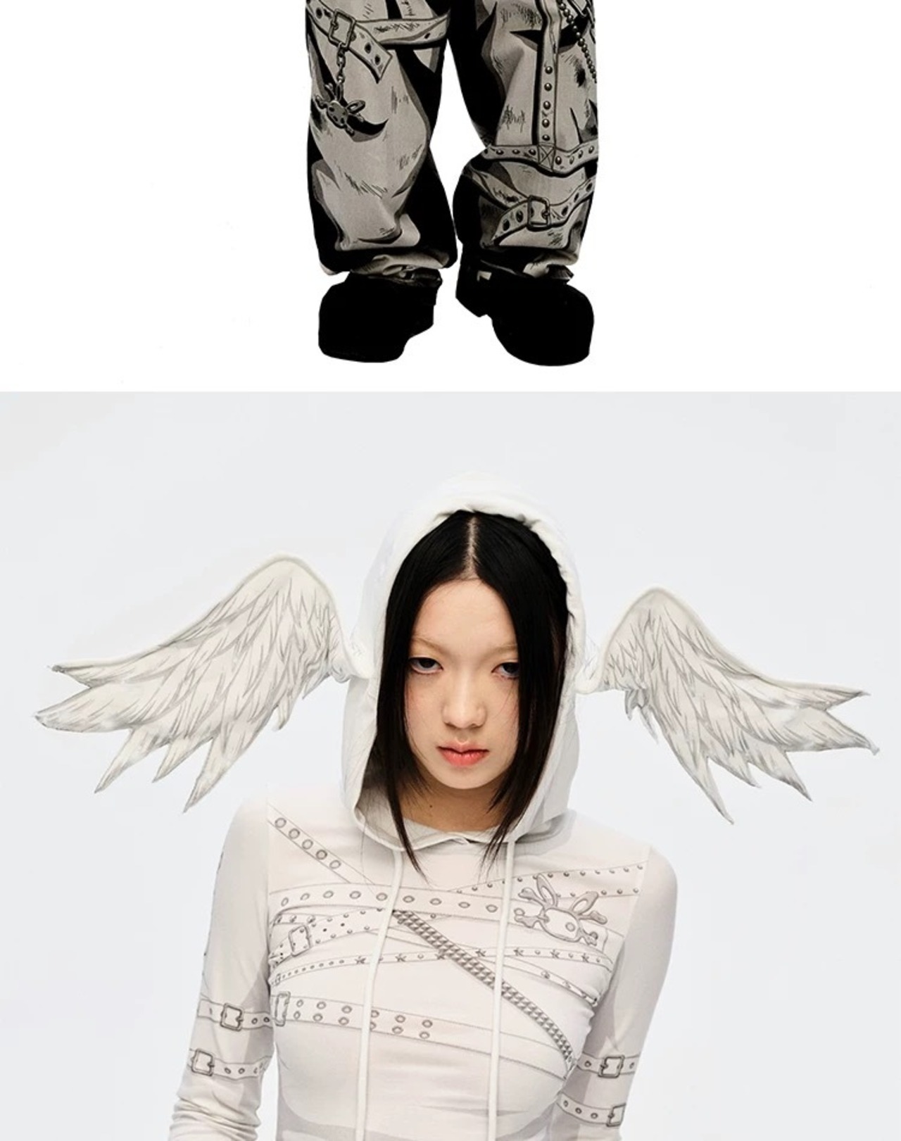 【トップス】【ユニセックス】白 絵 だまし絵 アニメ コスプレ パーカー