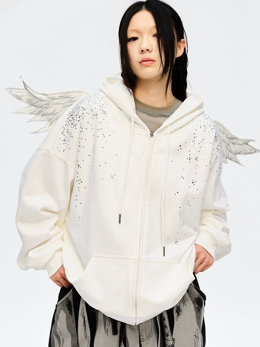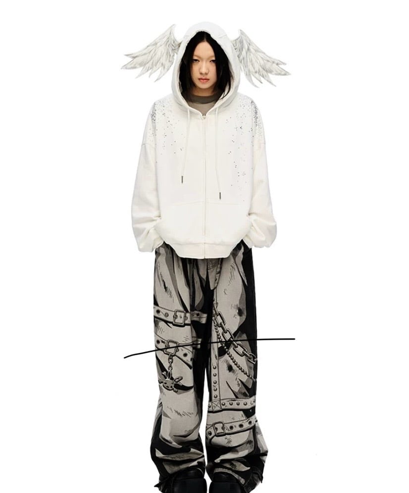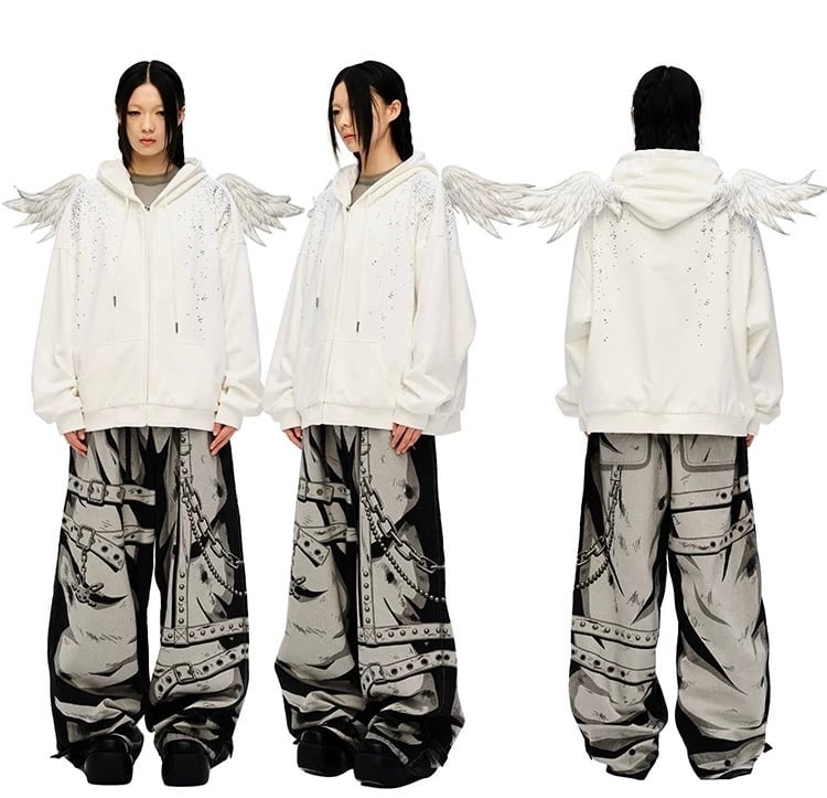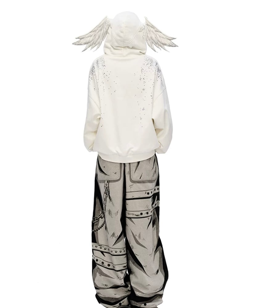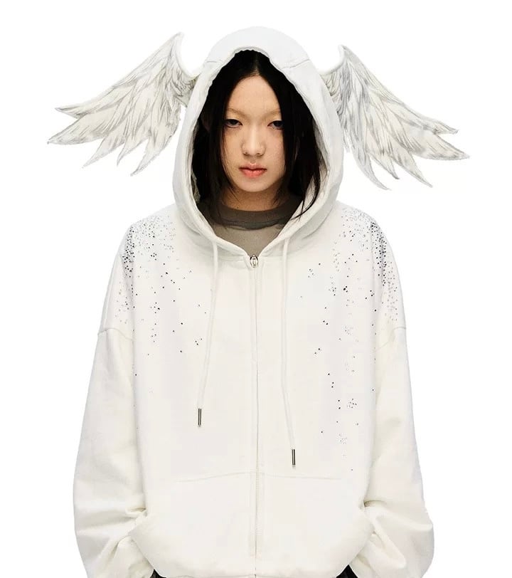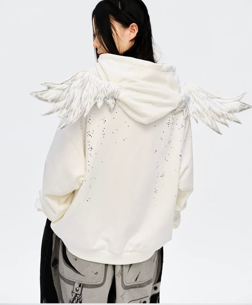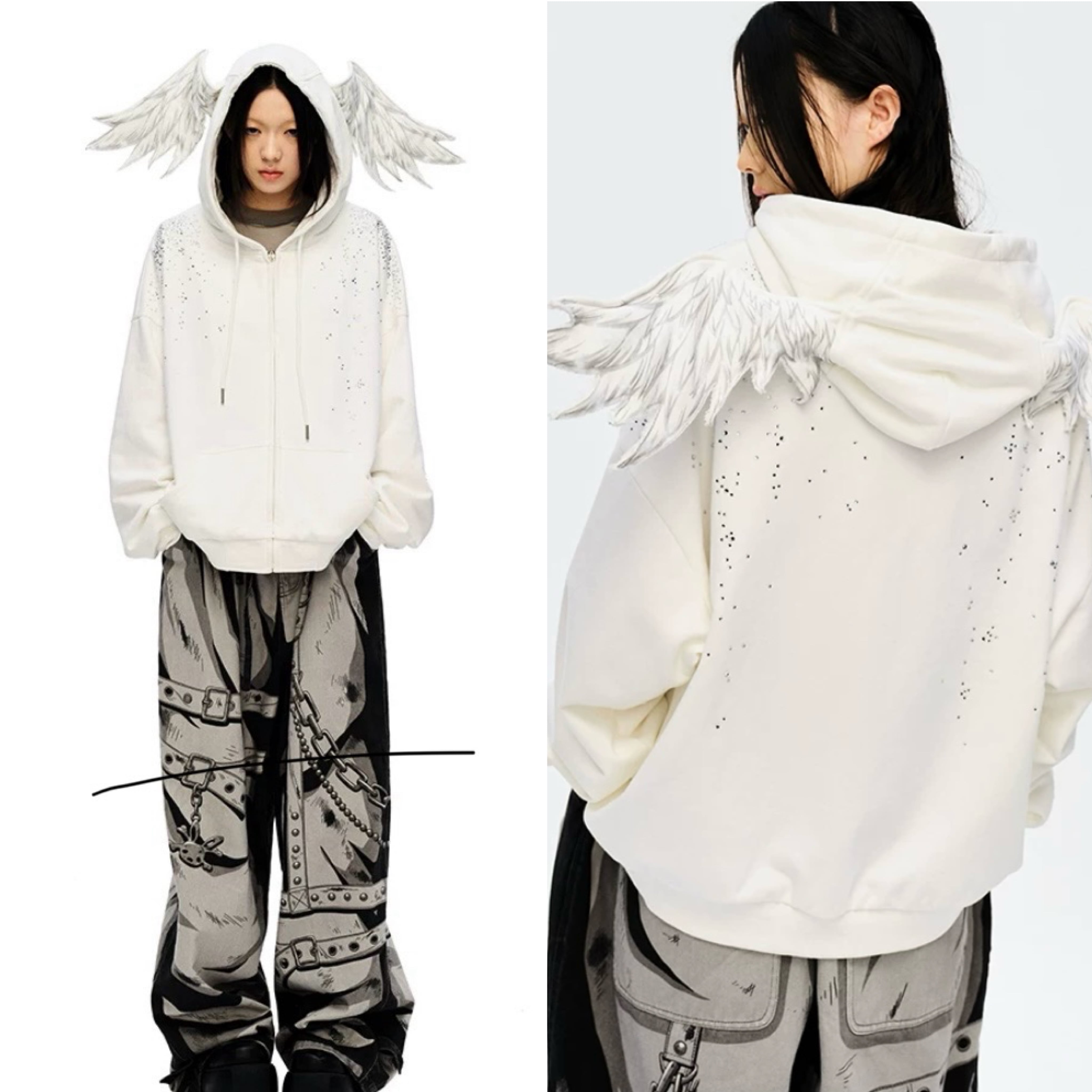 【ユニセックス】白 羽根 パーカー カジュアル トレーナー コスプレ メンズ 羽根
