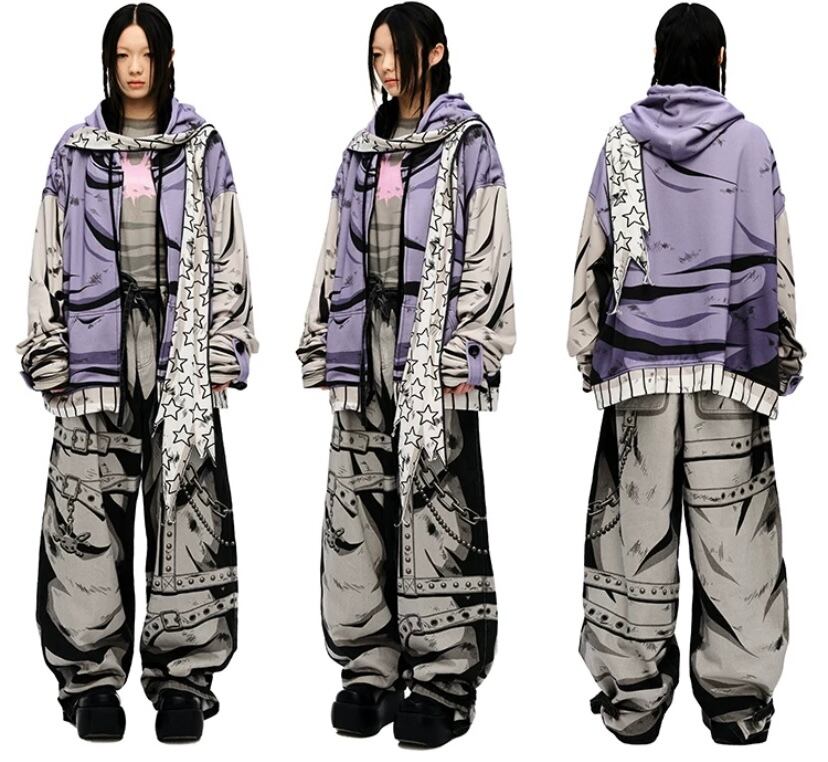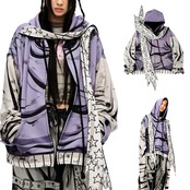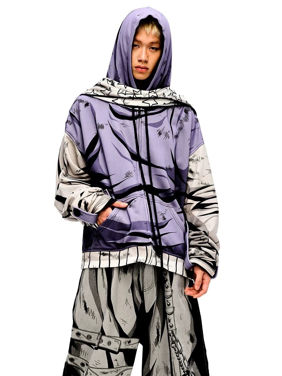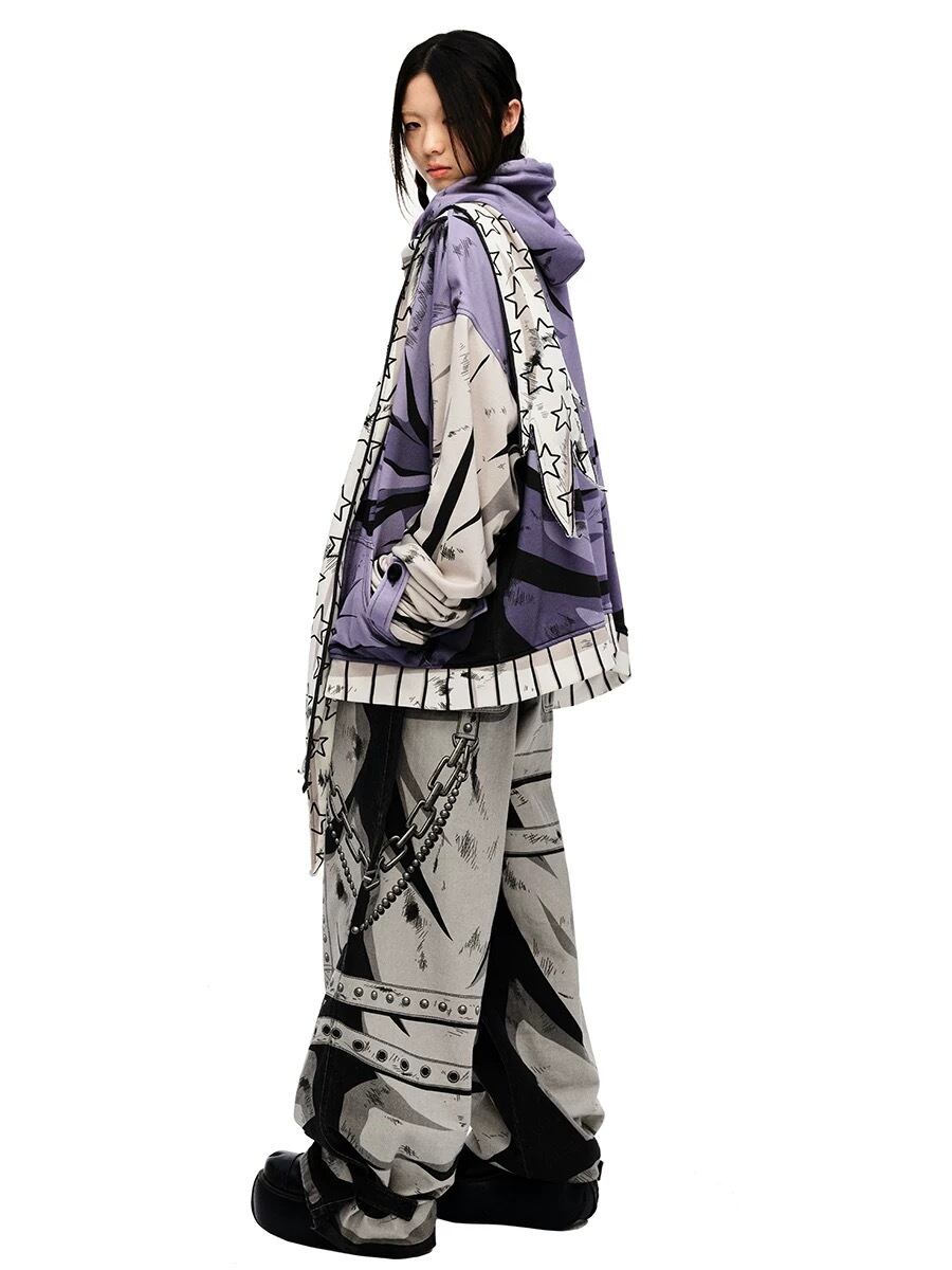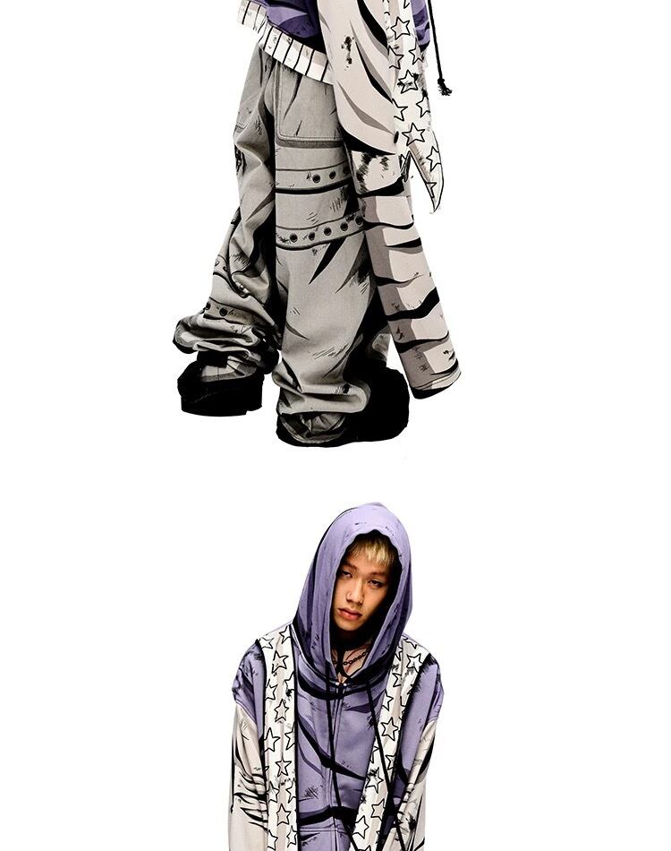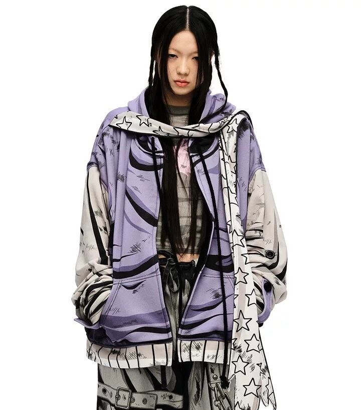 【マフラー付】(ユニセックス】パーカー 絵のような 紫 絵 アニメ スウェット 星柄