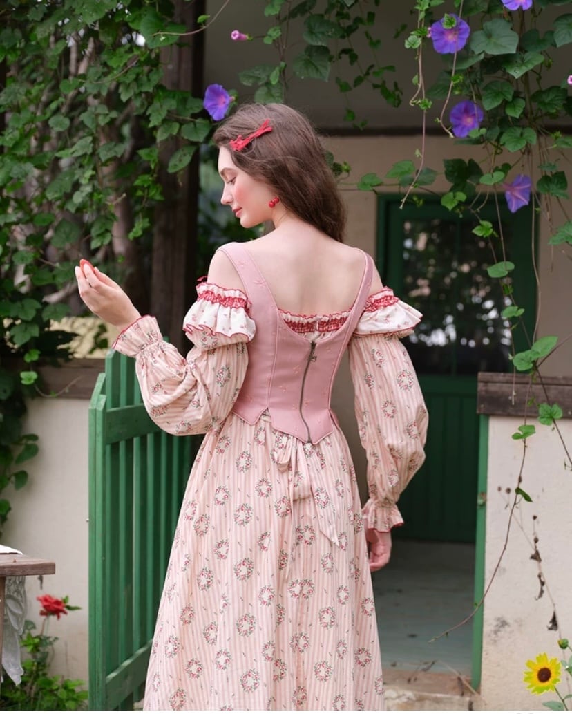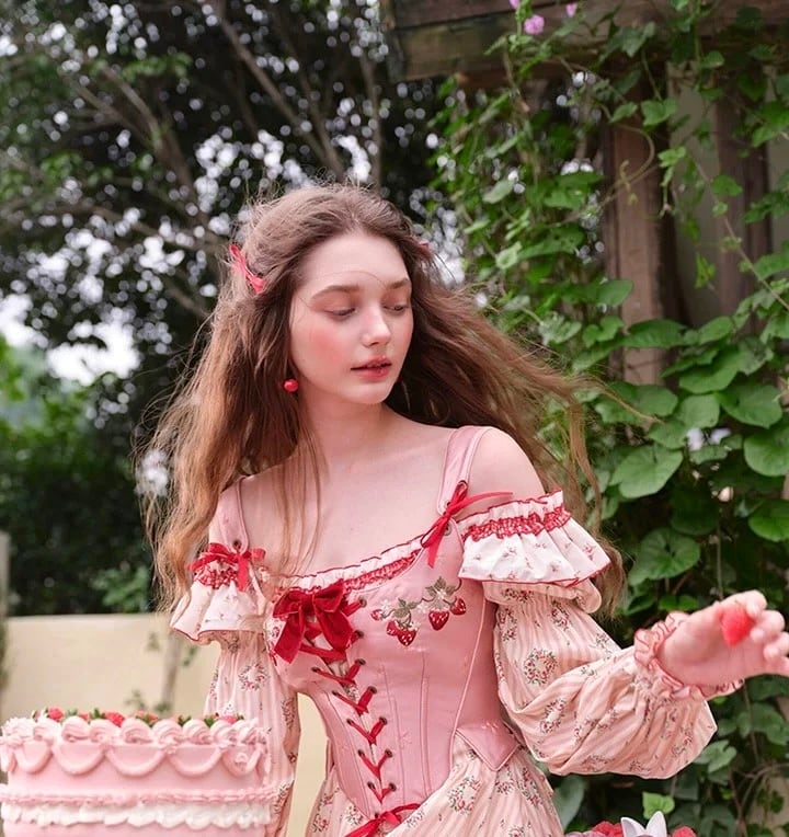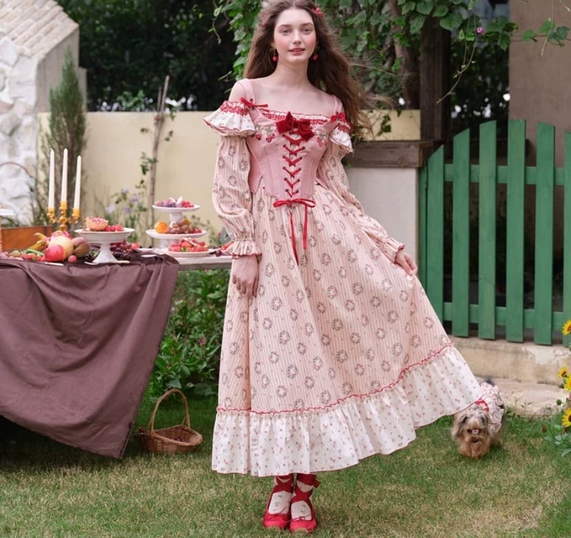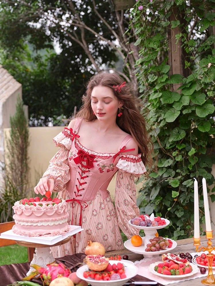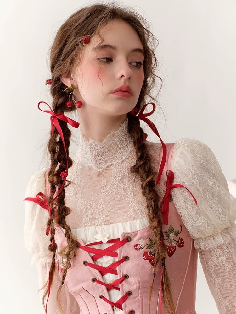 【コルセット】ピンク 編み上げ キャミソール 赤 リボン XL