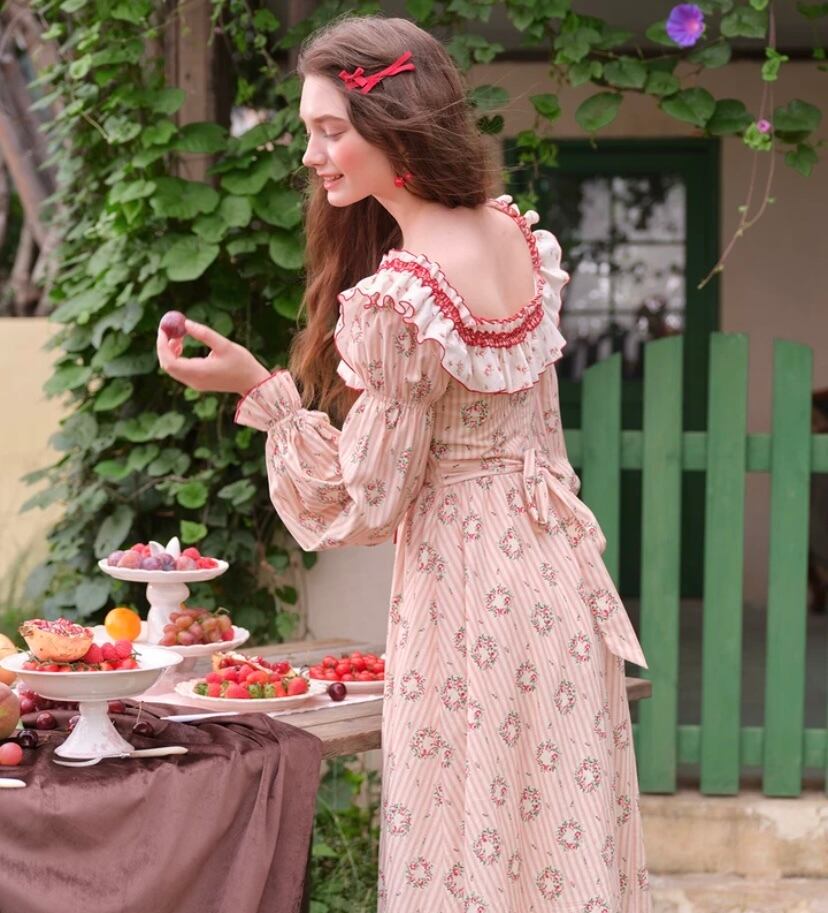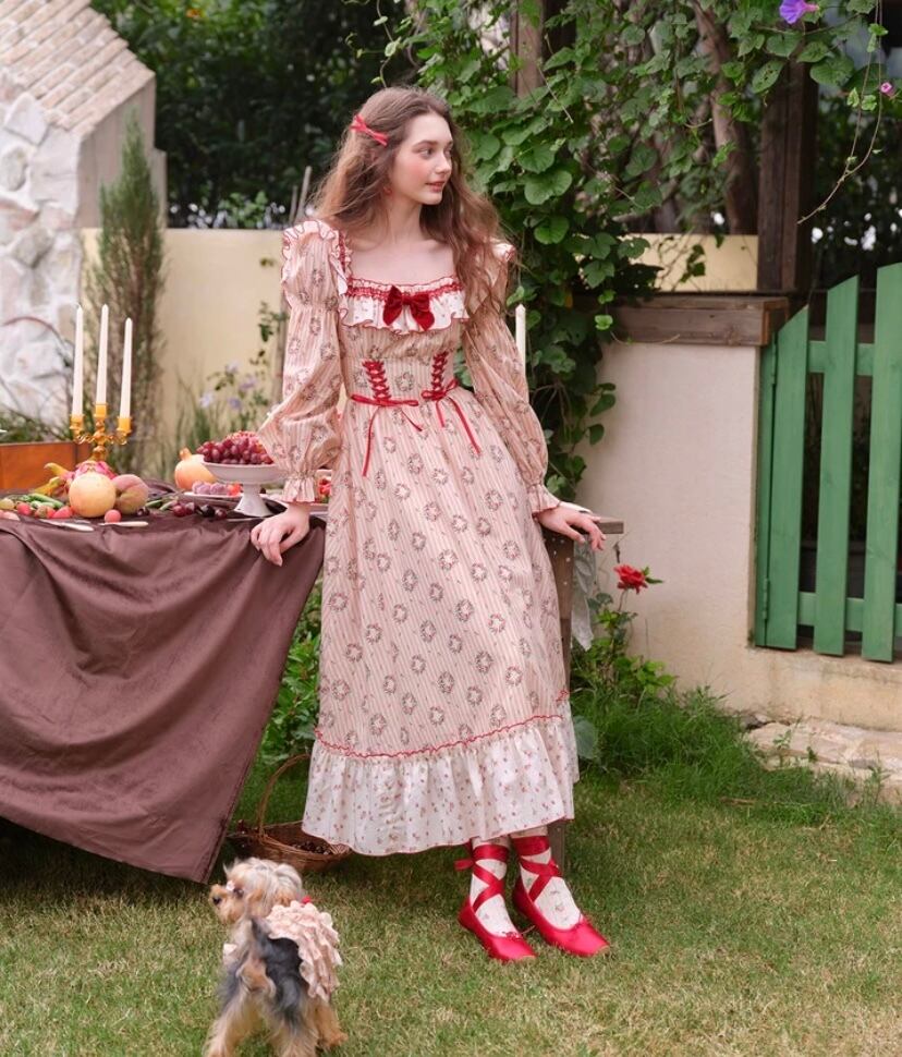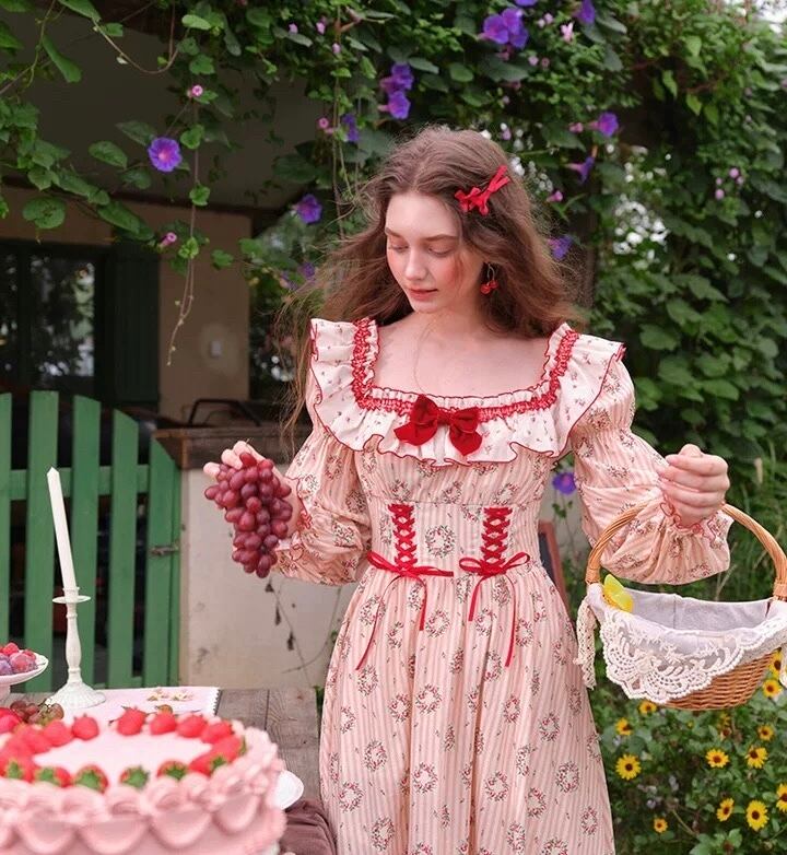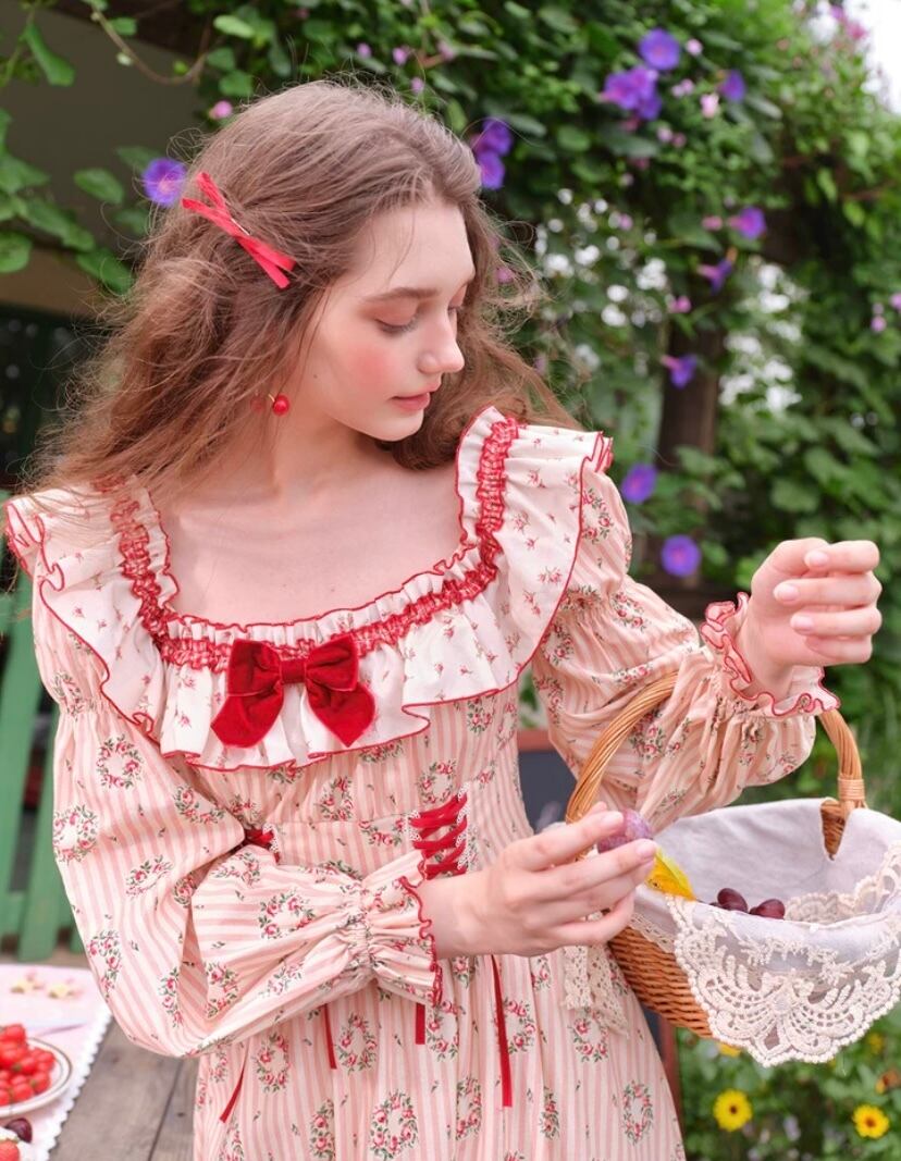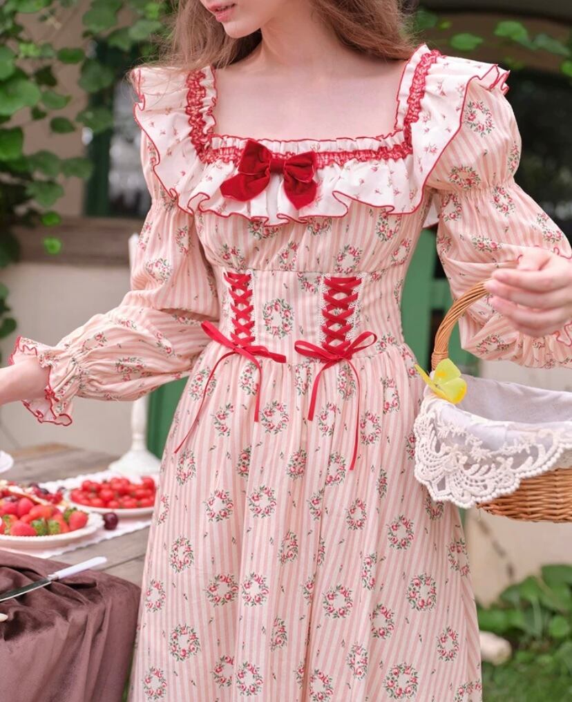 可愛い ガーリー 花柄 赤 ピンク 姫 ドレス ワンピース XL