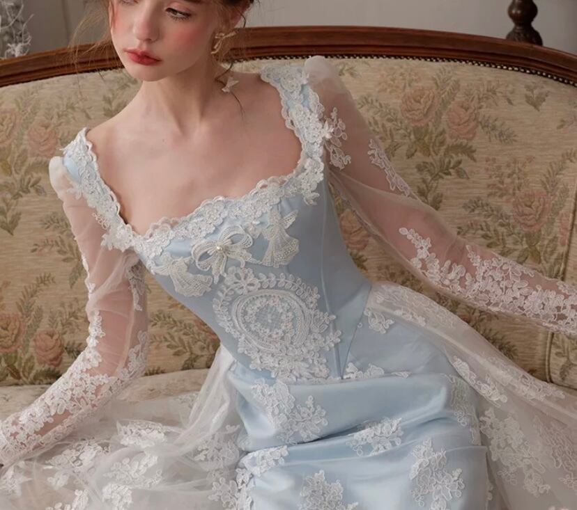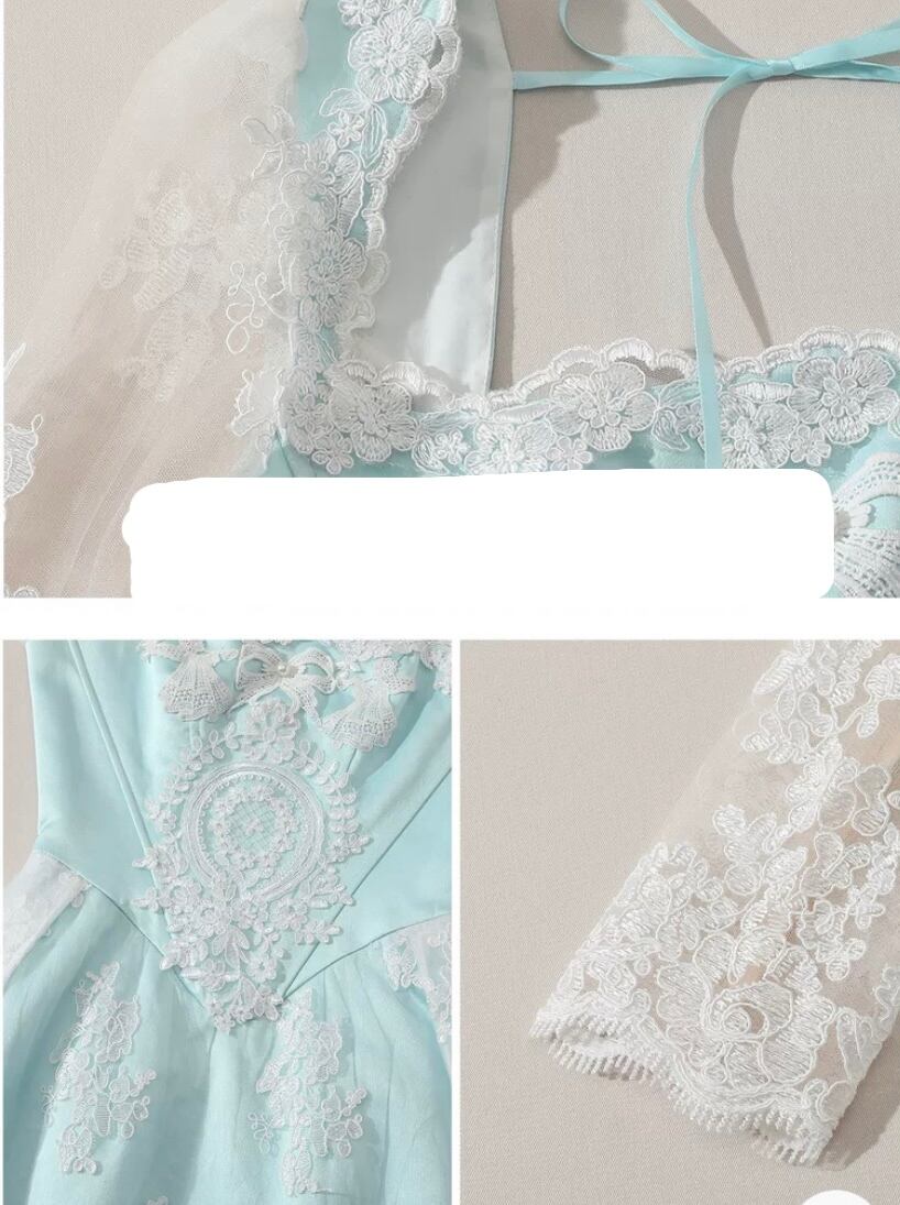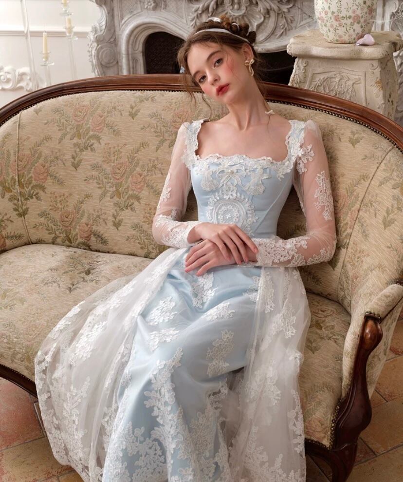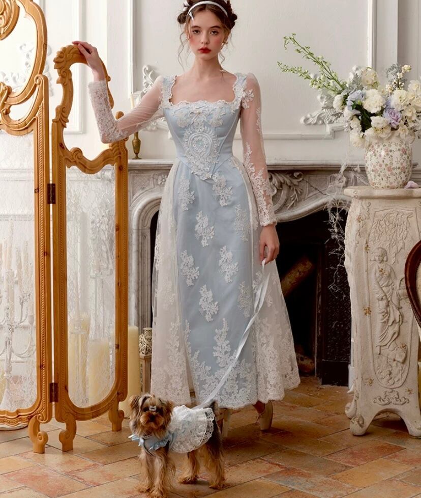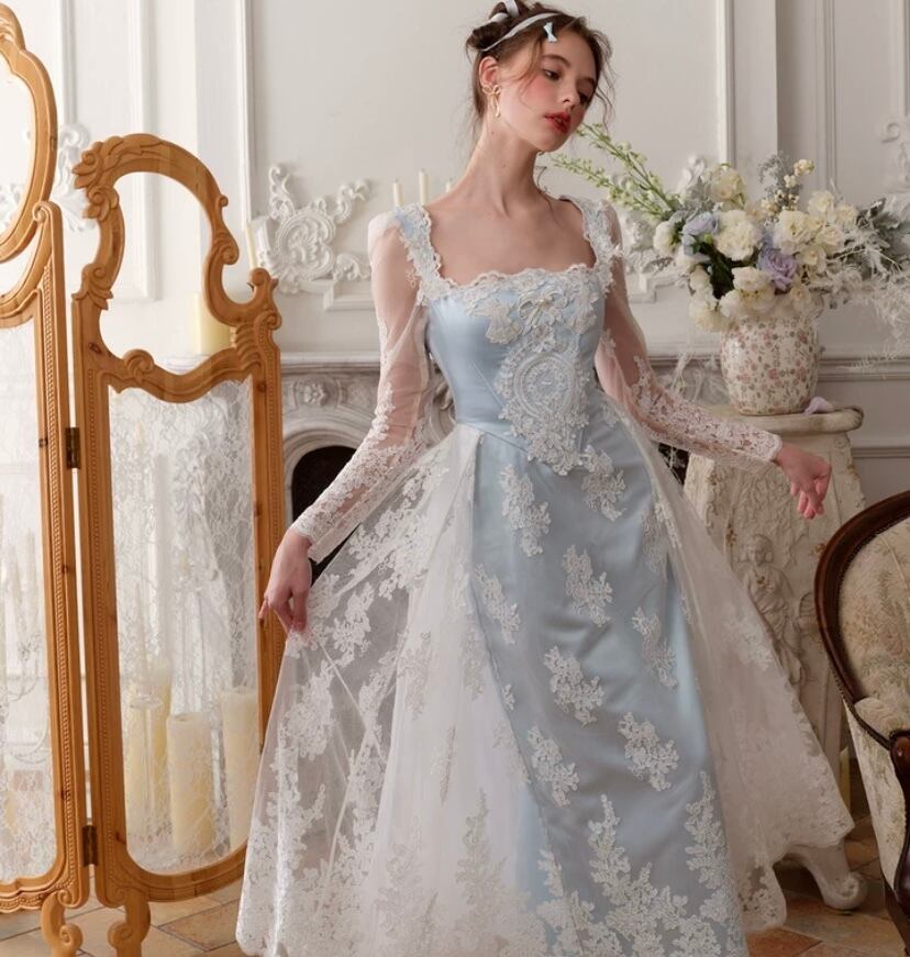 レース 水色 花柄 XL ドレス ワンピース ブラウス