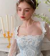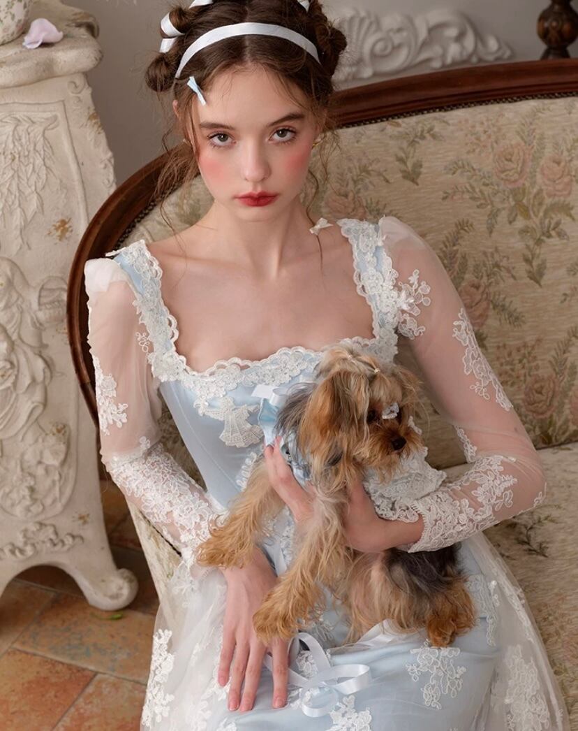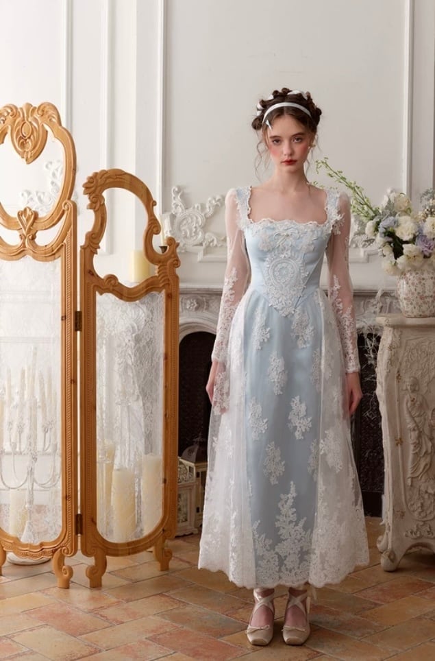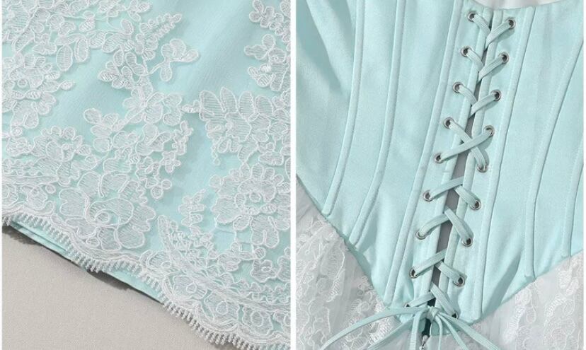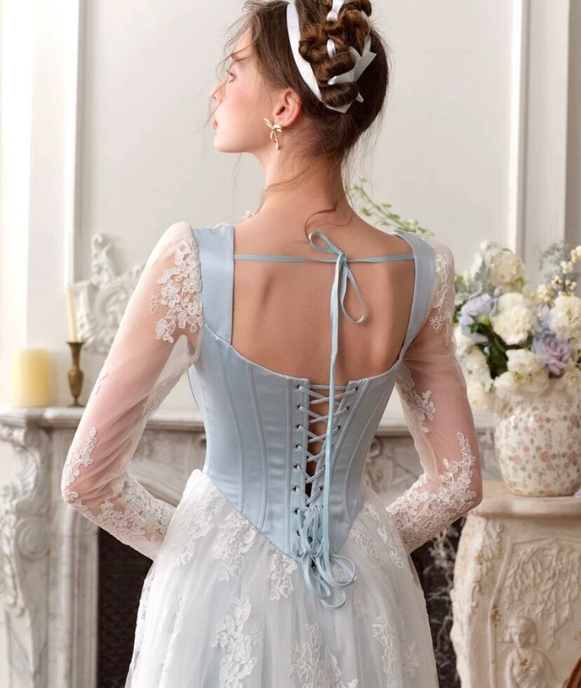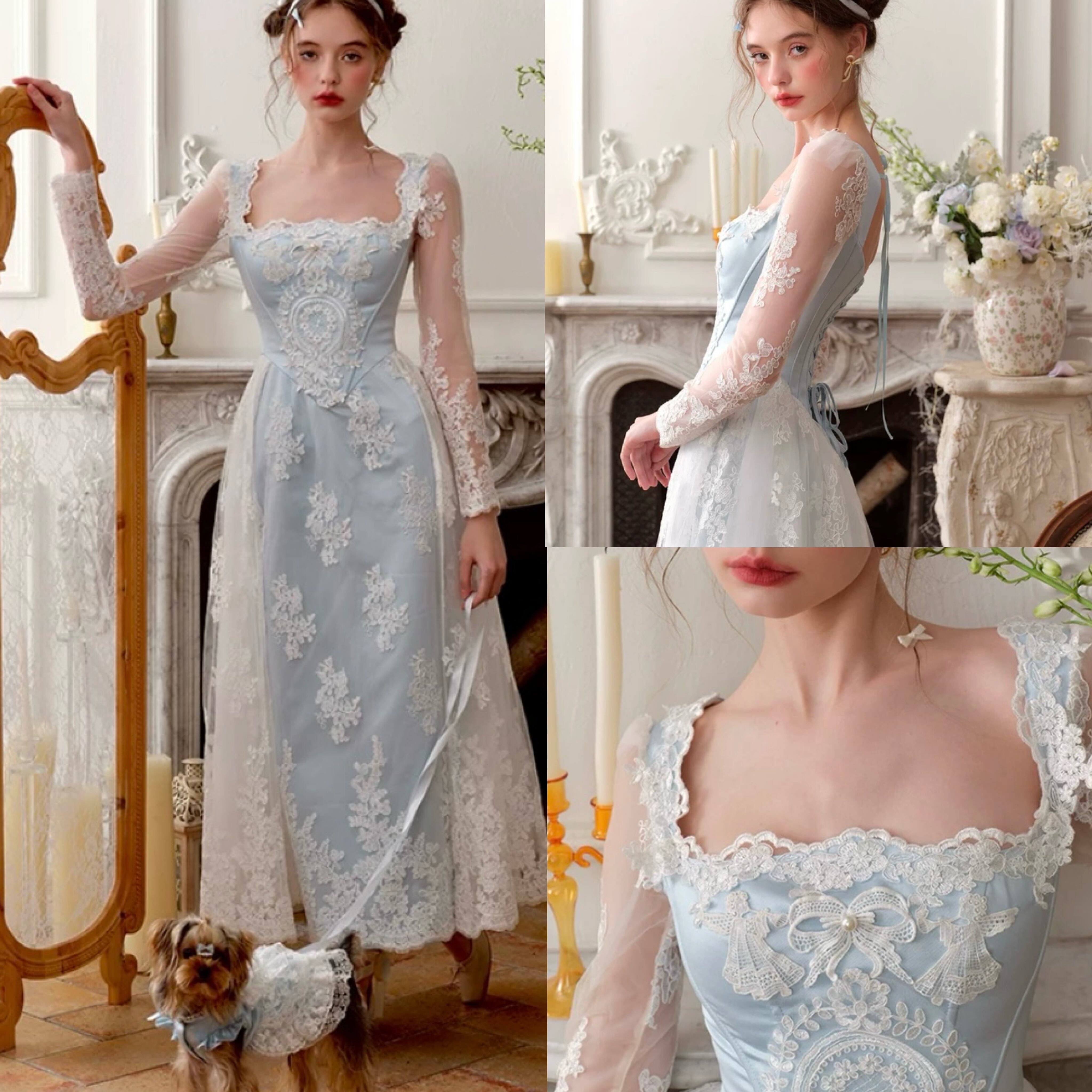 レース 水色 花柄 XL ドレス ワンピース ブラウス