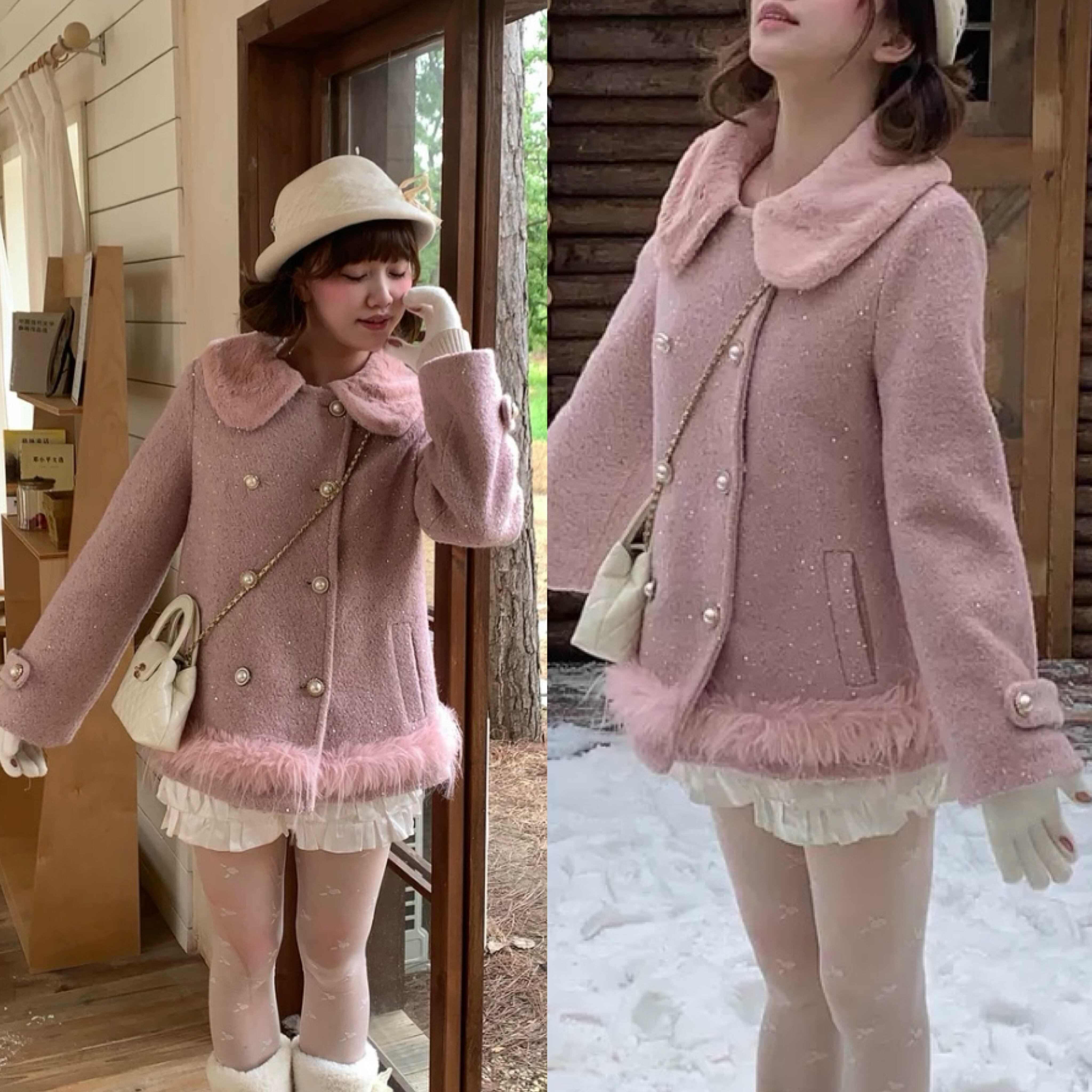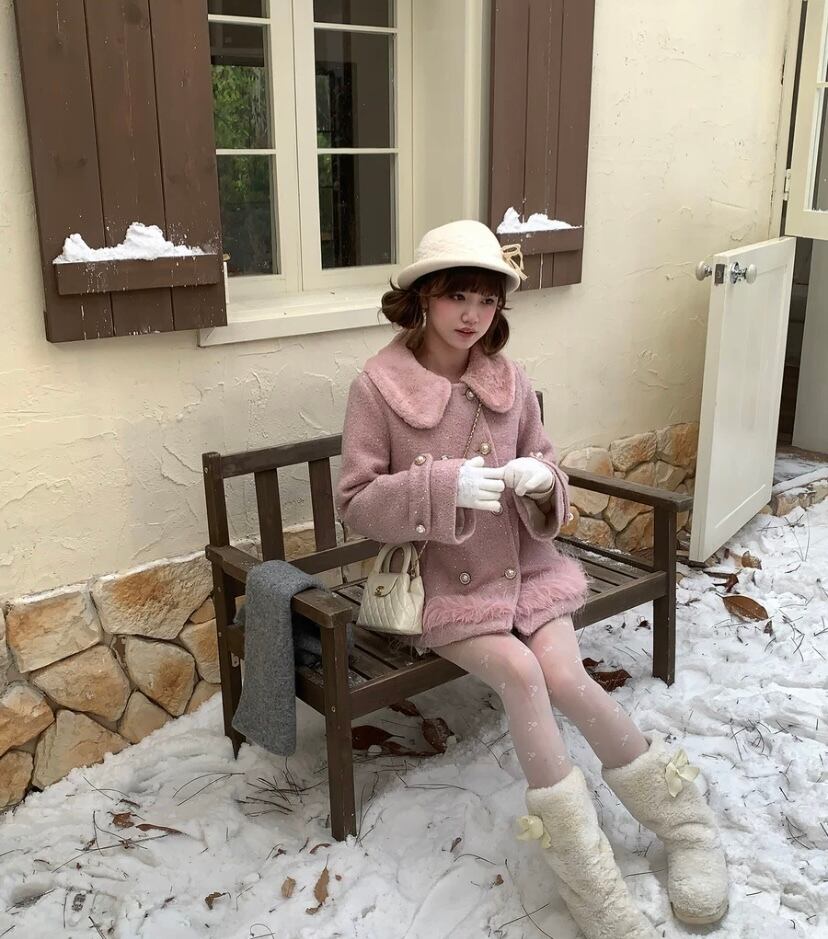 ピンク ジャケット コート 可愛い 丸襟