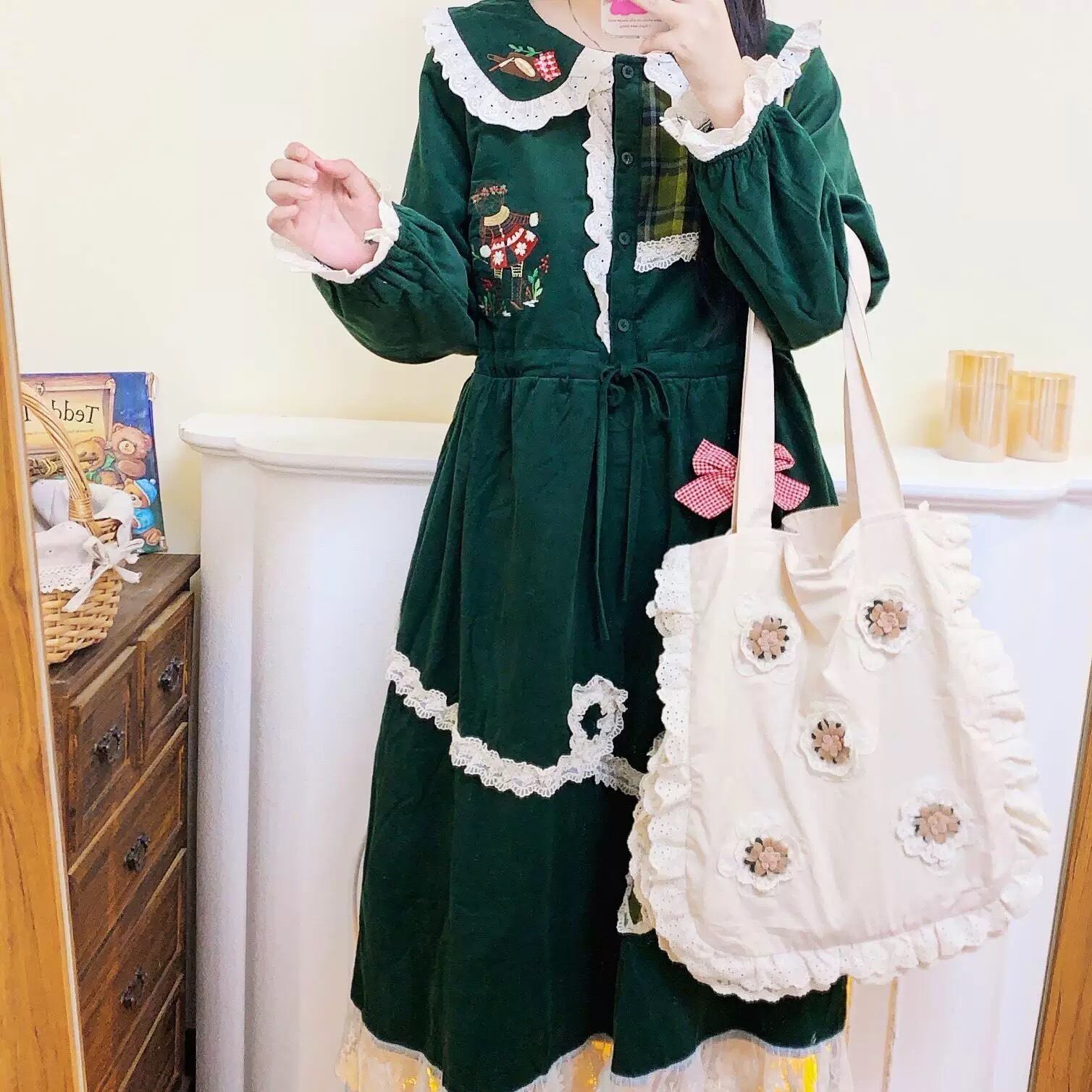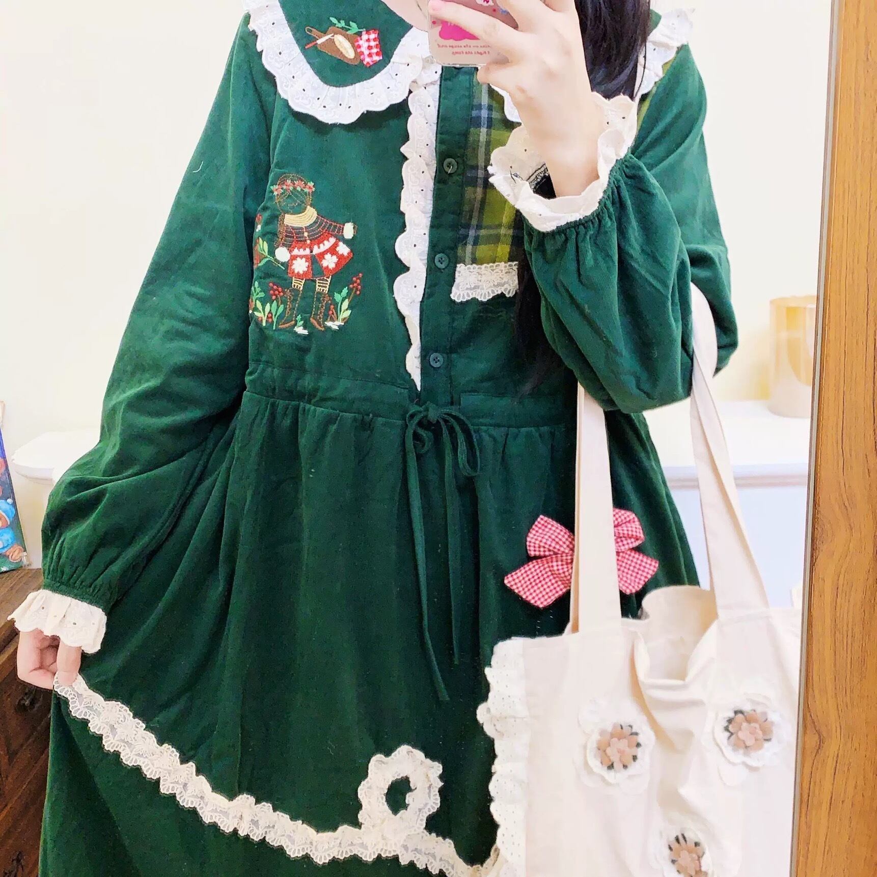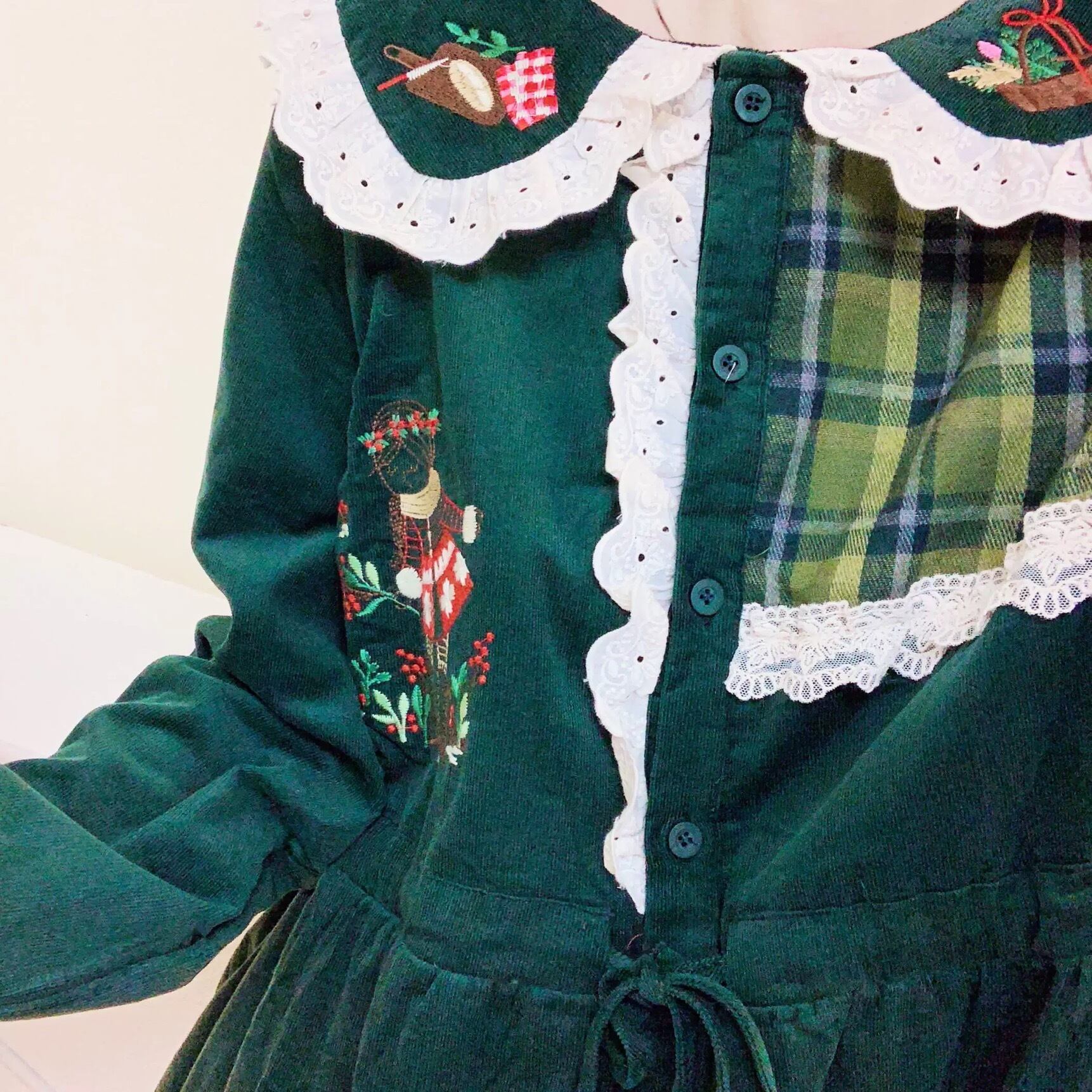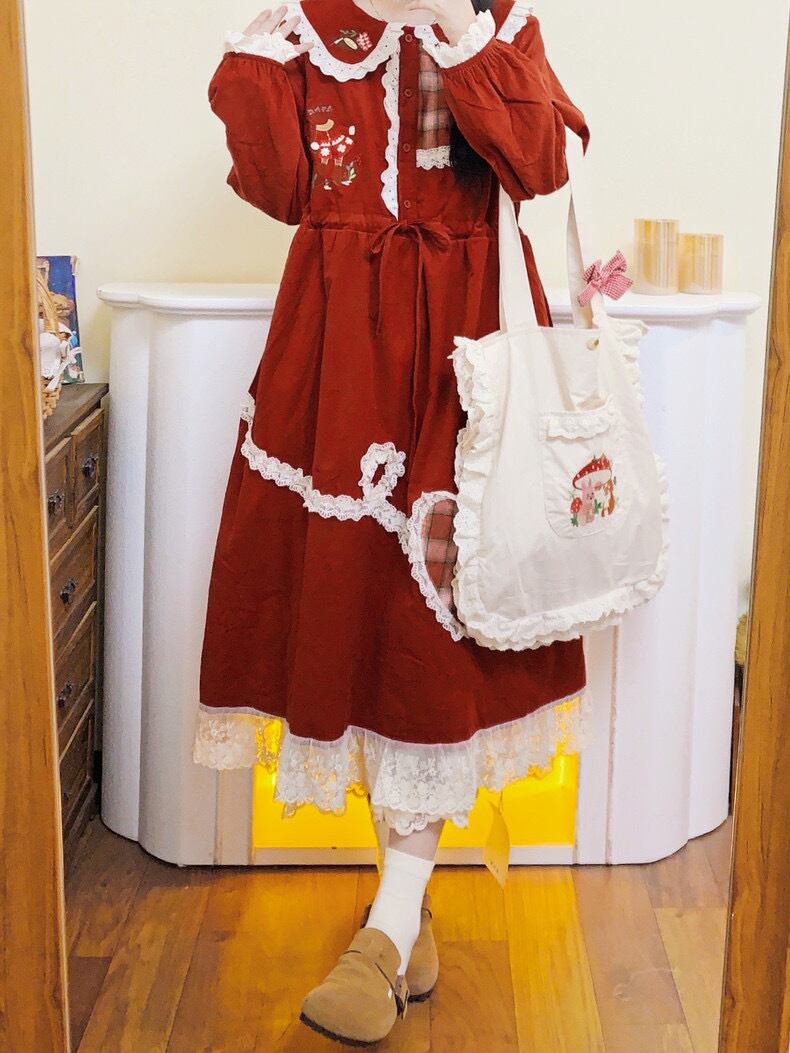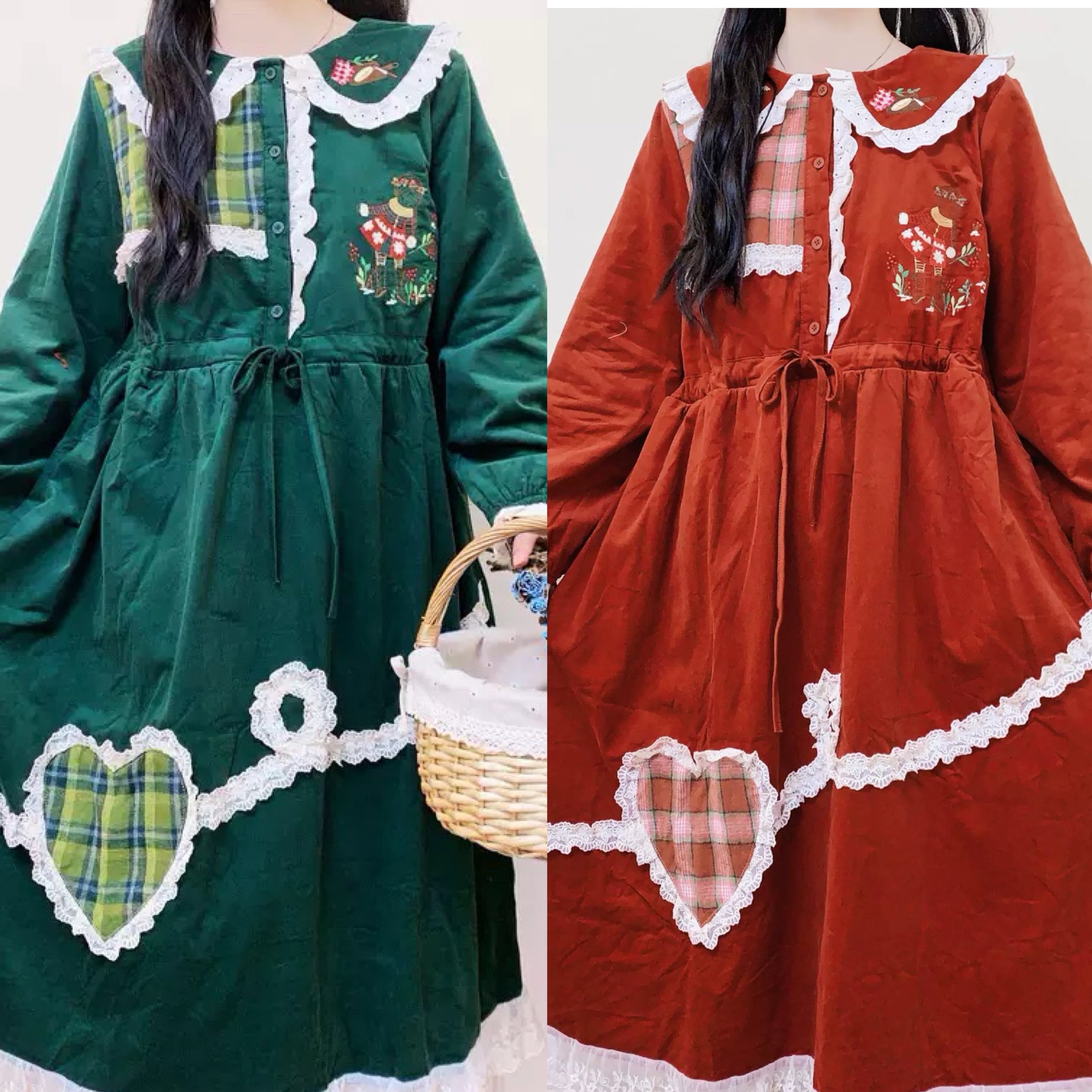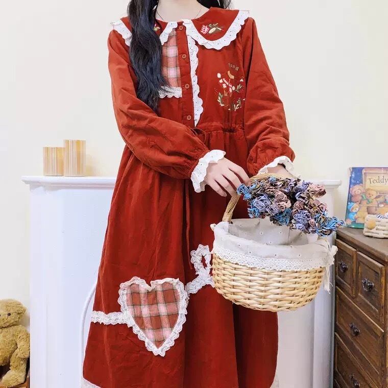 赤 オレンジ ハート 緑 丸襟 ワンピース