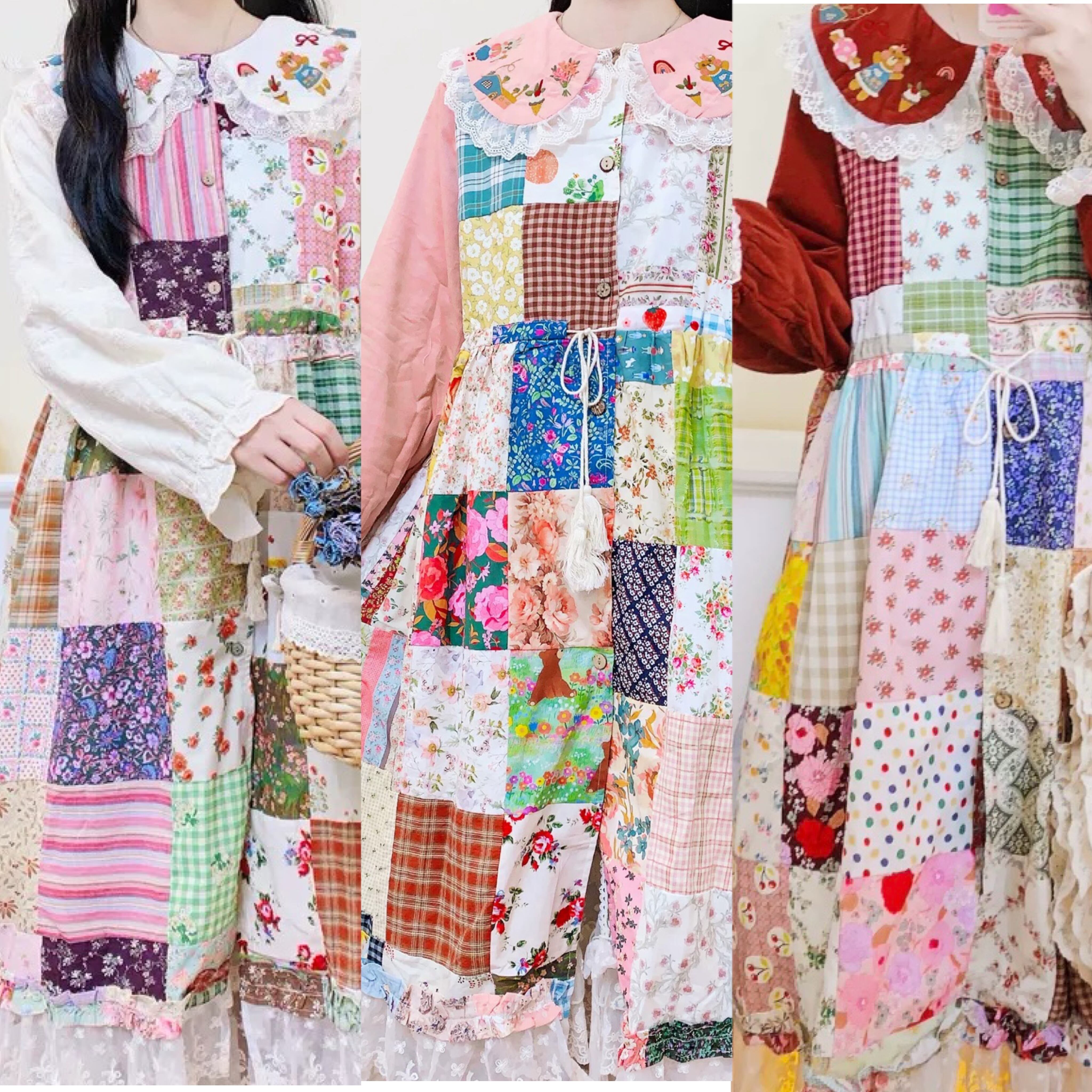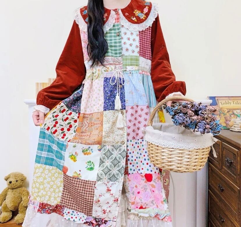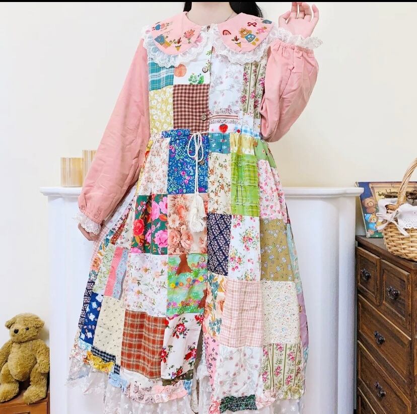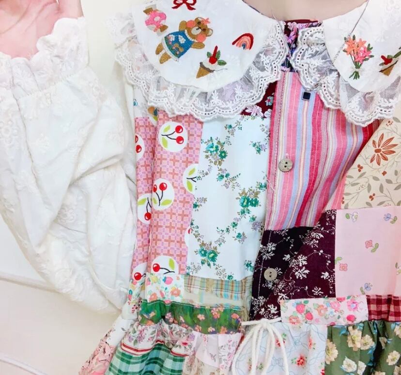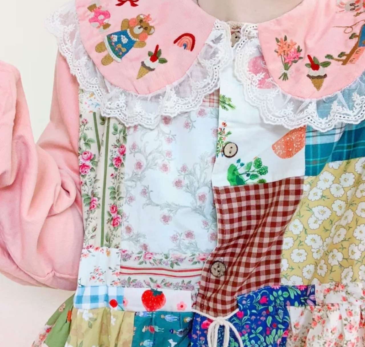 ピンク 丸襟 パッチワーク ガーリー 可愛い